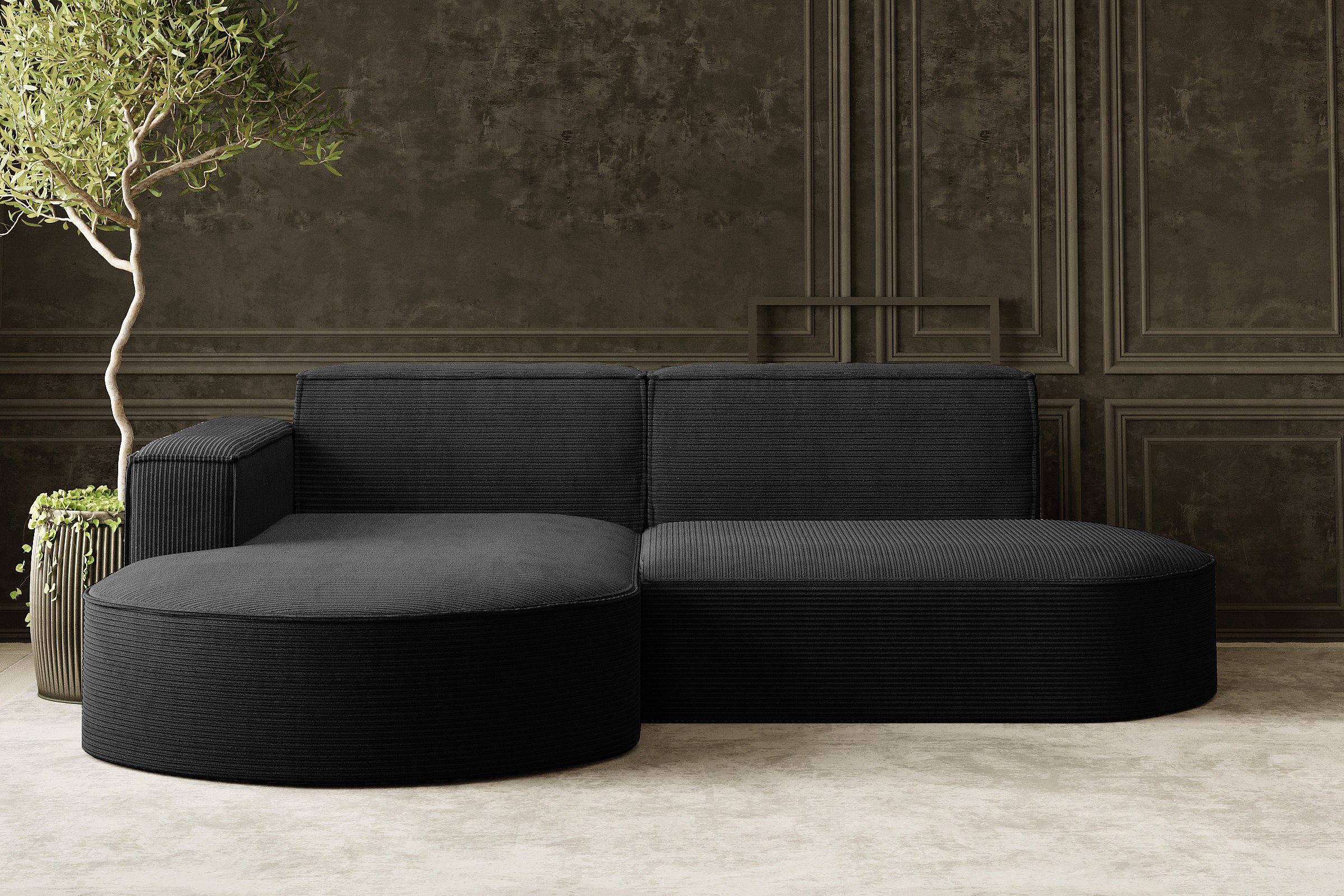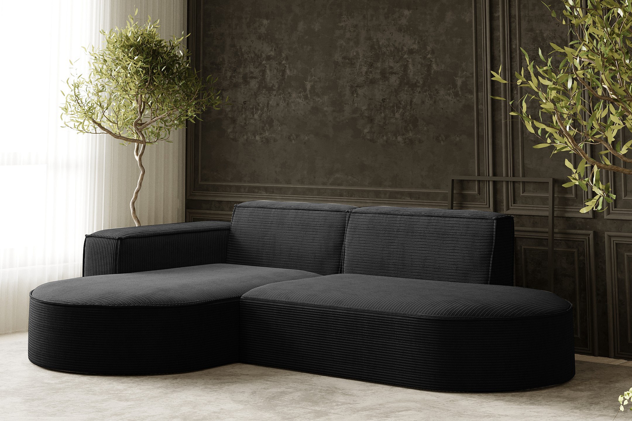 Canapé d'angle Designer MODENA STUDIO tissu Cordon épais Poso Noir Gauche