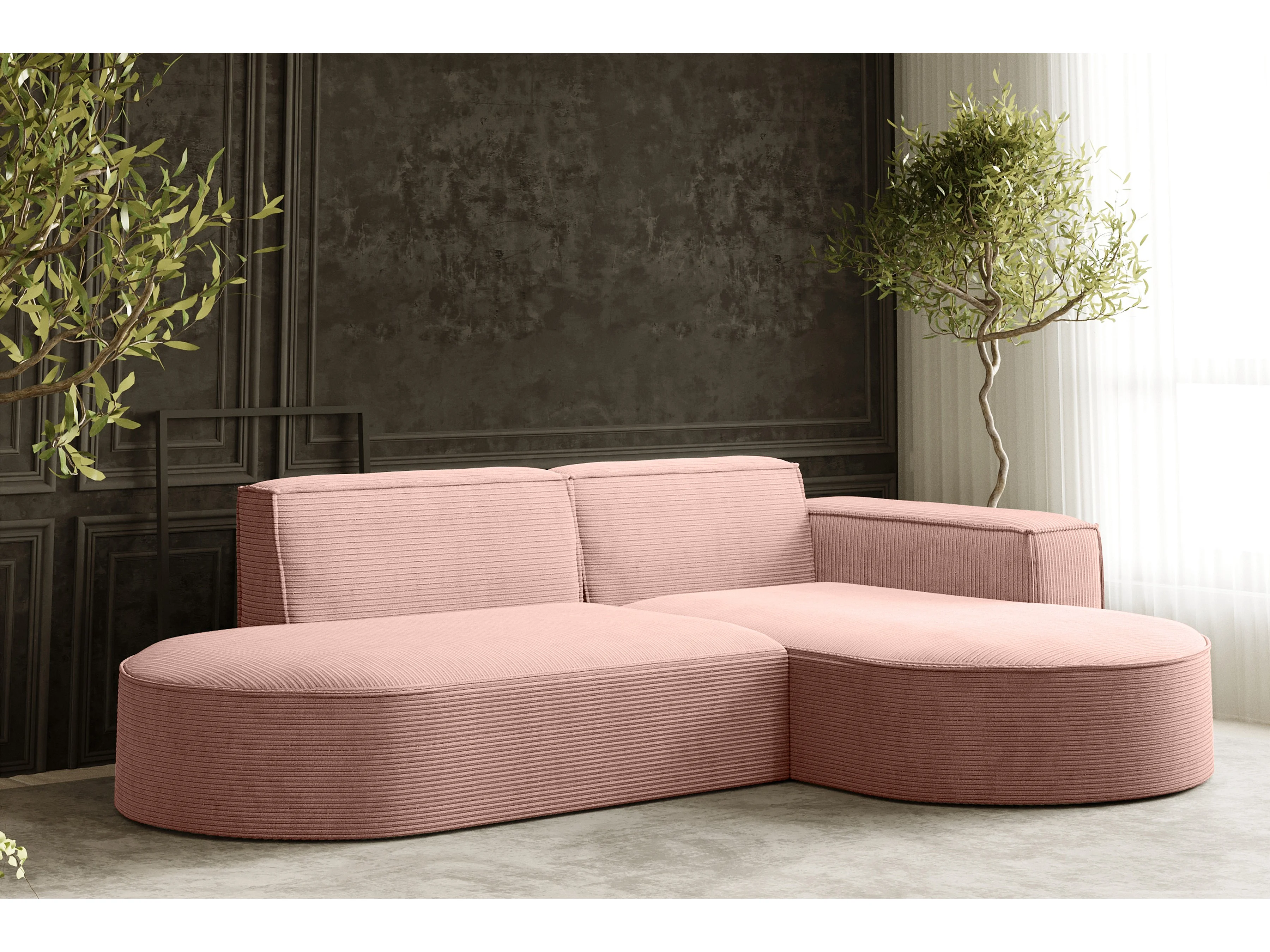 Canapé d'angle Designer MODENA STUDIO tissu Cordon épais Poso Rosa Droit