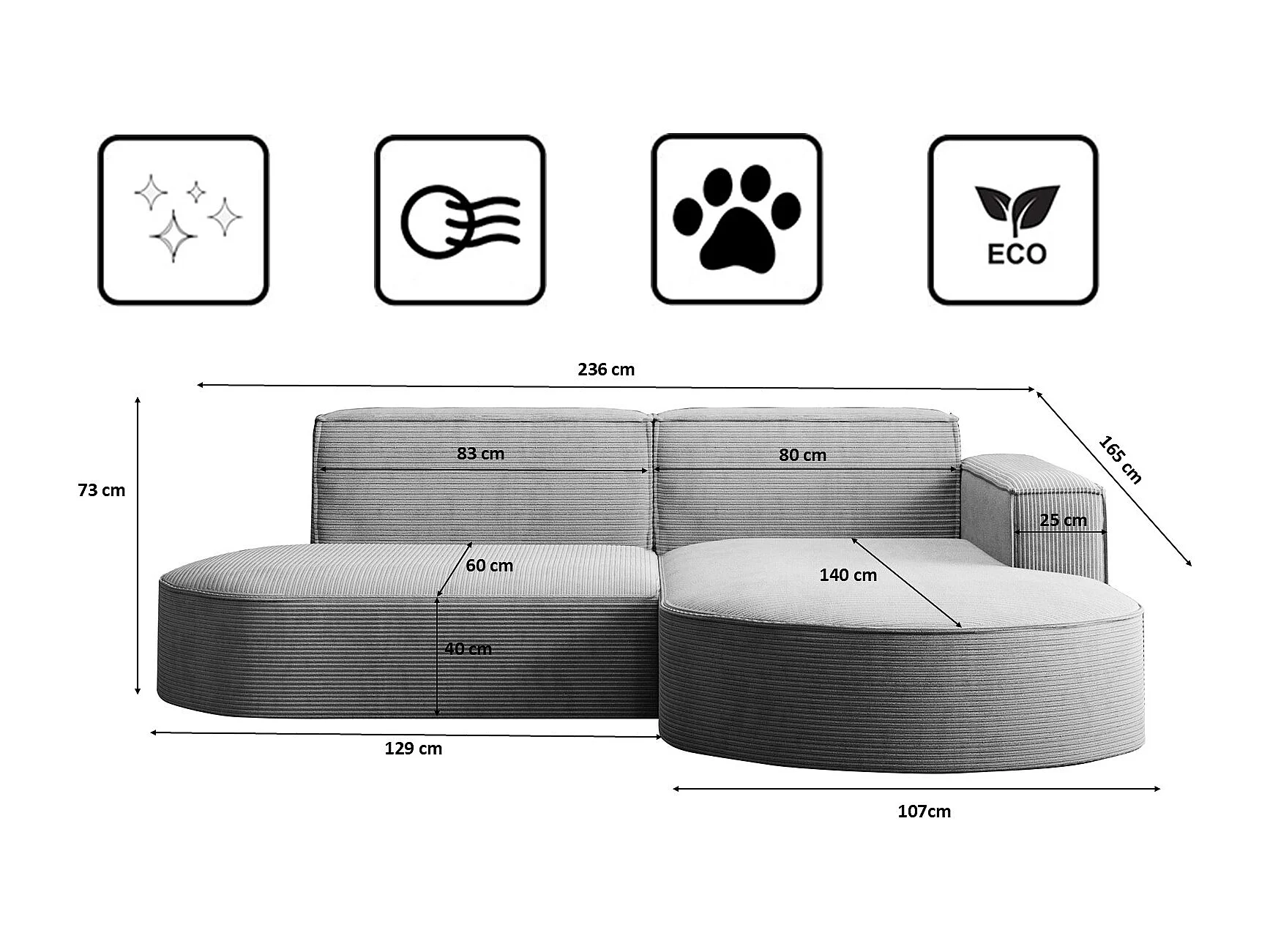 Canapé d'angle Designer MODENA STUDIO tissu Cordon épais Poso Silver Droit