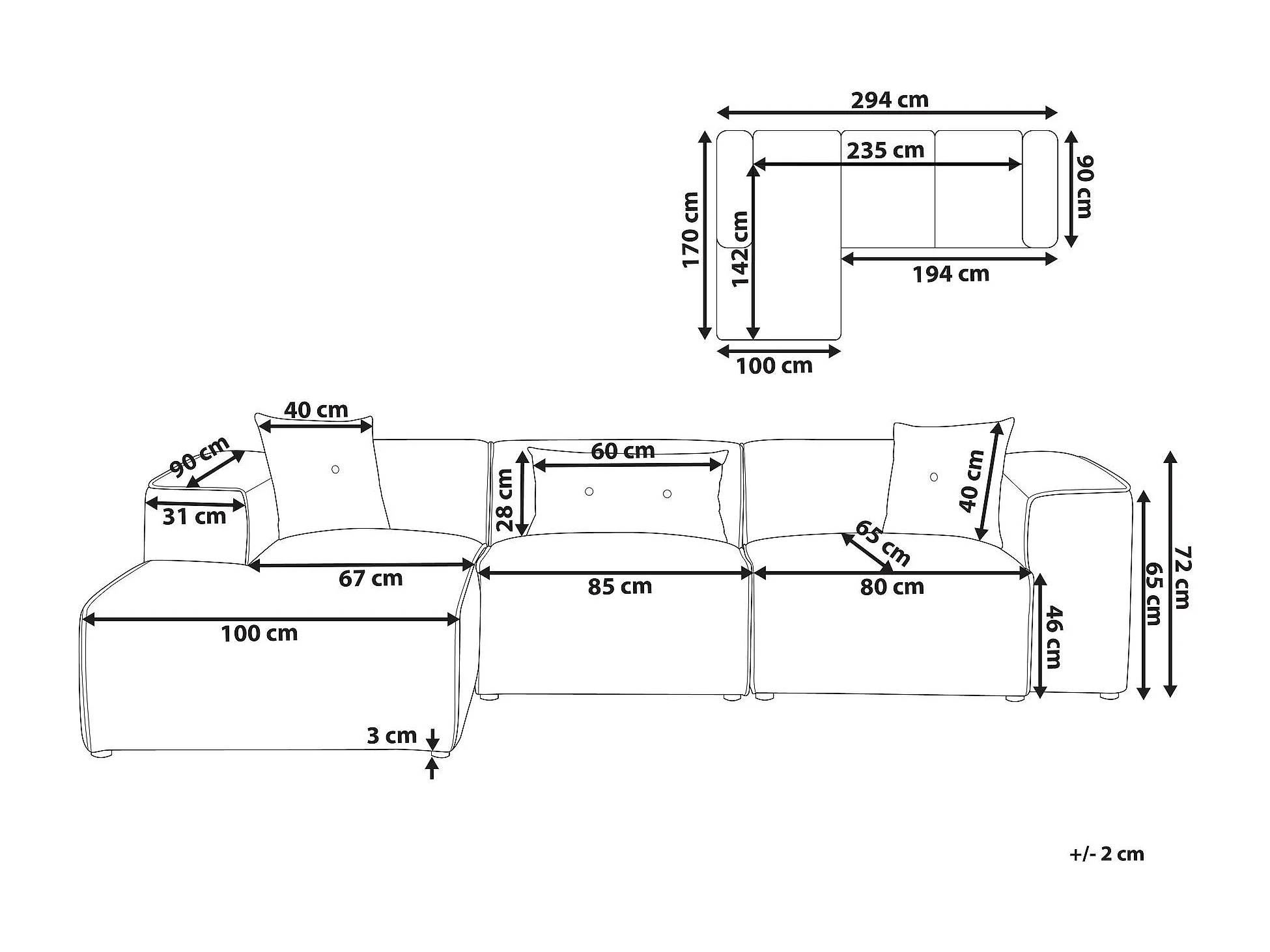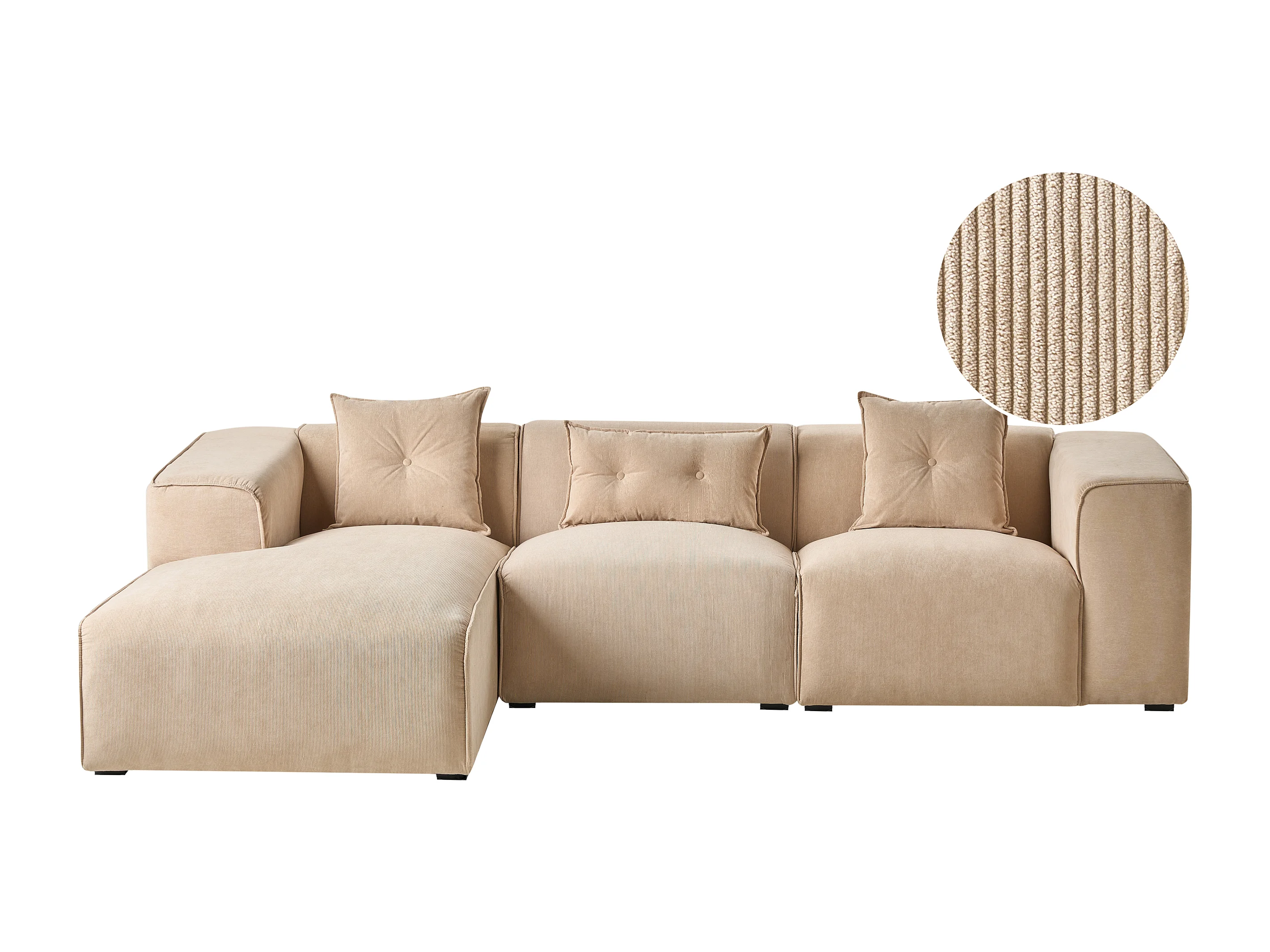Canapé d'angle 3 places DOLVA Velours côtelé Beige Côté droit