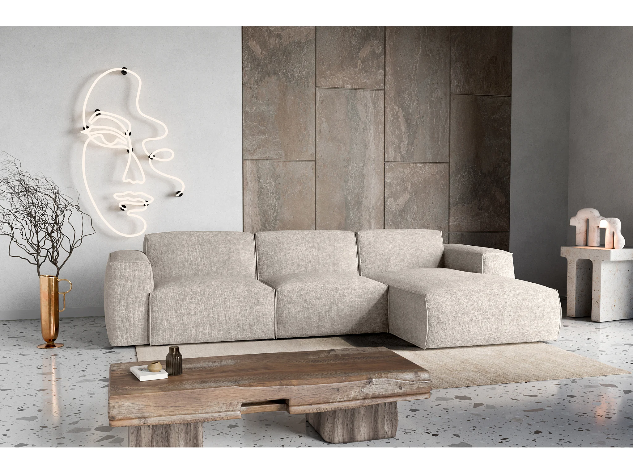Canapé d'Angle droit avec fonction de couchage Hudson coffre en beige du fabricant -VINOTTI