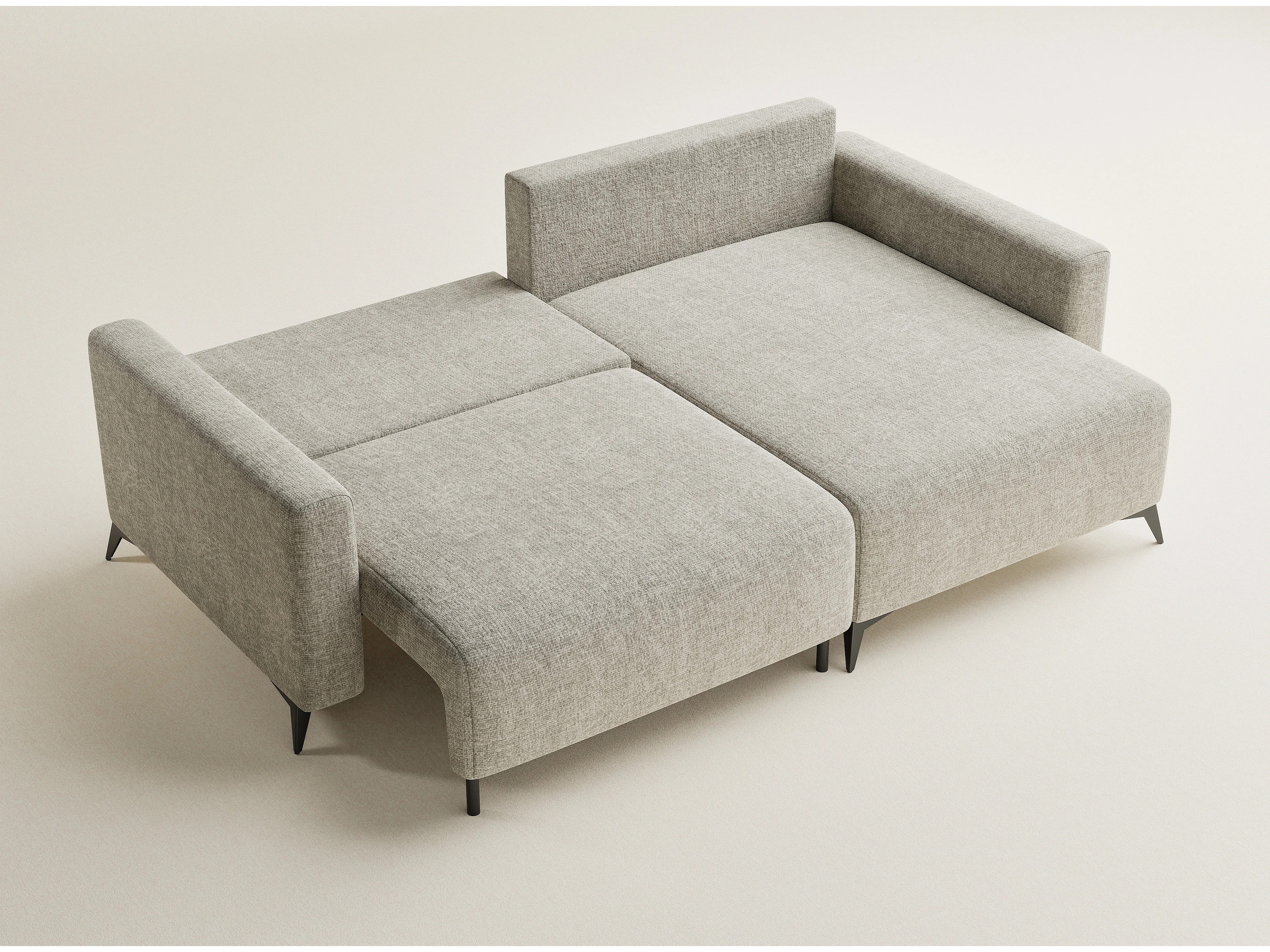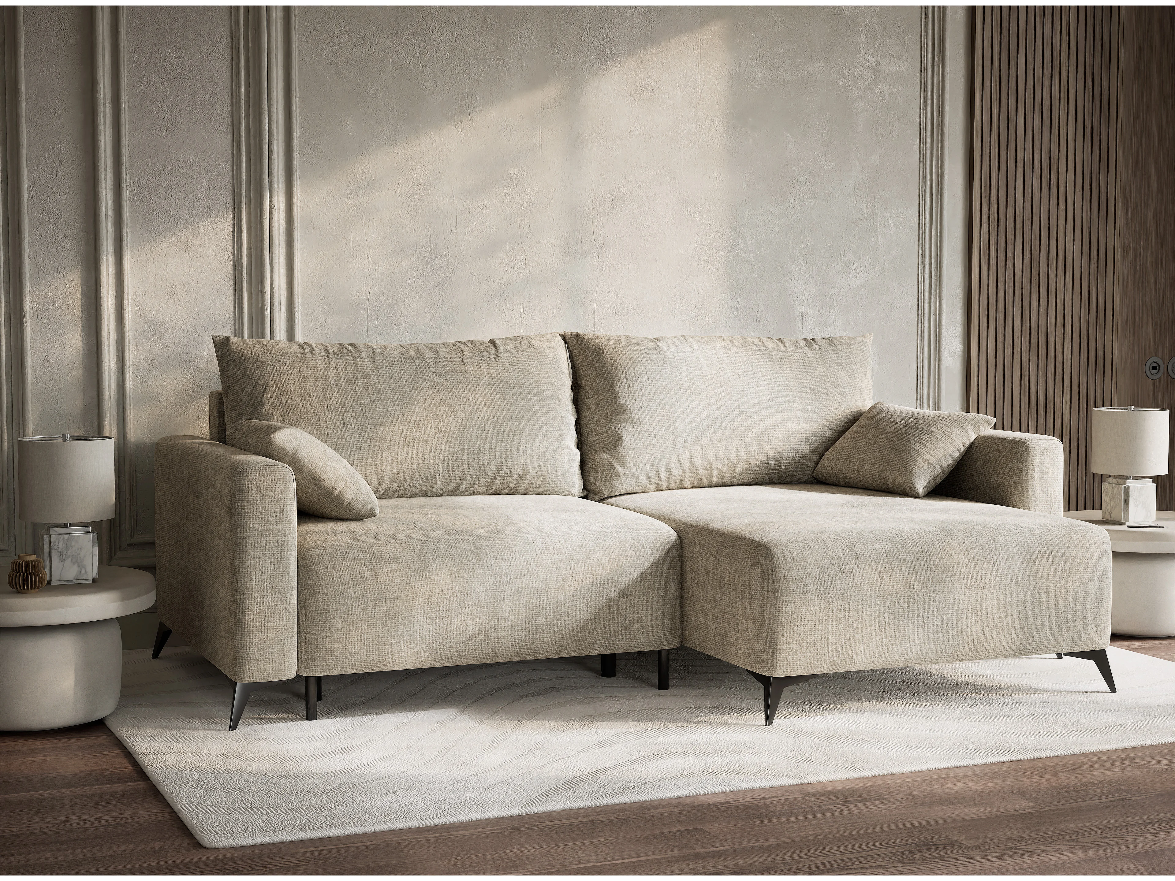 Canapé d'angle droit avec fonction lit en tissu chenille beige LEON