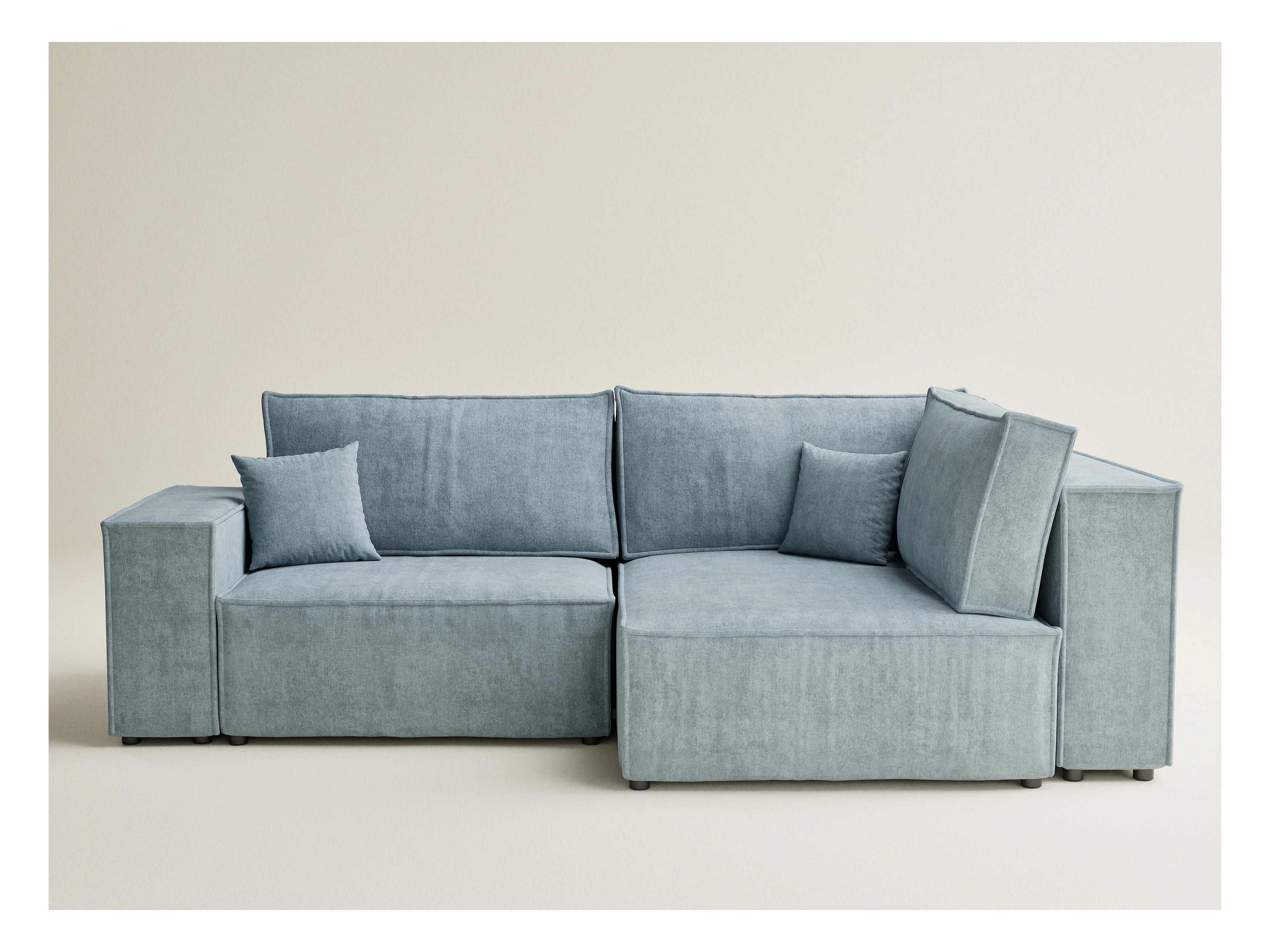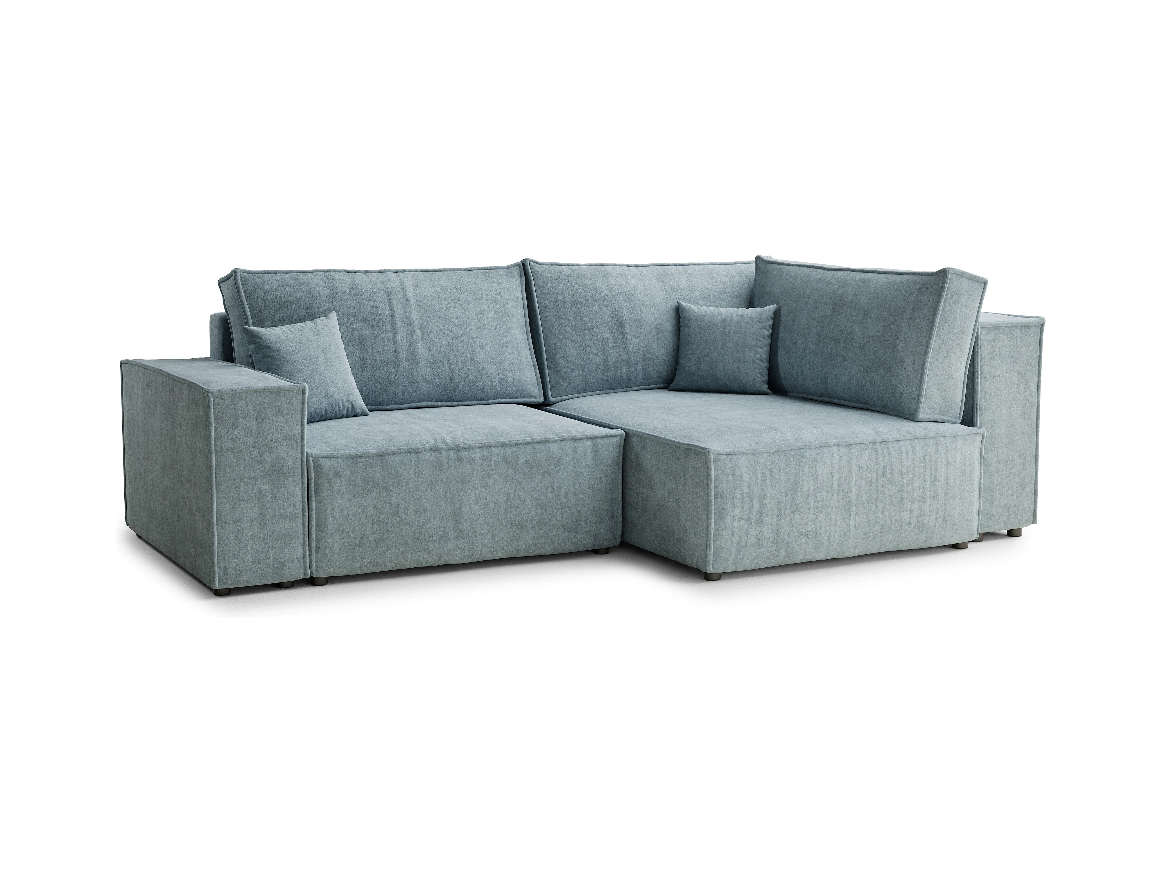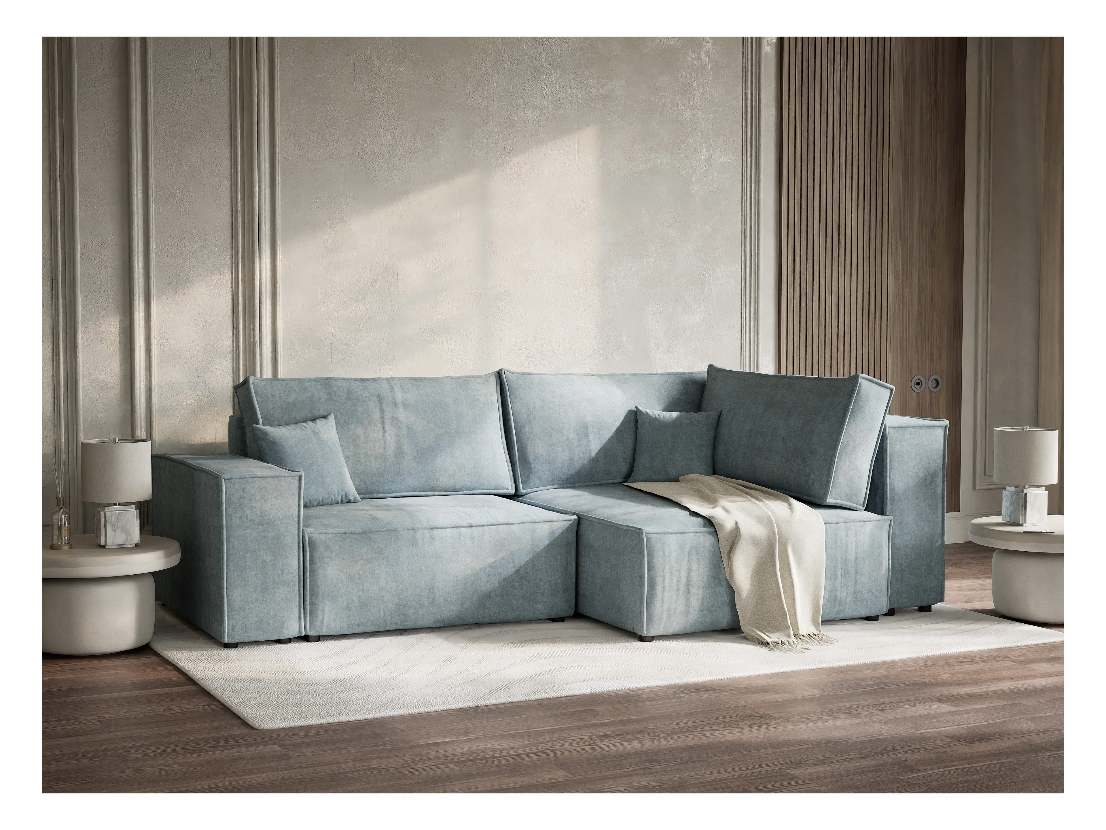 Canapé d'angle droit avec fonction lit en tissu chenille bleu clair TONGA