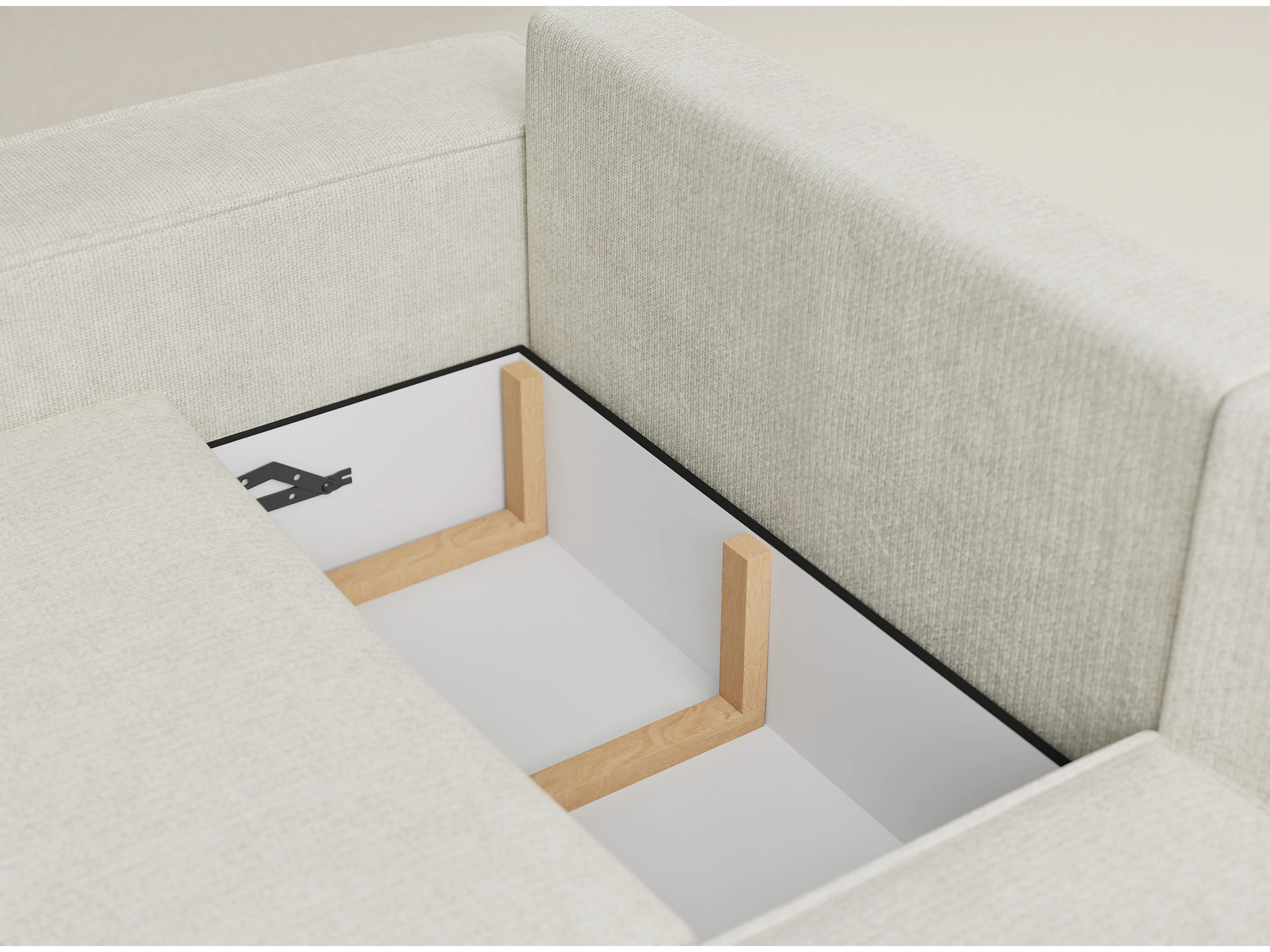 Canapé d'angle droit avec fonction lit en tissu tressé beige TONGA