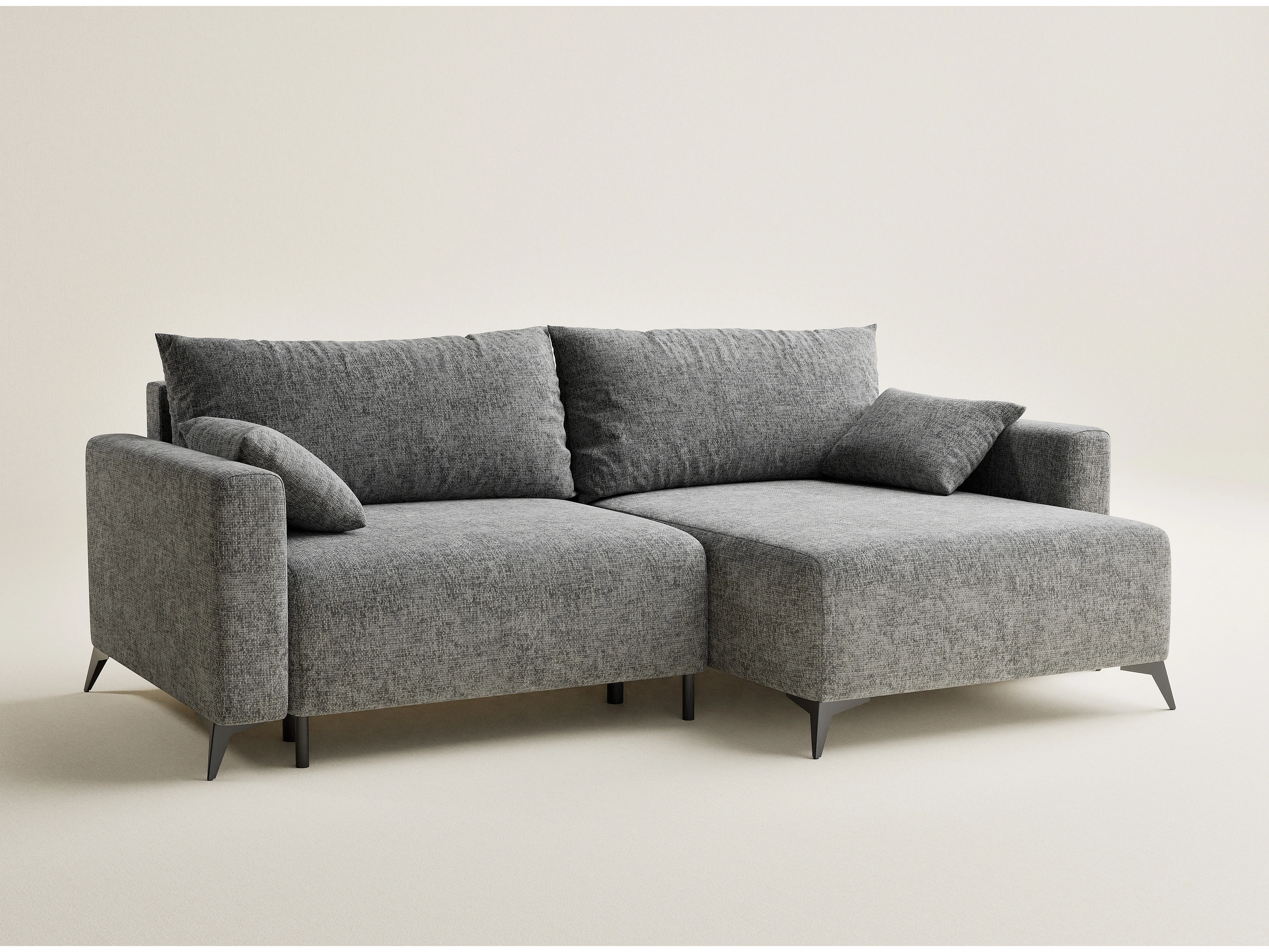 Canapé d'angle droit avec fonction lit en tissu chenille gris LEON
