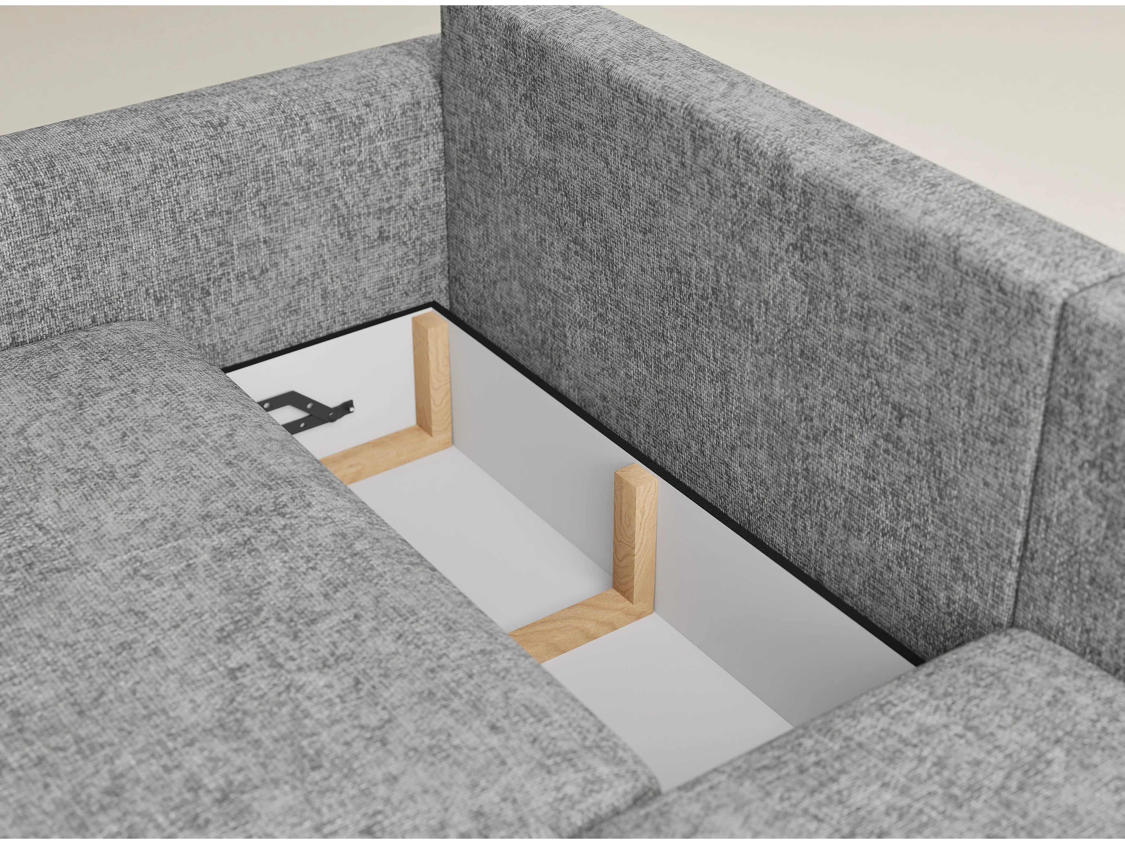 Canapé d'angle droit avec fonction lit en tissu tressé gris clair LEON