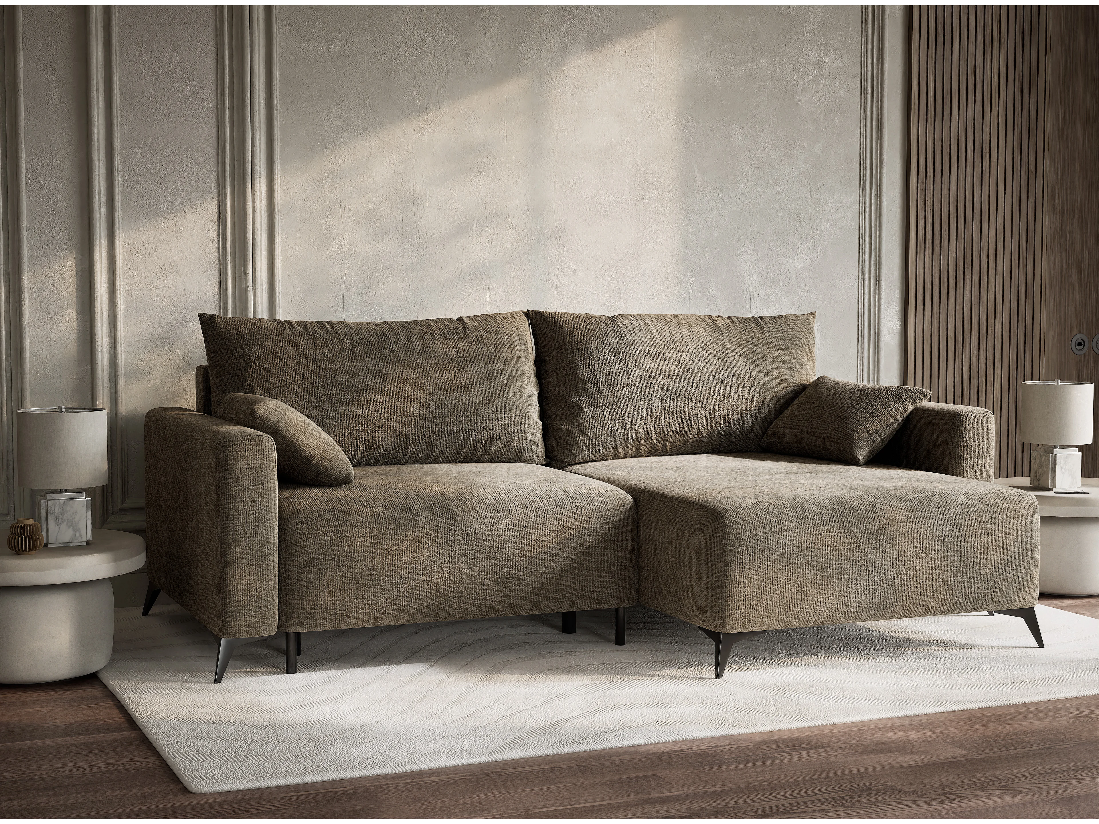Canapé d'angle droit avec fonction lit en tissu chenille brun VELTO