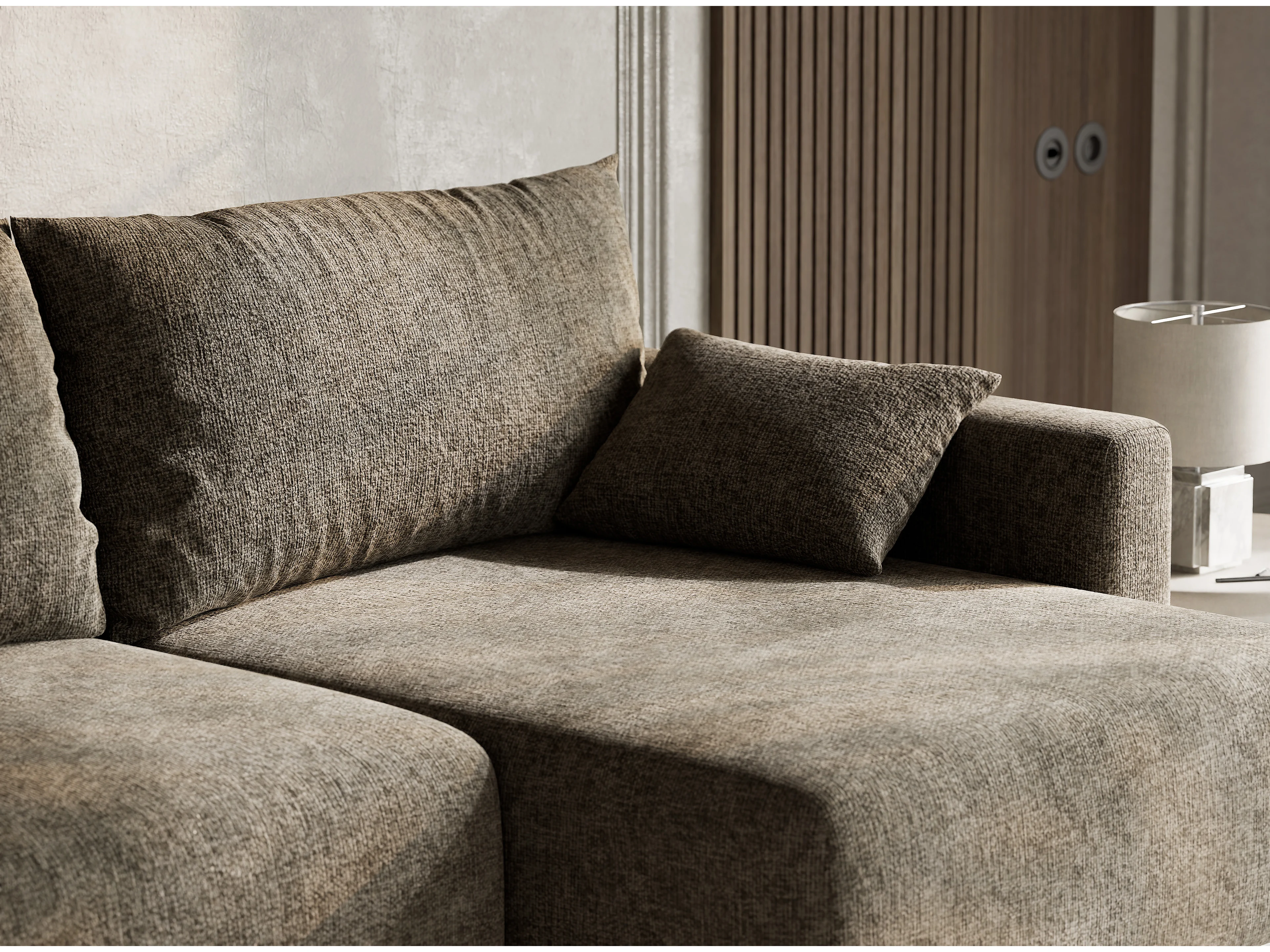Canapé d'angle droit avec fonction lit en tissu chenille taupe LEON