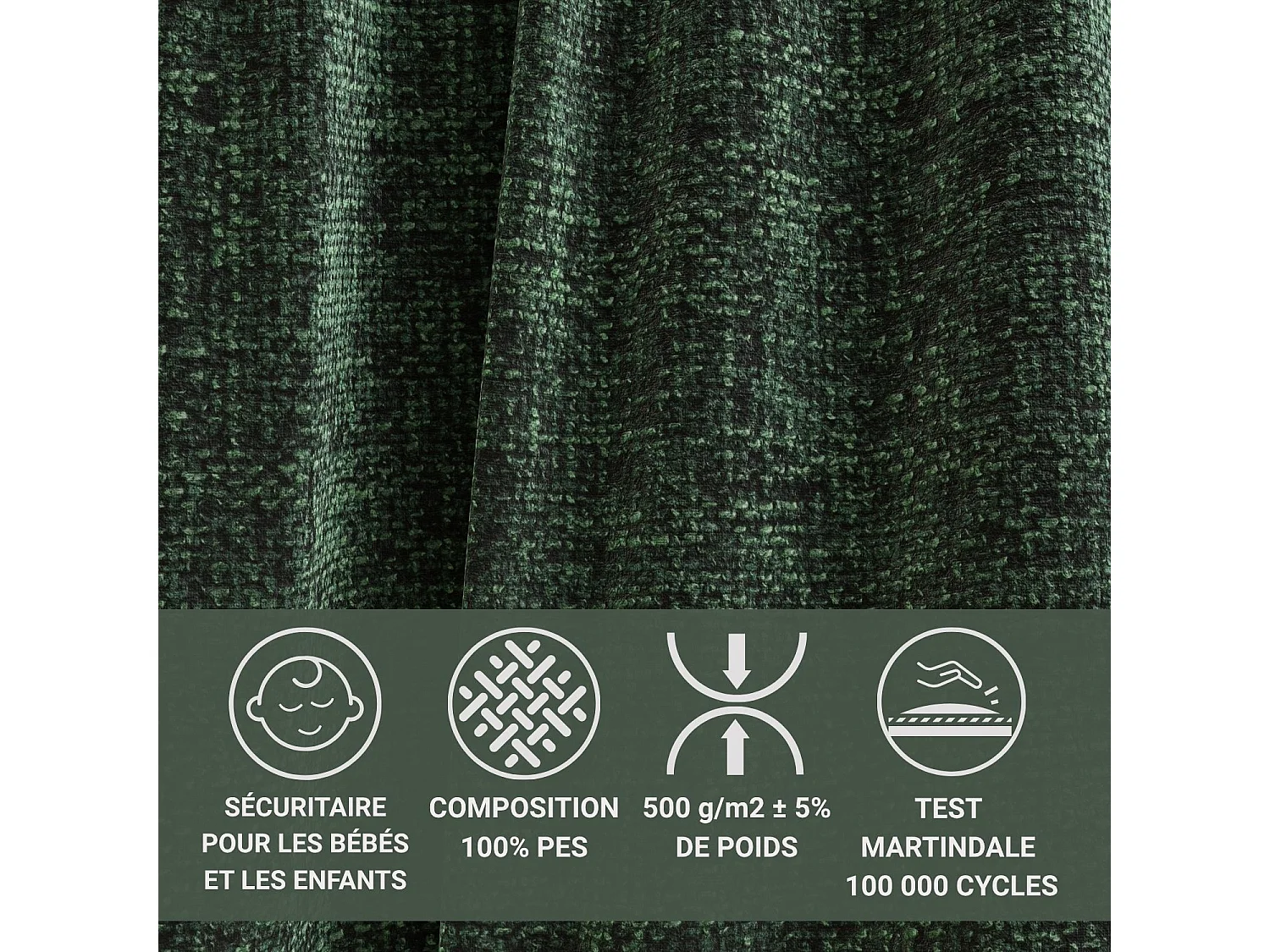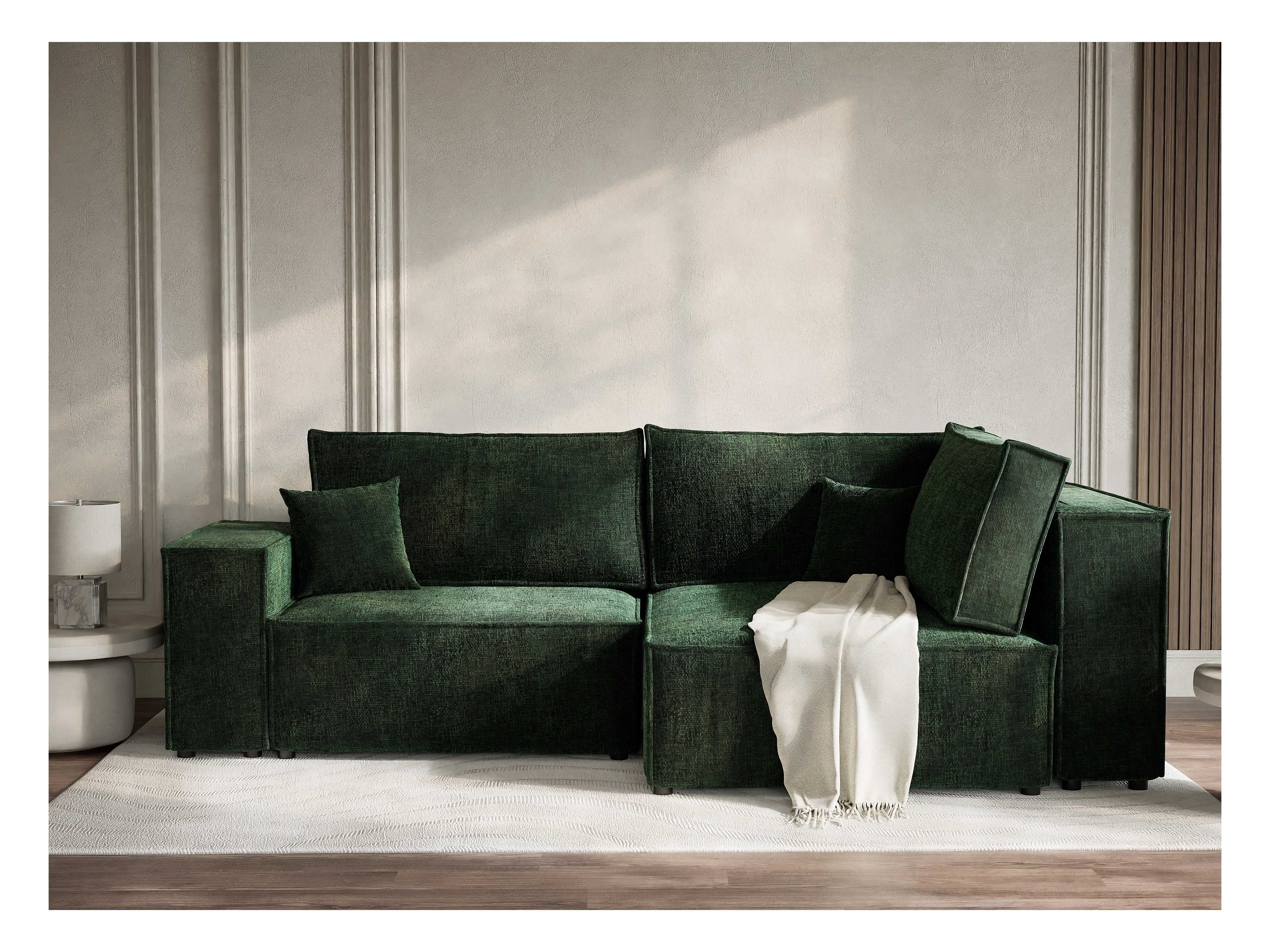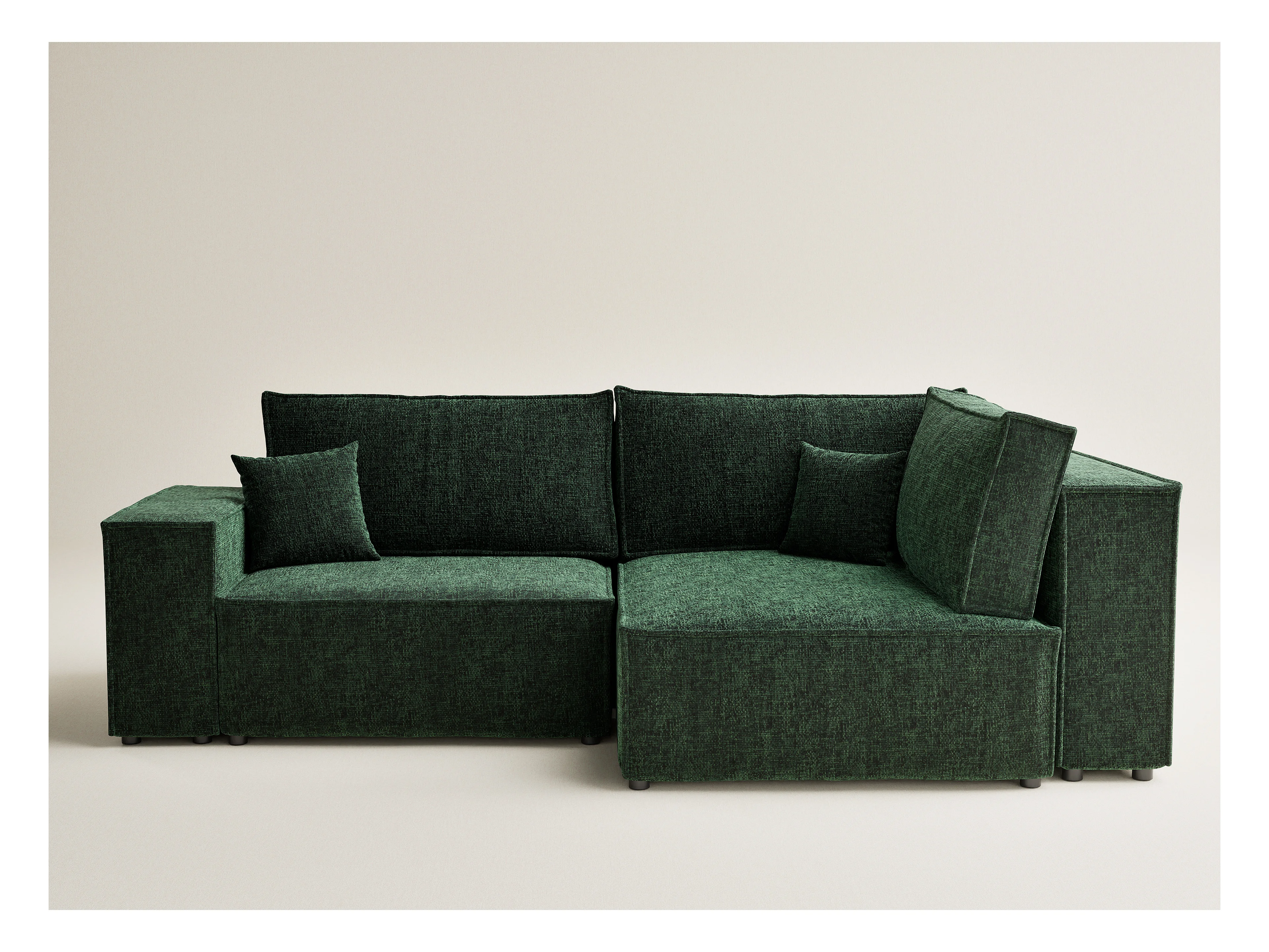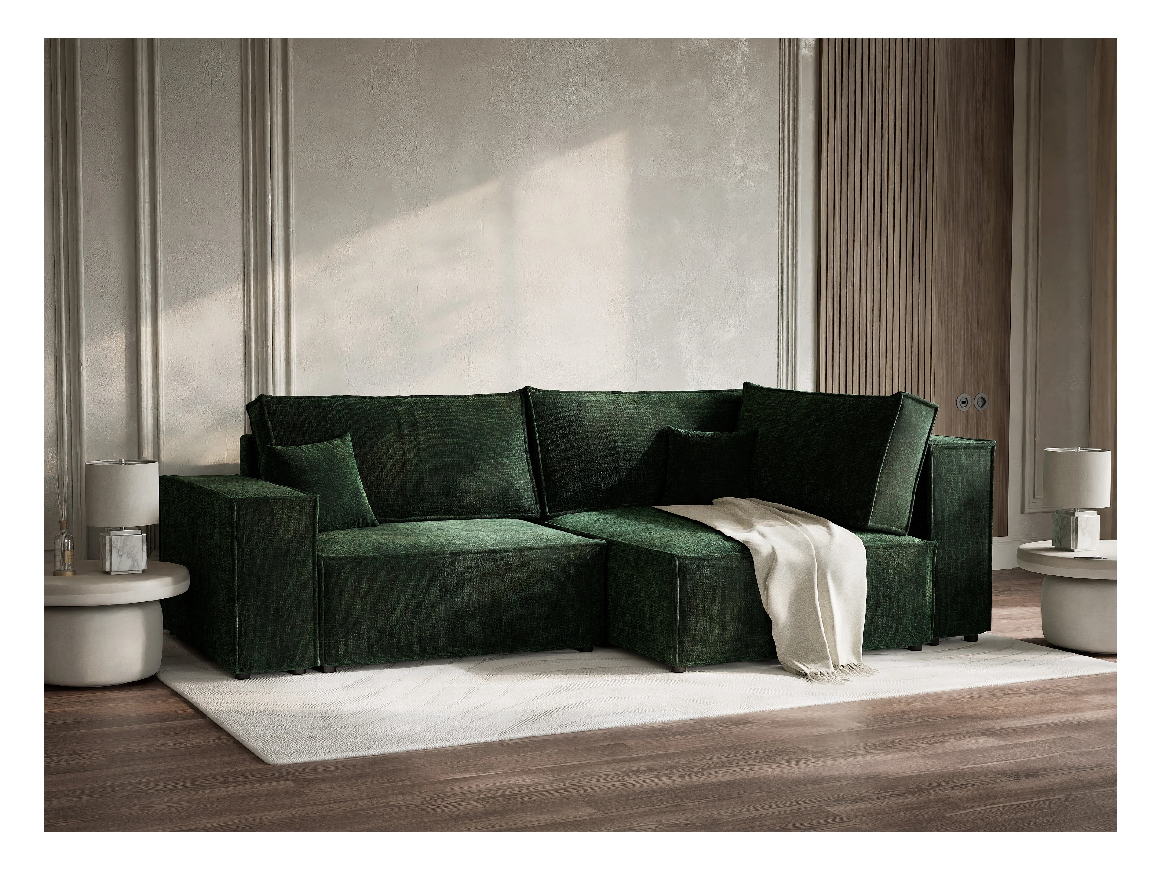 Canapé d'angle droit avec fonction lit en tissu chenille vert foncé TONGA