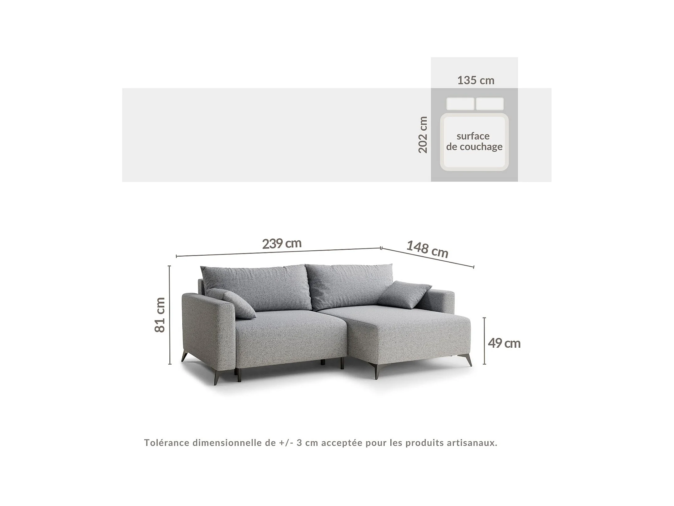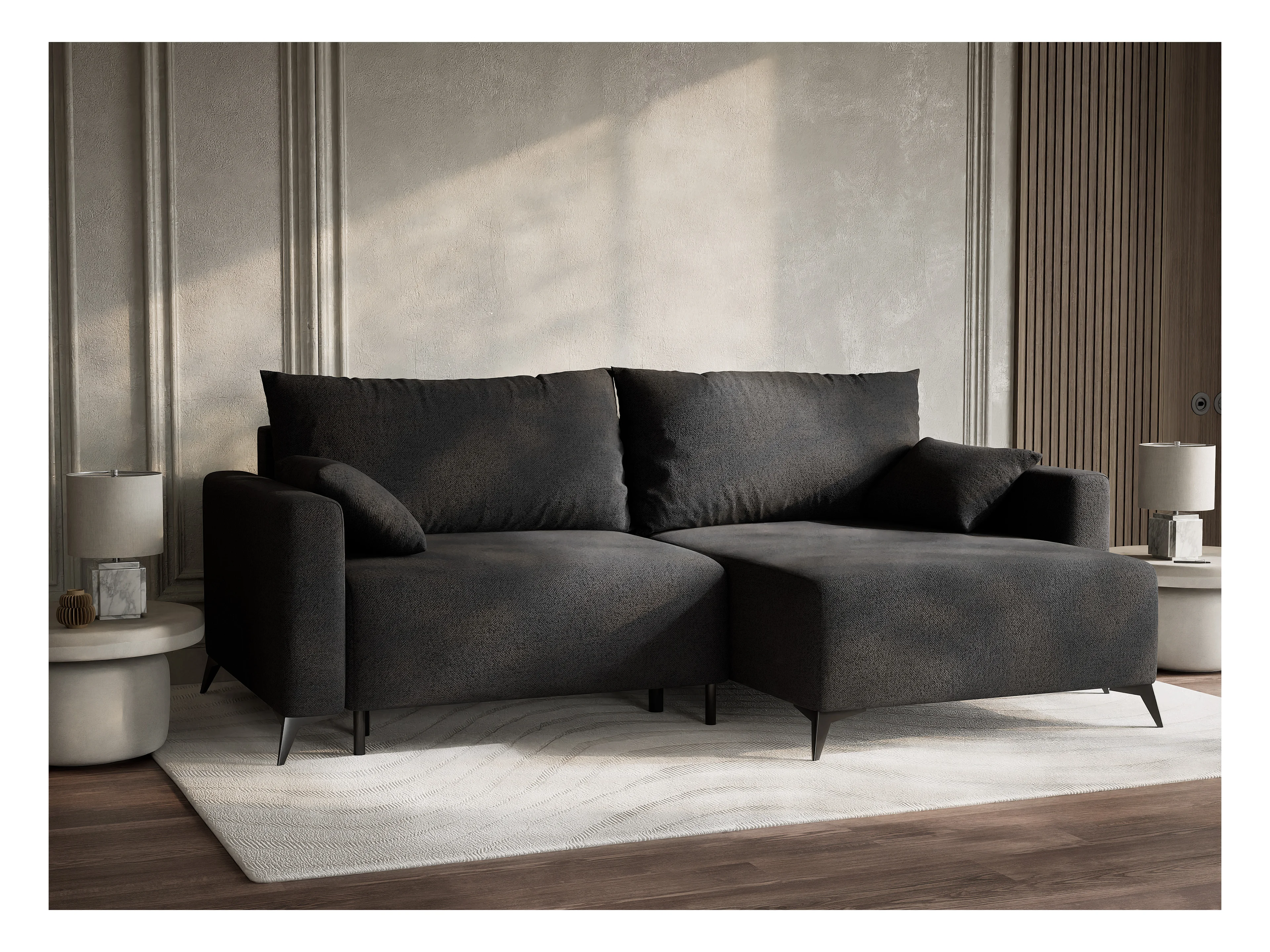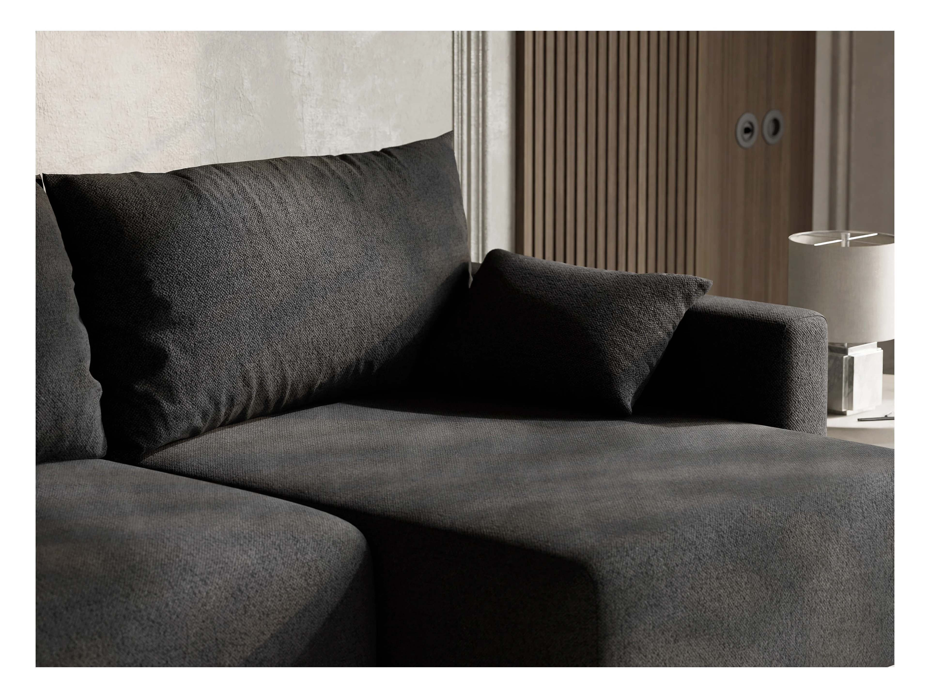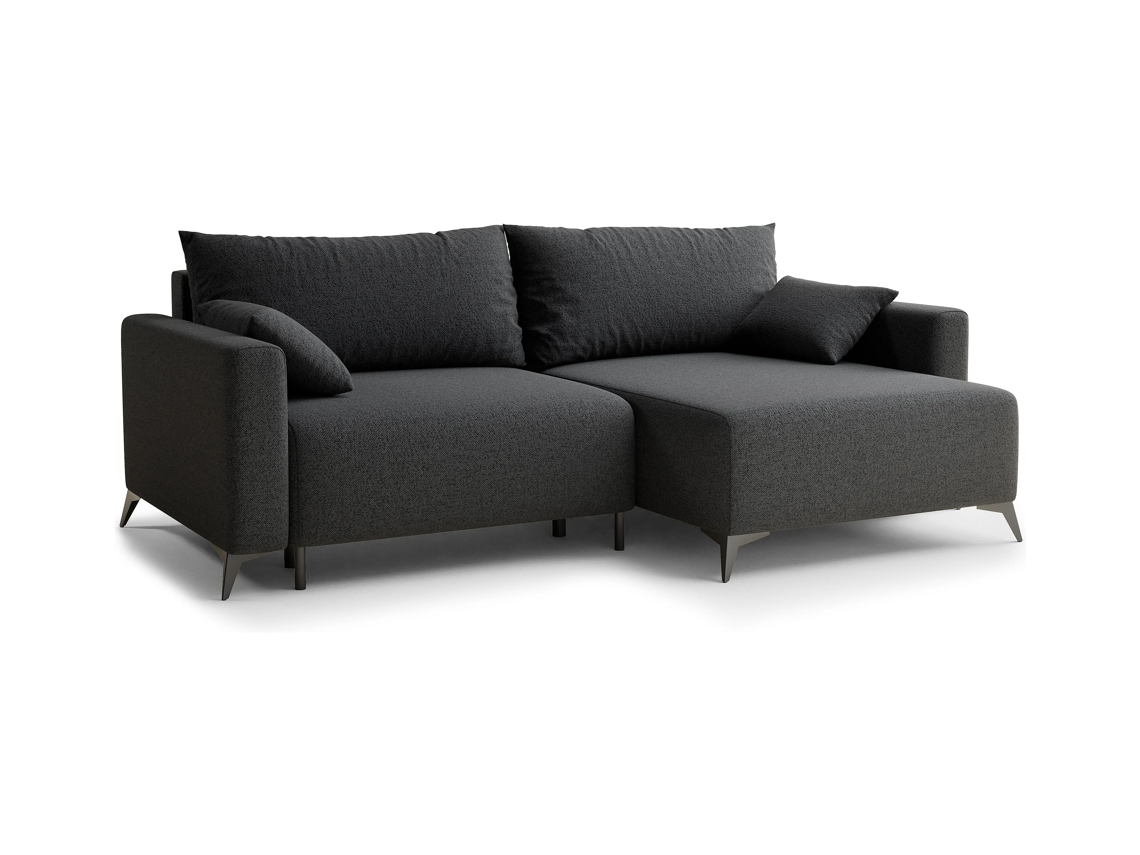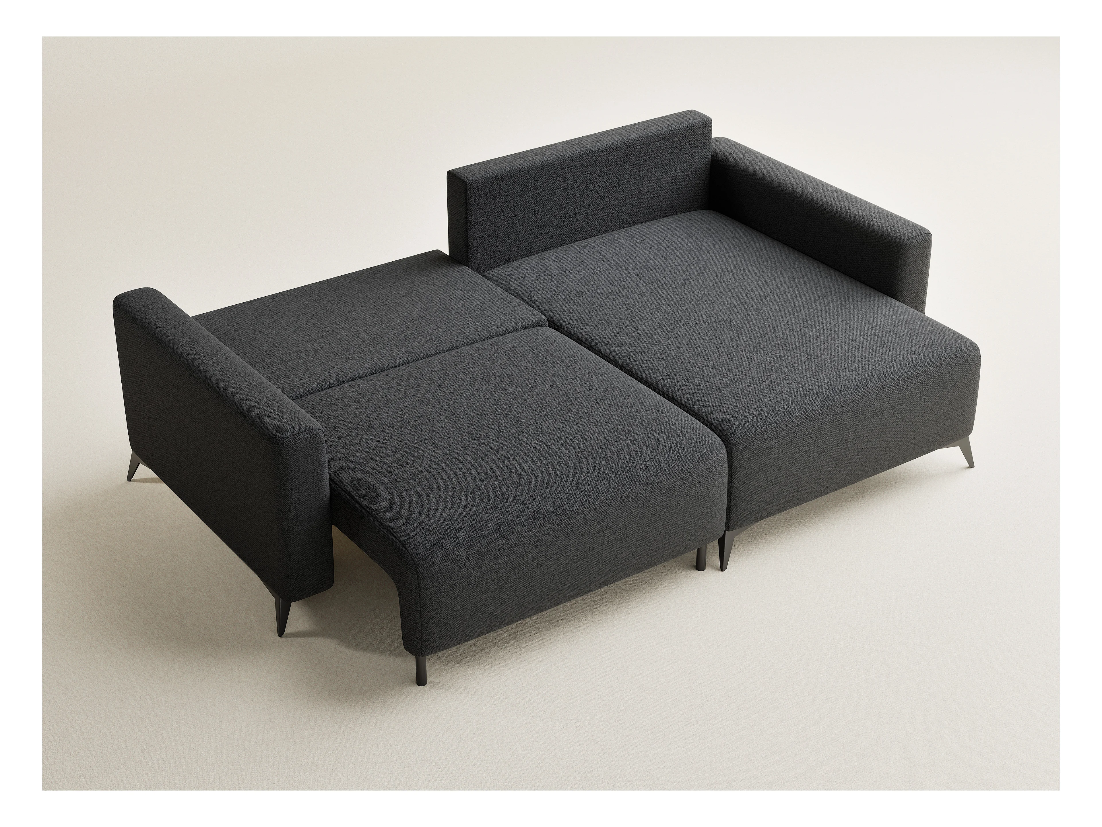 Canapé d'angle droit avec fonction lit en tissu tressé graphite LEON
