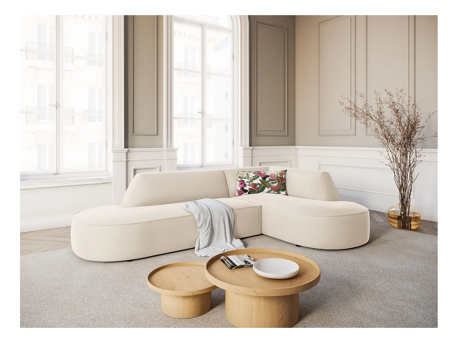 CXL by Christian Lacroix - Canapé d'angle droit modulable "Lucien" 4 places en velours beige clair - 275x165x70cm