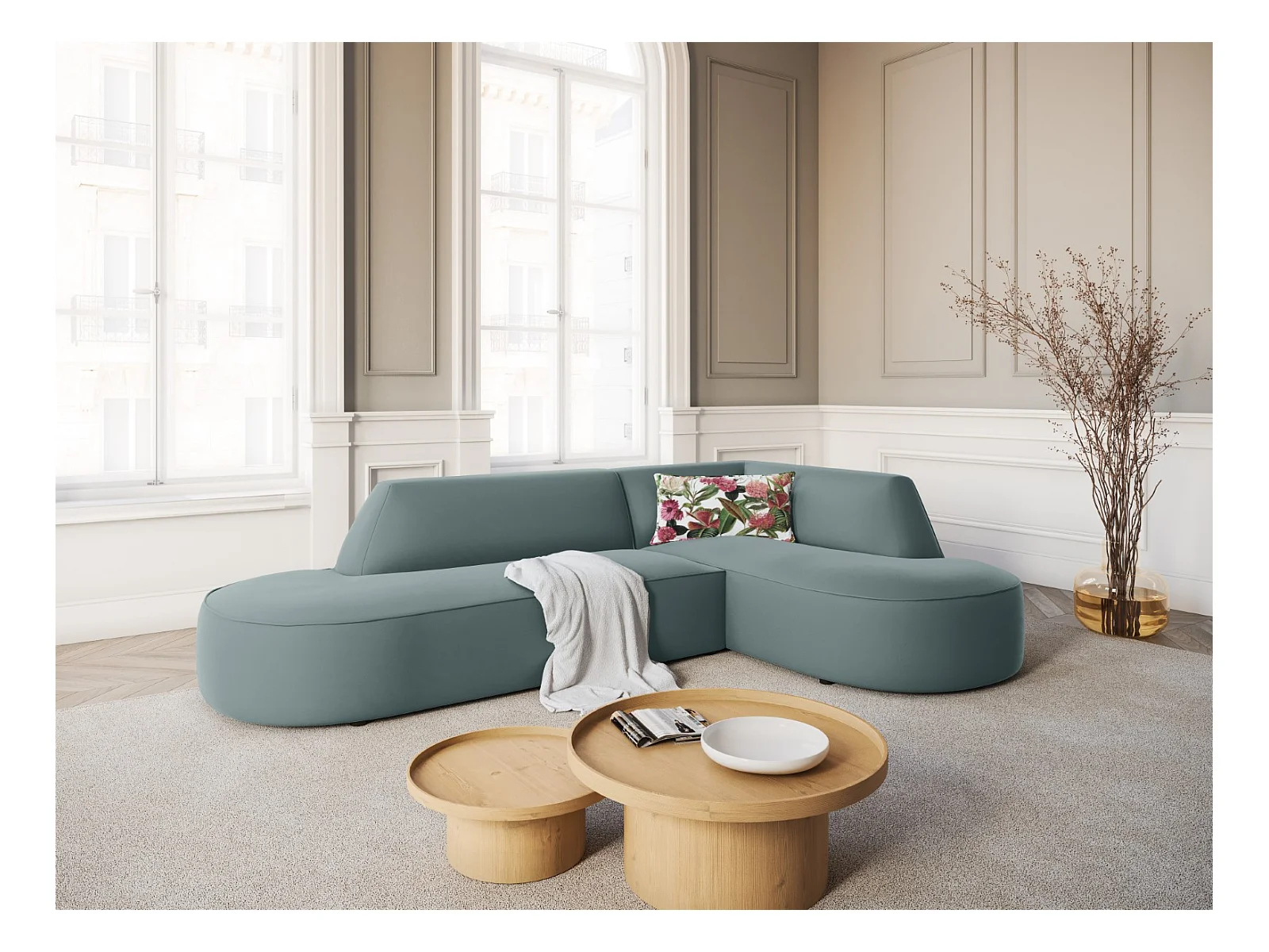 CXL by Christian Lacroix - Canapé d'angle droit modulable "Lorella" 4 places en velours bleu pastel - 265x145x70cm