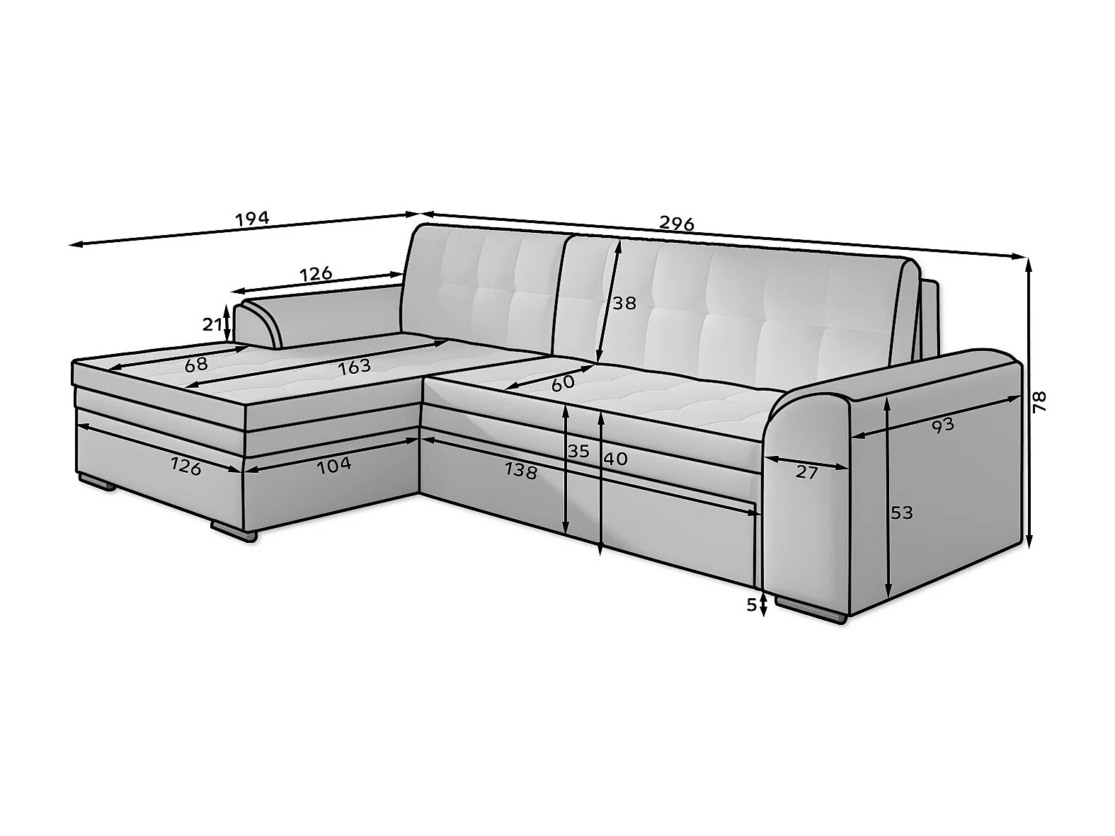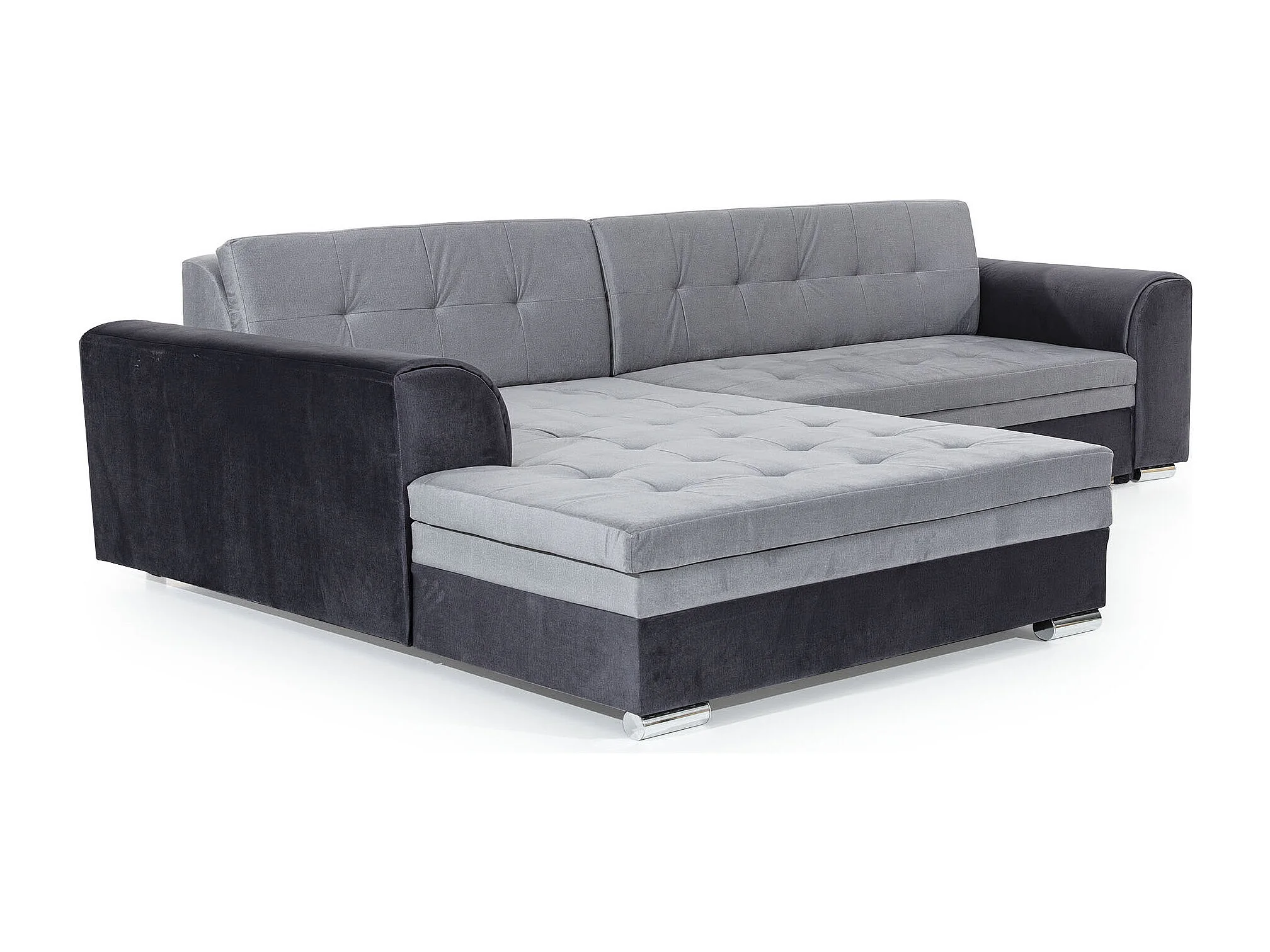 Canapé convertible gauche droit tissu gris clair et simili noir Pika 260cm