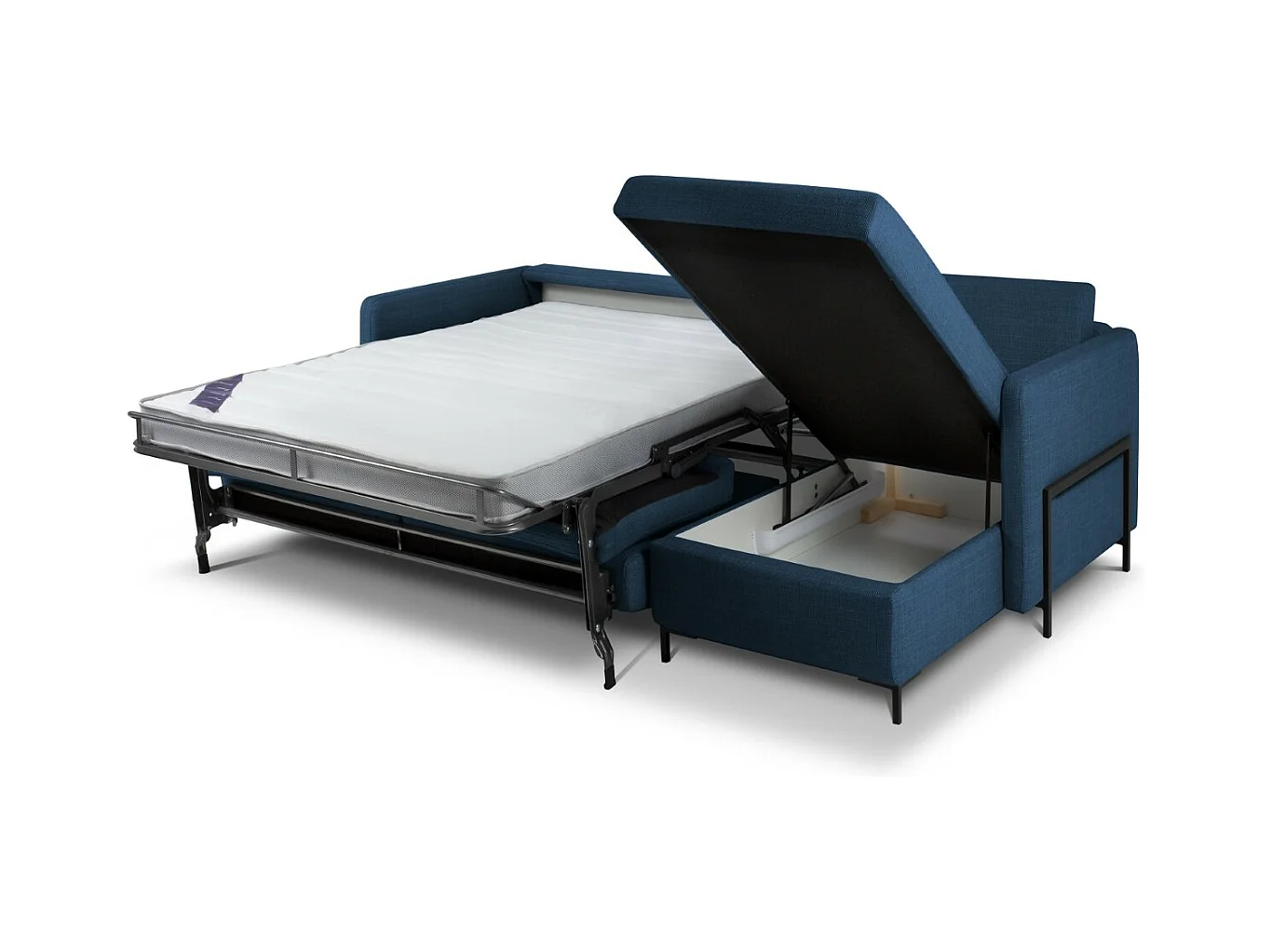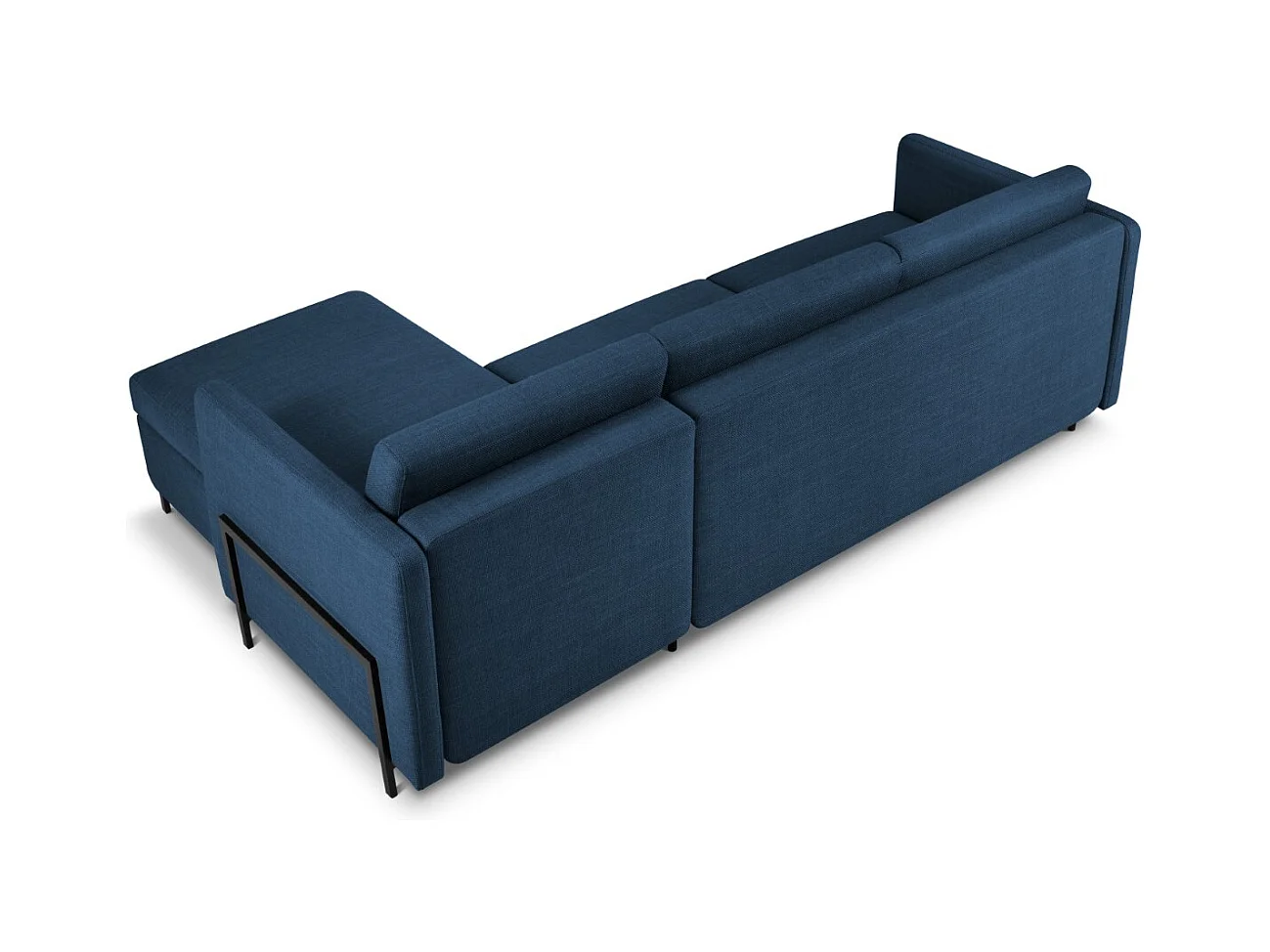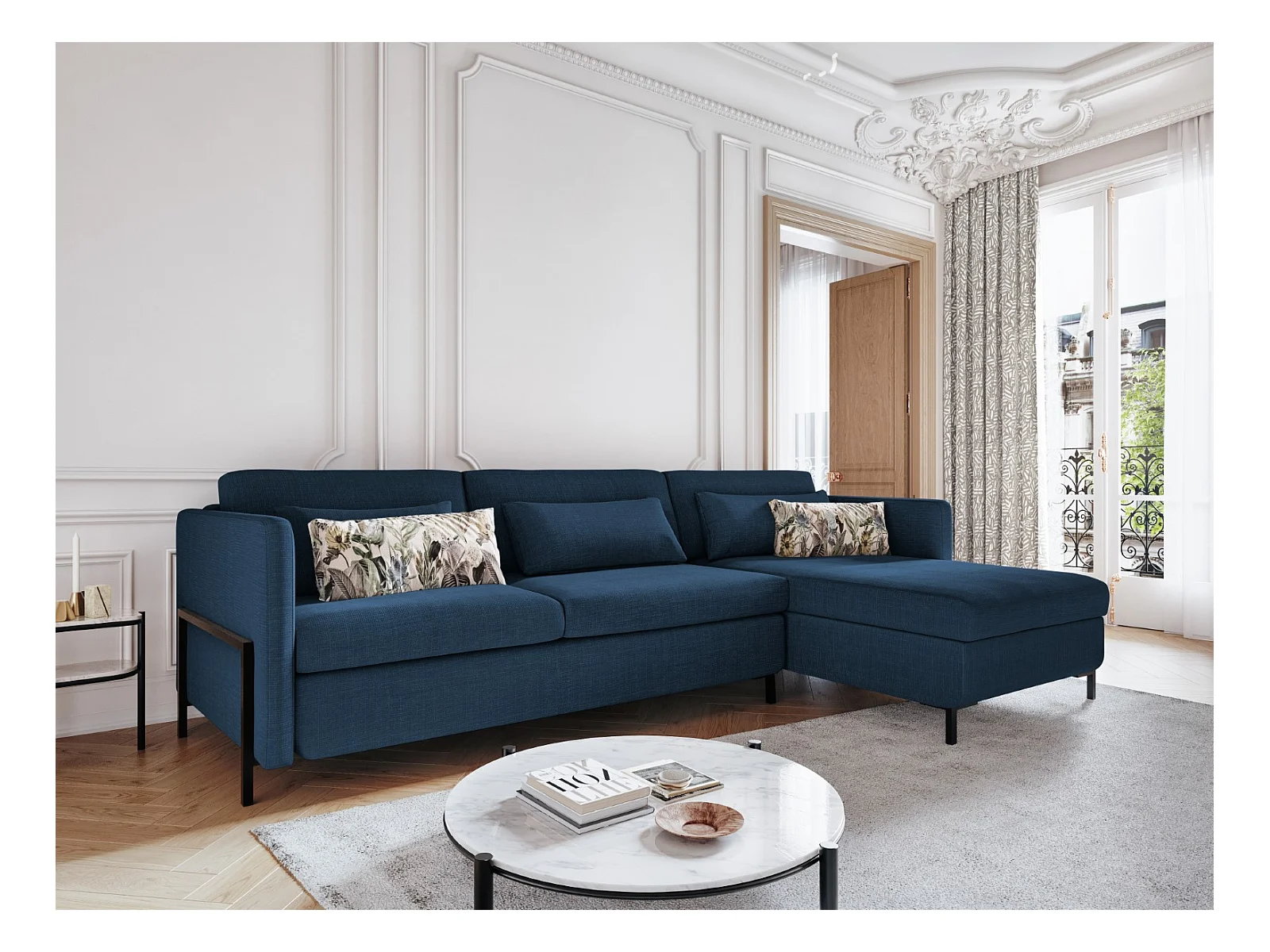 Canapé angle droit convertible tissu doux bleu nuit et pieds acier chromé Zabor 270cm