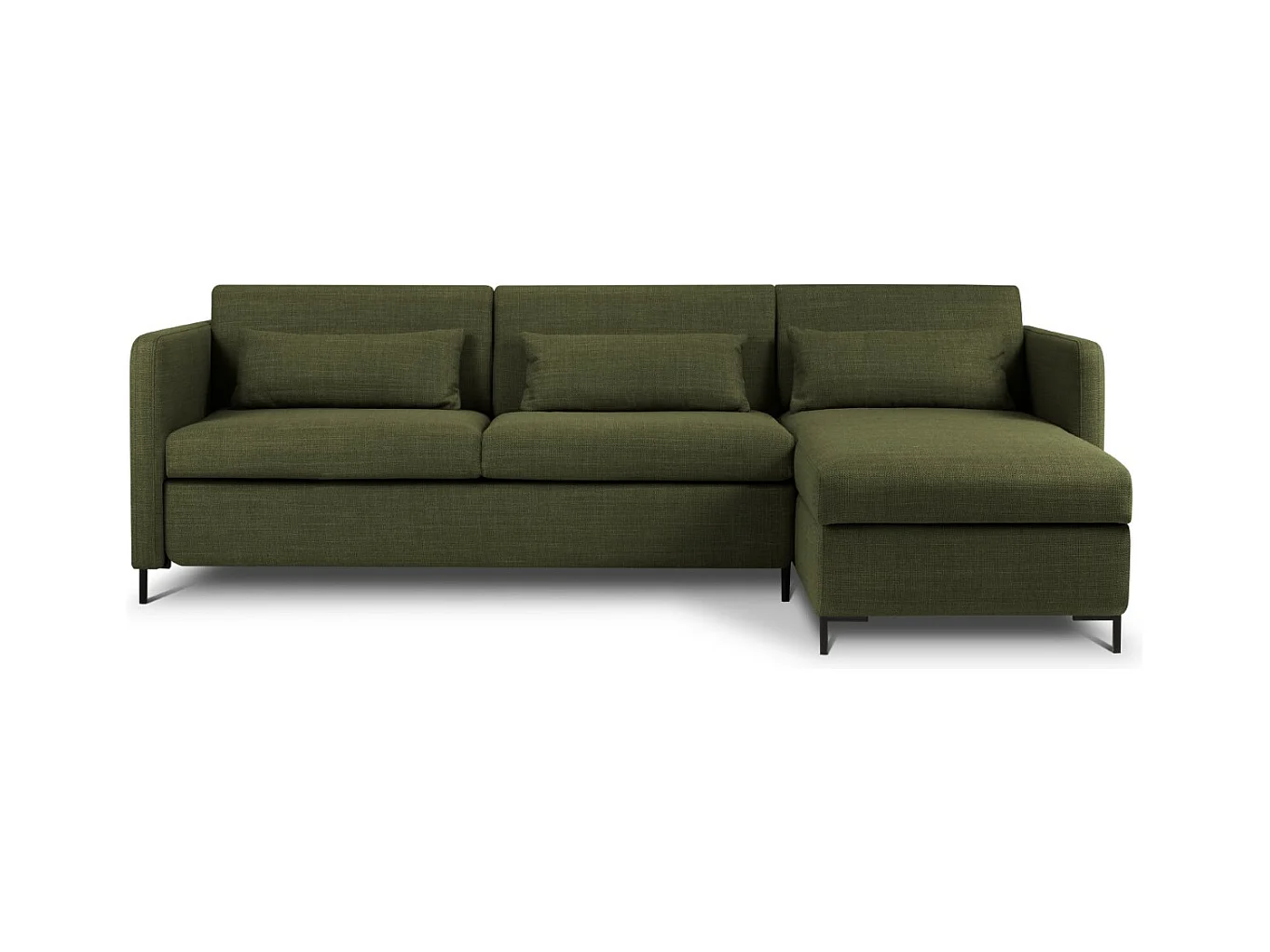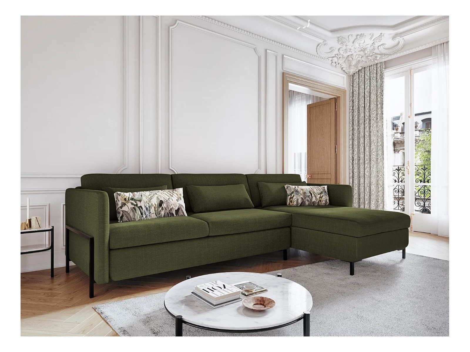 Canapé d'angle convertible tissu ZURIK - Coffre de rangement et pieds métal noir-Vert épinard-angle droit