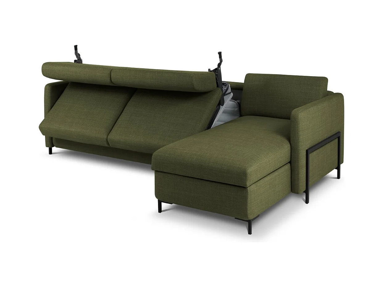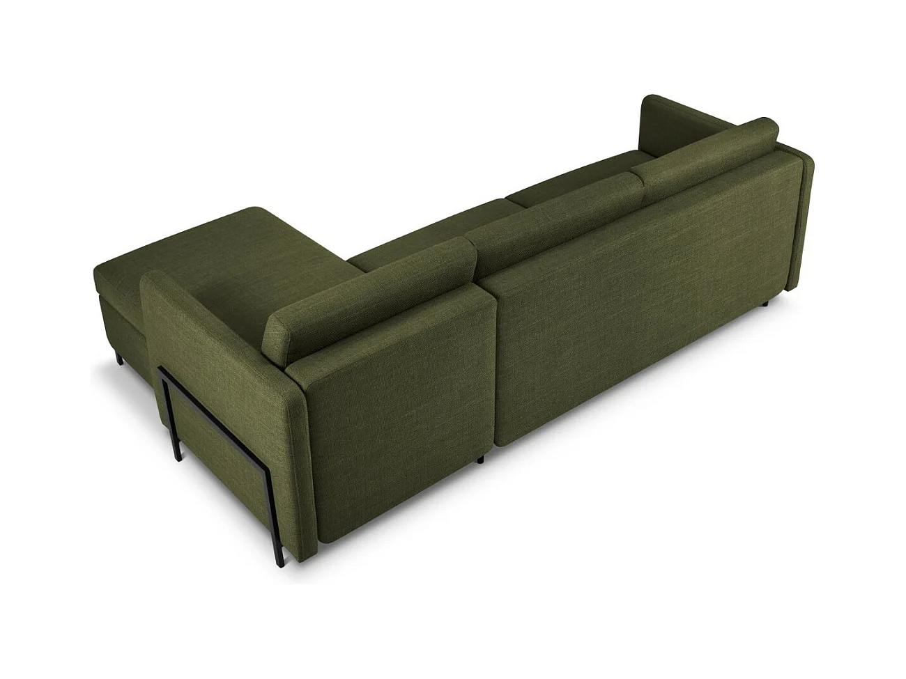 Canapé d'angle convertible tissu ZURIK - Coffre de rangement et pieds métal noir-Vert épinard-angle gauche