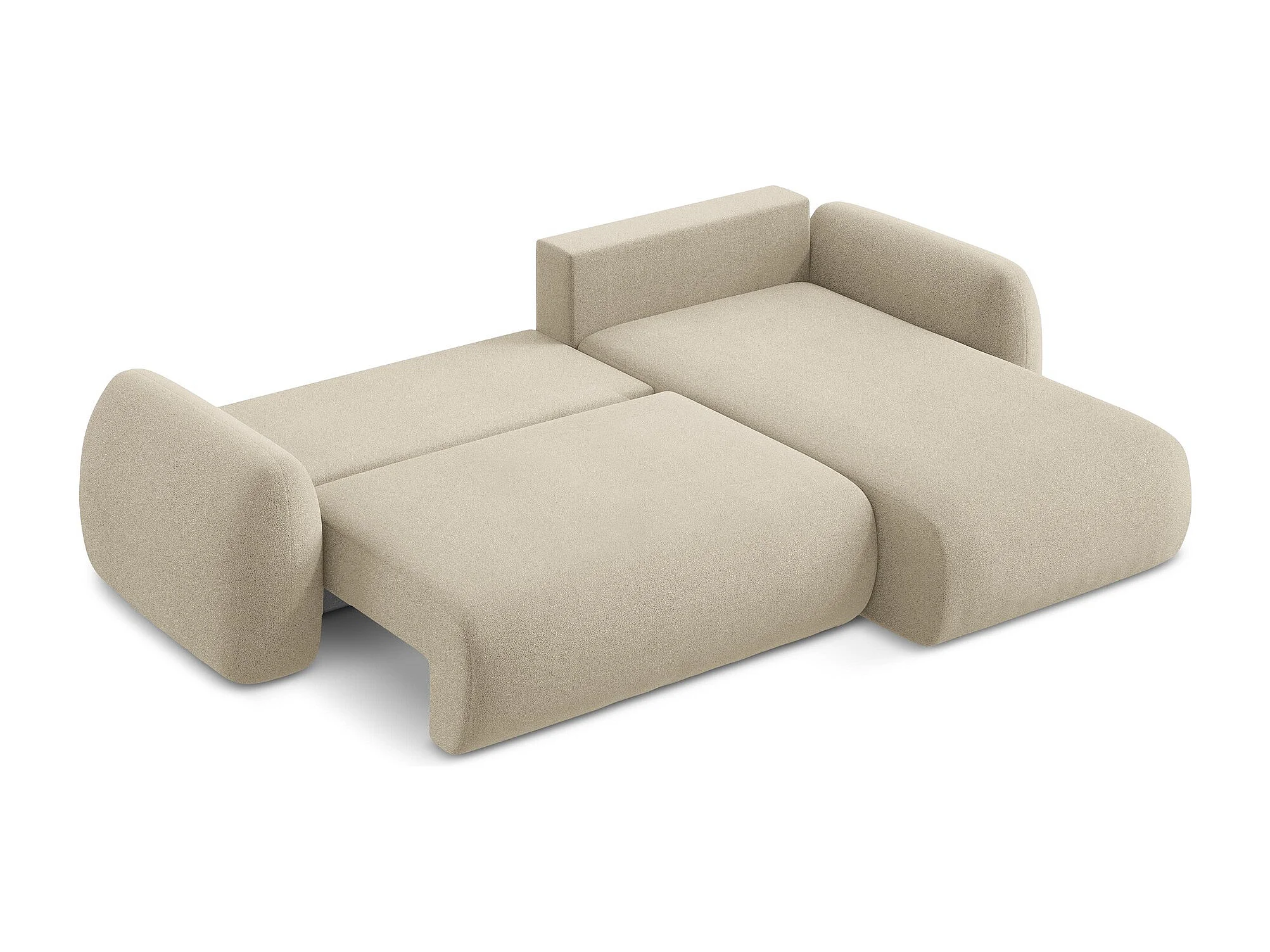 Canapé d'angle droit convertible en tissu bouclette - beige foncé - LOHI