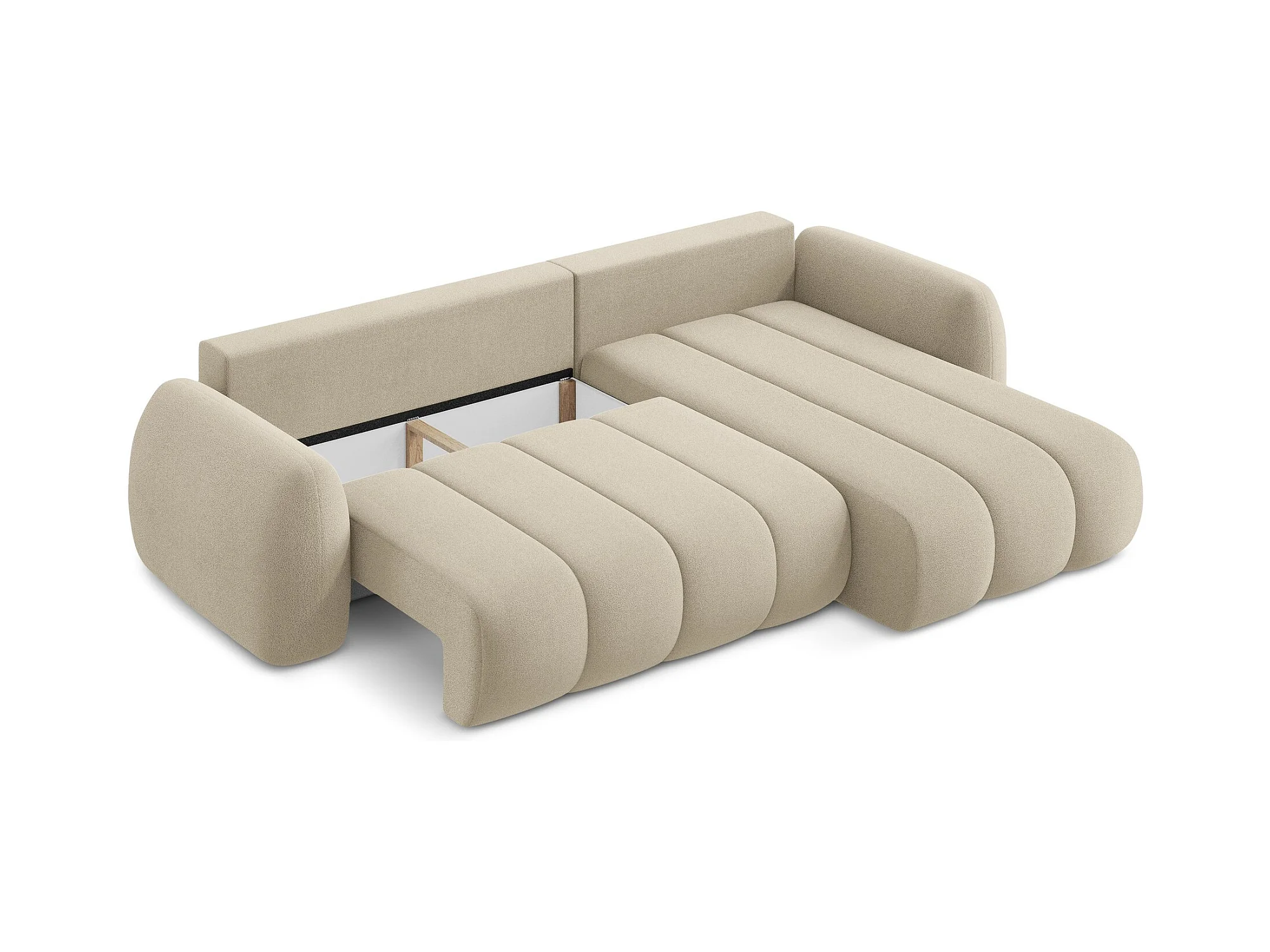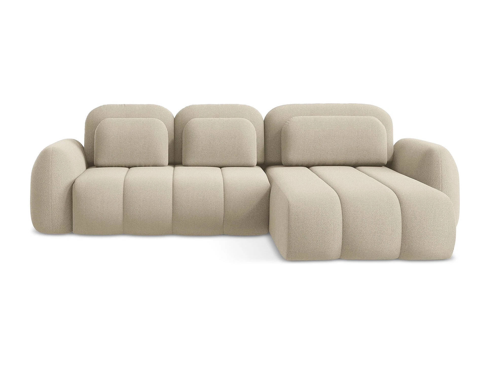 Canapé d'angle droit convertible en tissu bouclette - beige foncé - LOHI