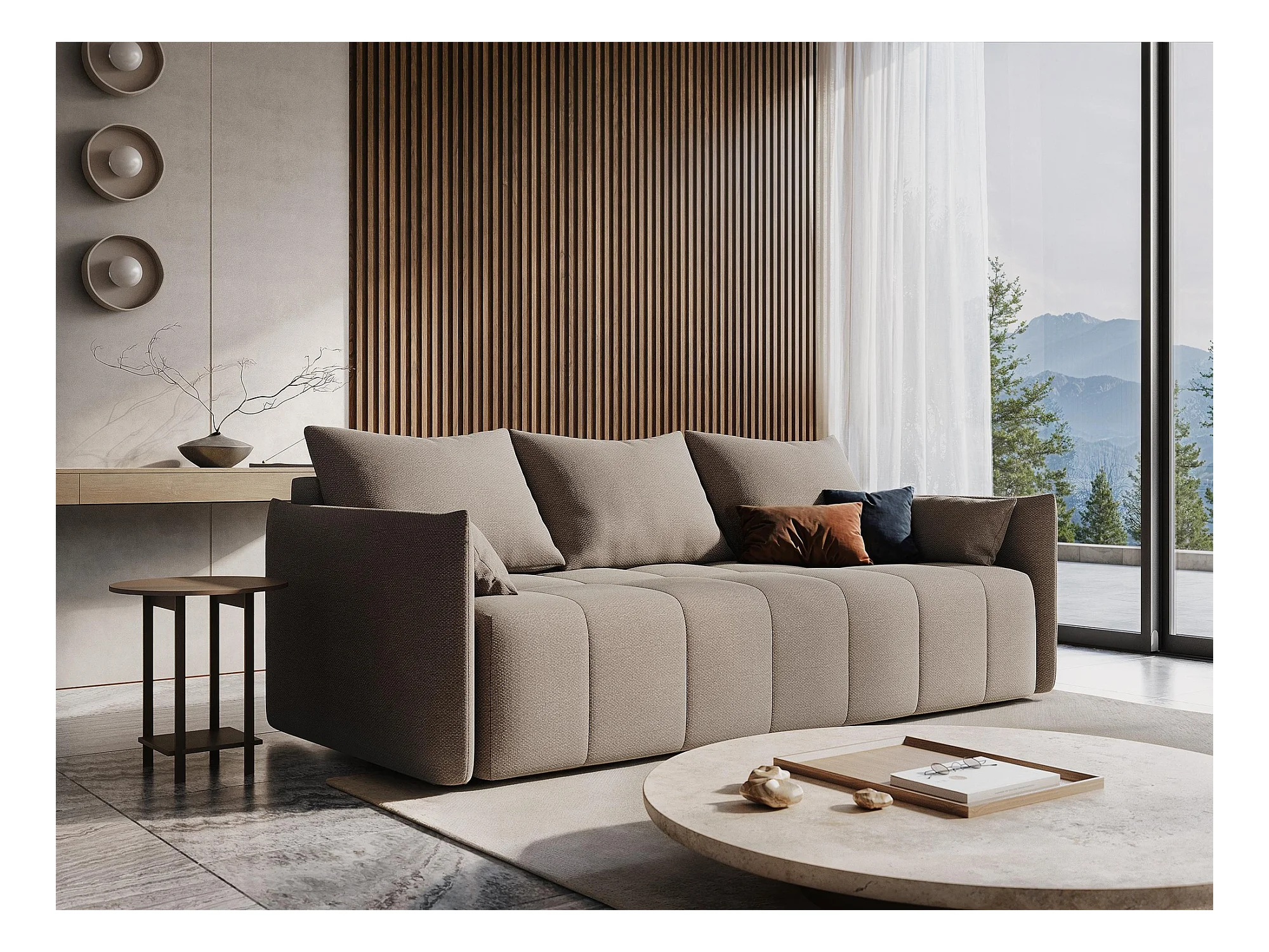 Canapé d'angle droit convertible en tissu bouclette - sable - MOKU