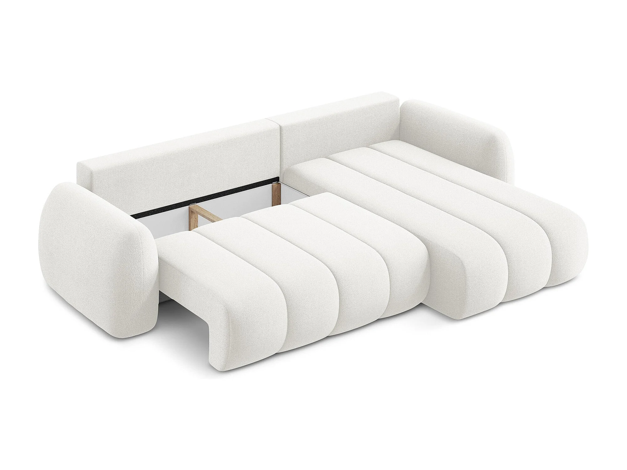 Canapé d'angle droit convertible en tissu bouclette - blanc - LOHI