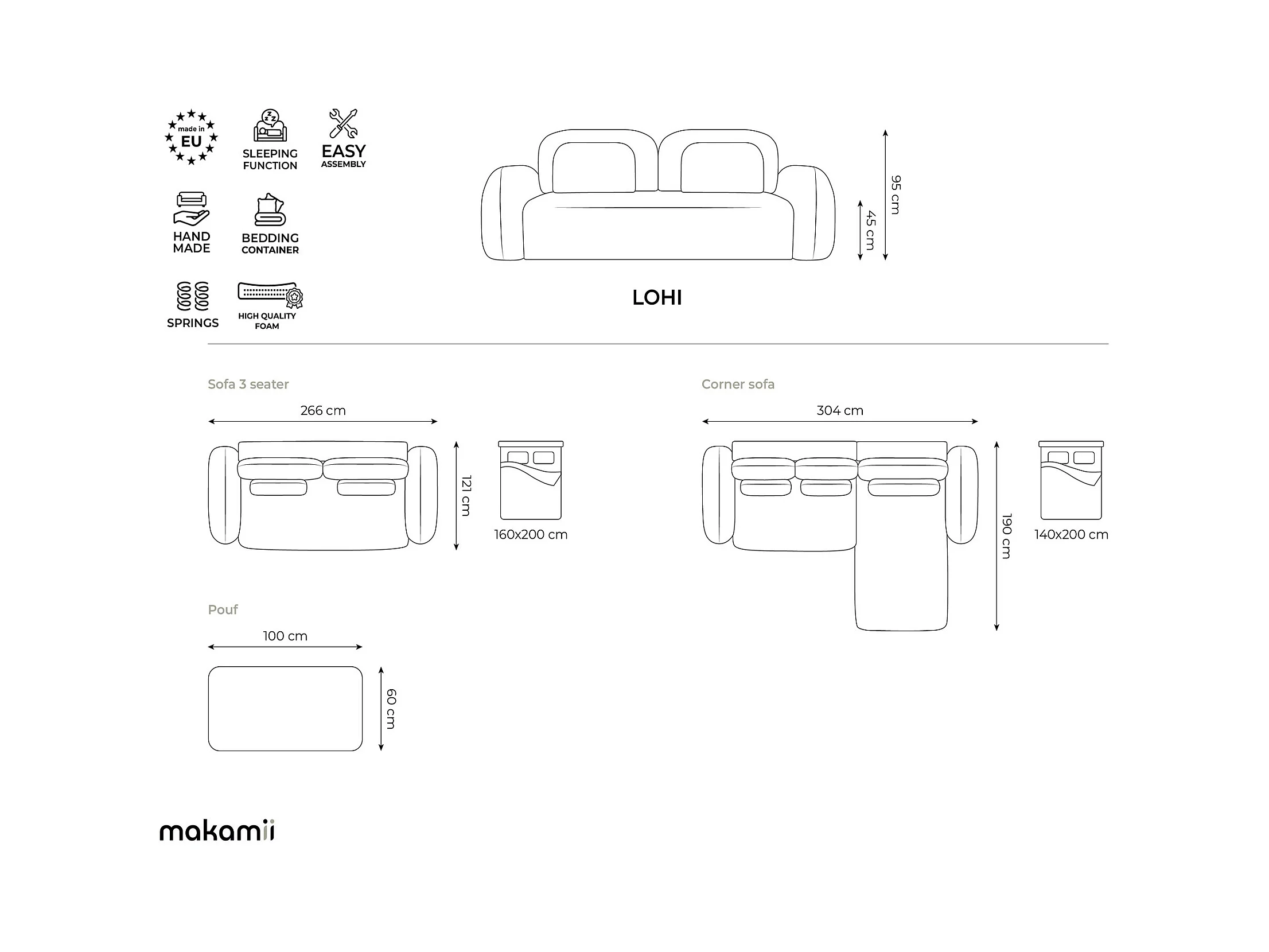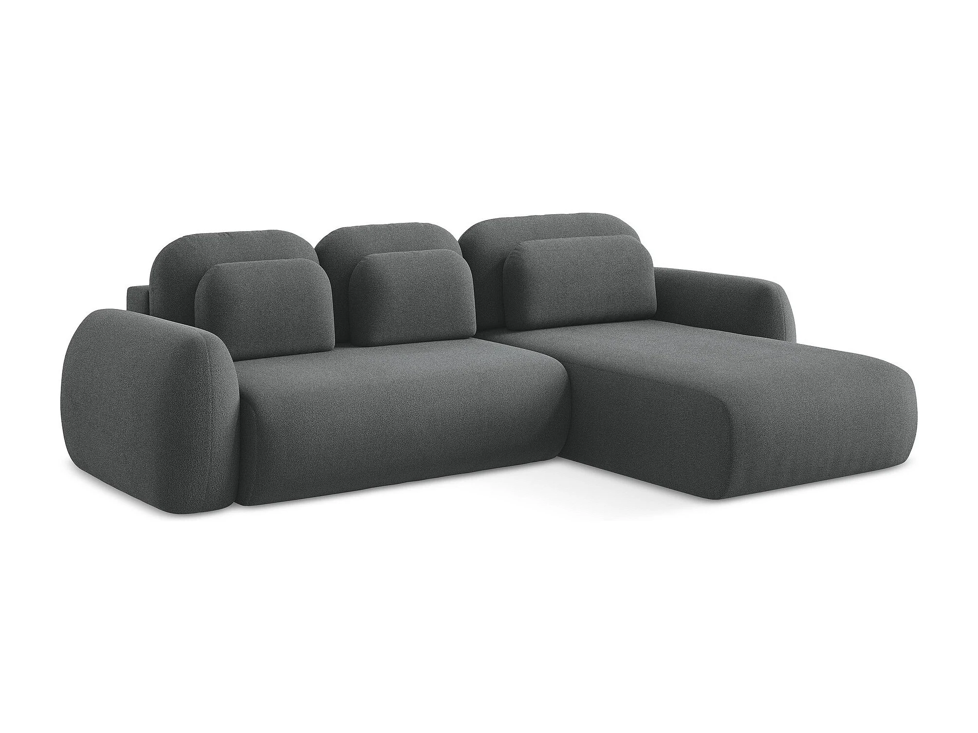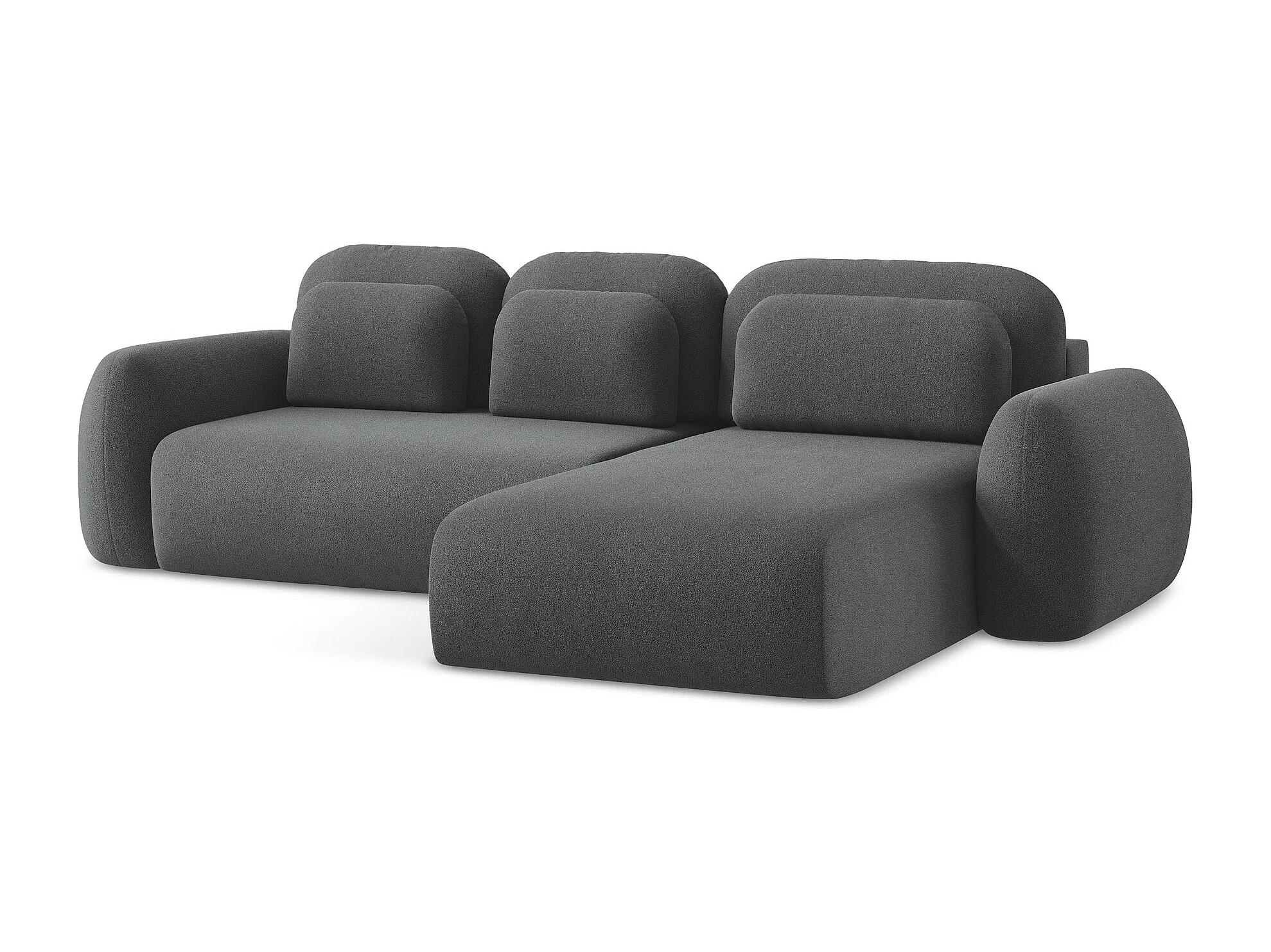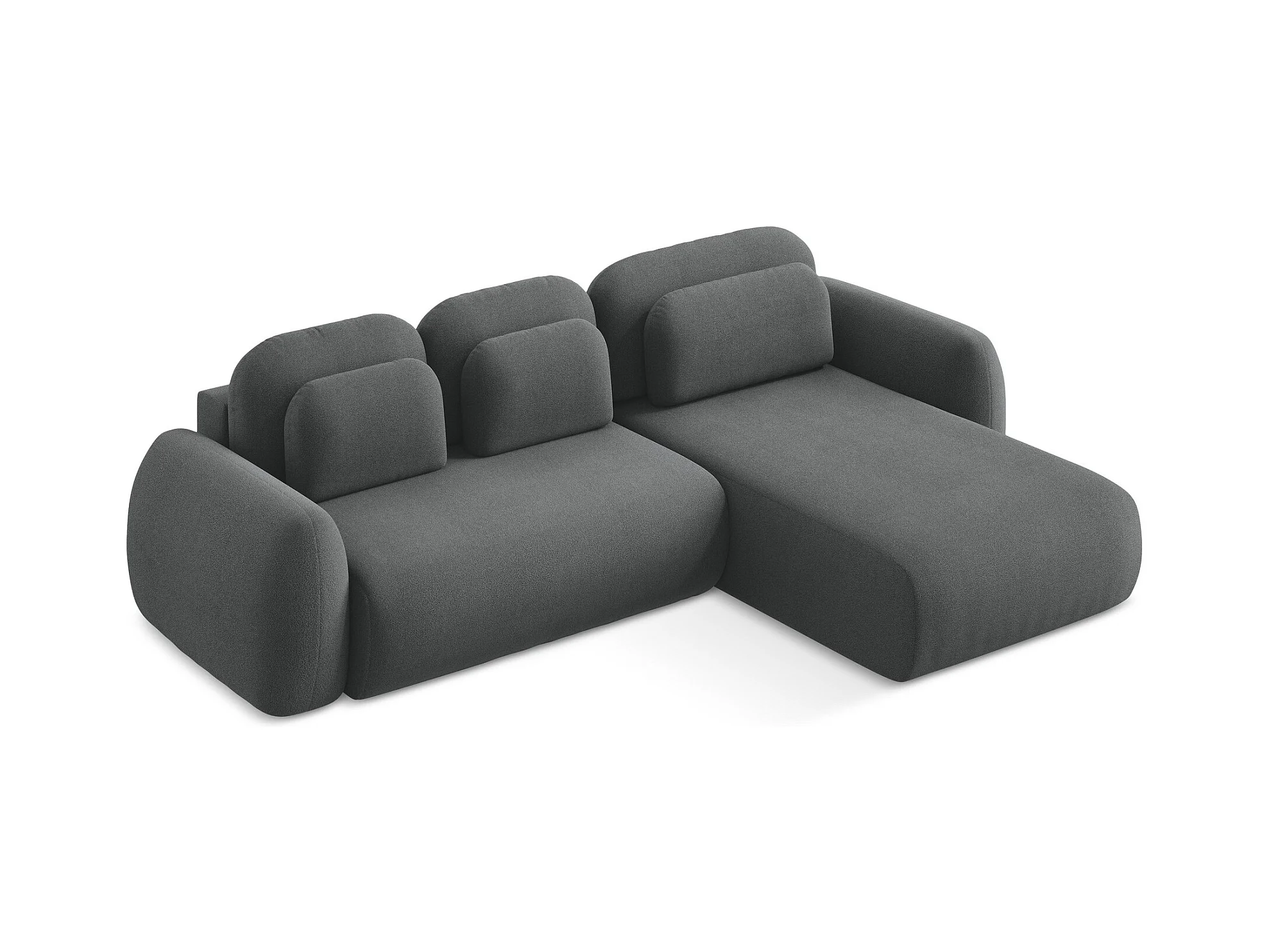 Canapé d'angle droit convertible en tissu bouclette - gris foncé - LOHI