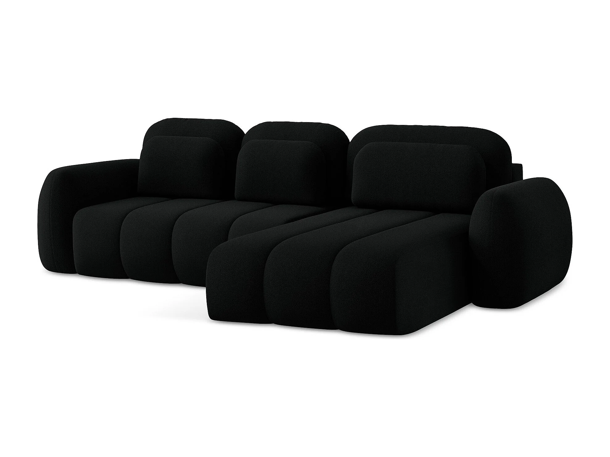 Canapé d'angle droit convertible en tissu bouclette - noir - LOHI