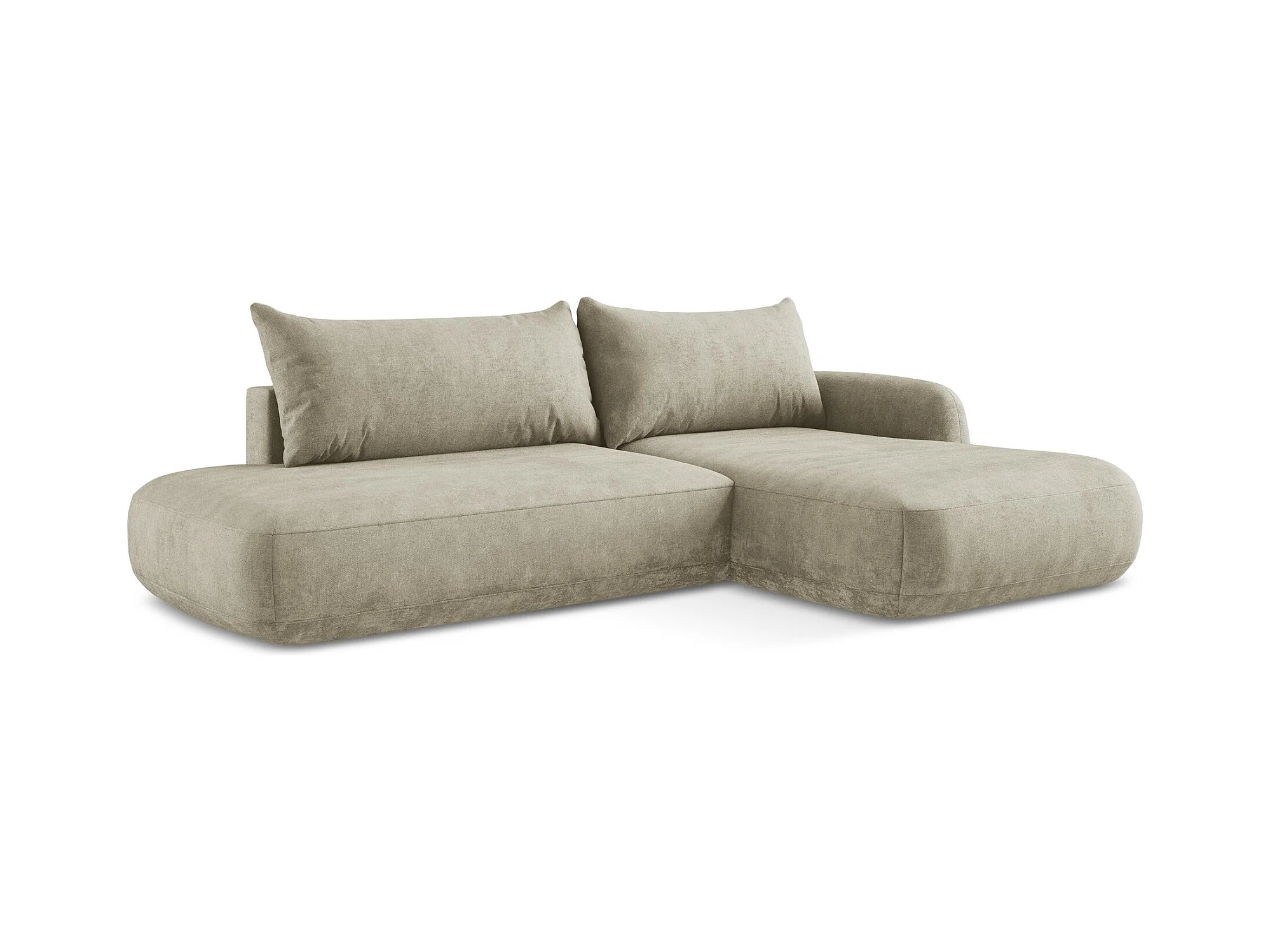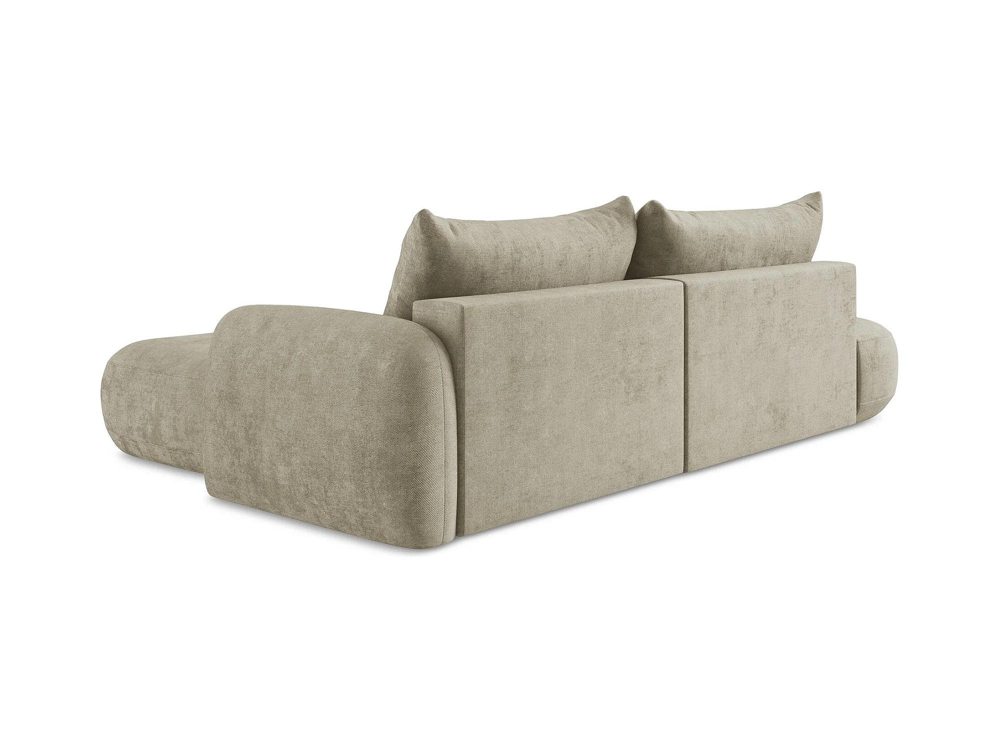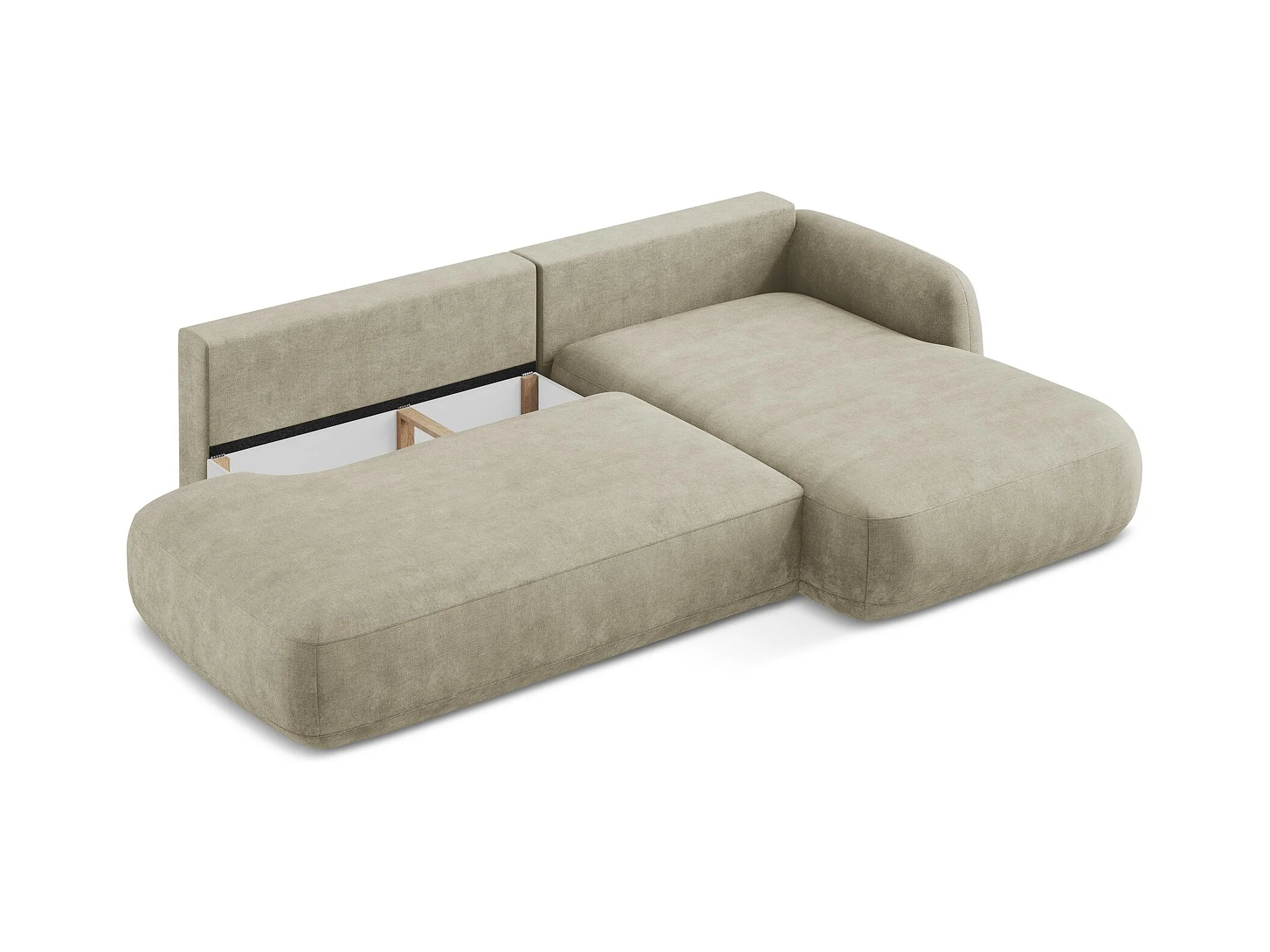 Canapé d'angle avec fonction couchage et coffre de lit Modena Rond tissu Salvador Beige clair Droite