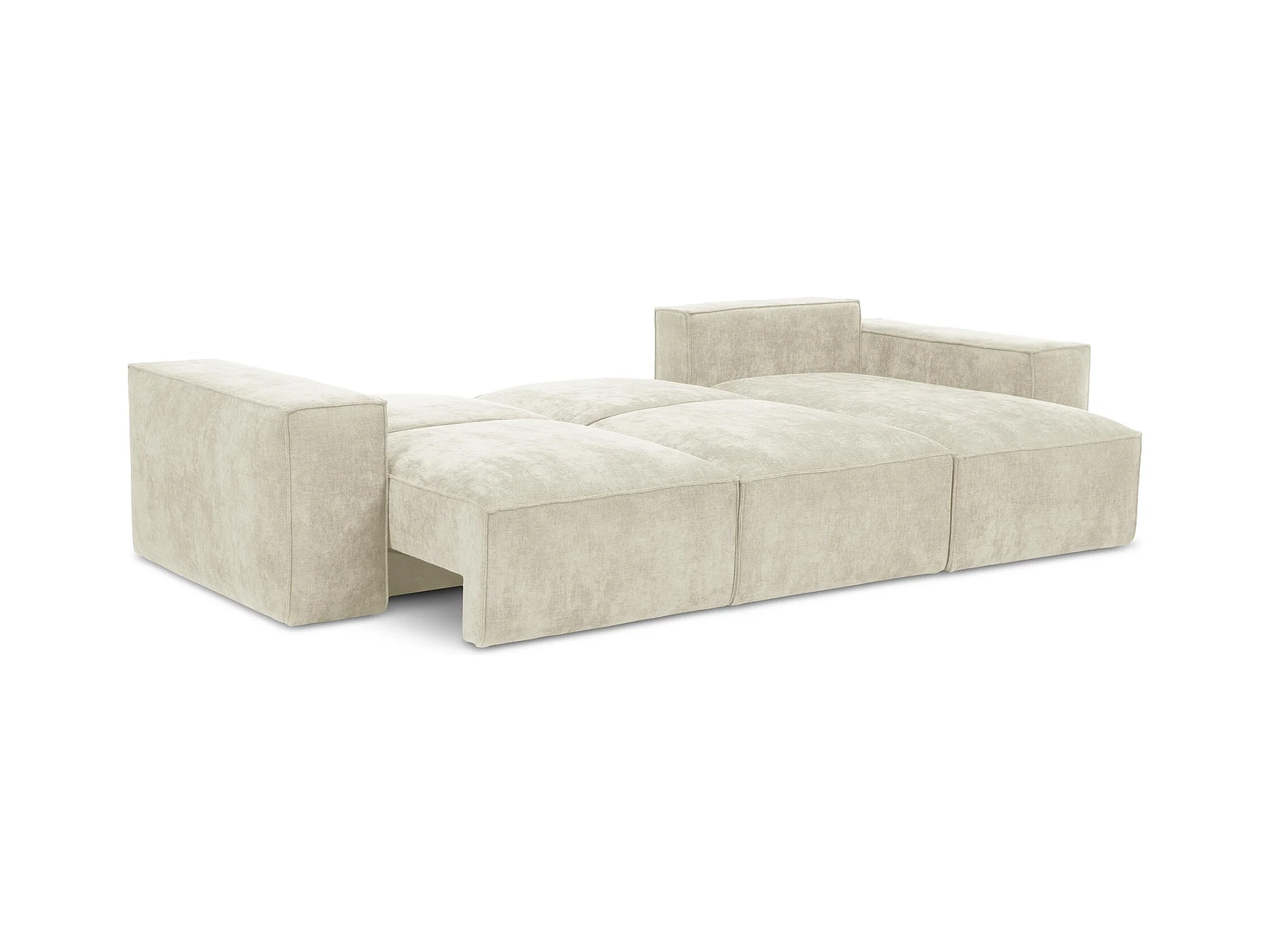 Canapé banquette convertible 3 places tissu doux Figo 214cm-Couleur Beige clair-angle droit