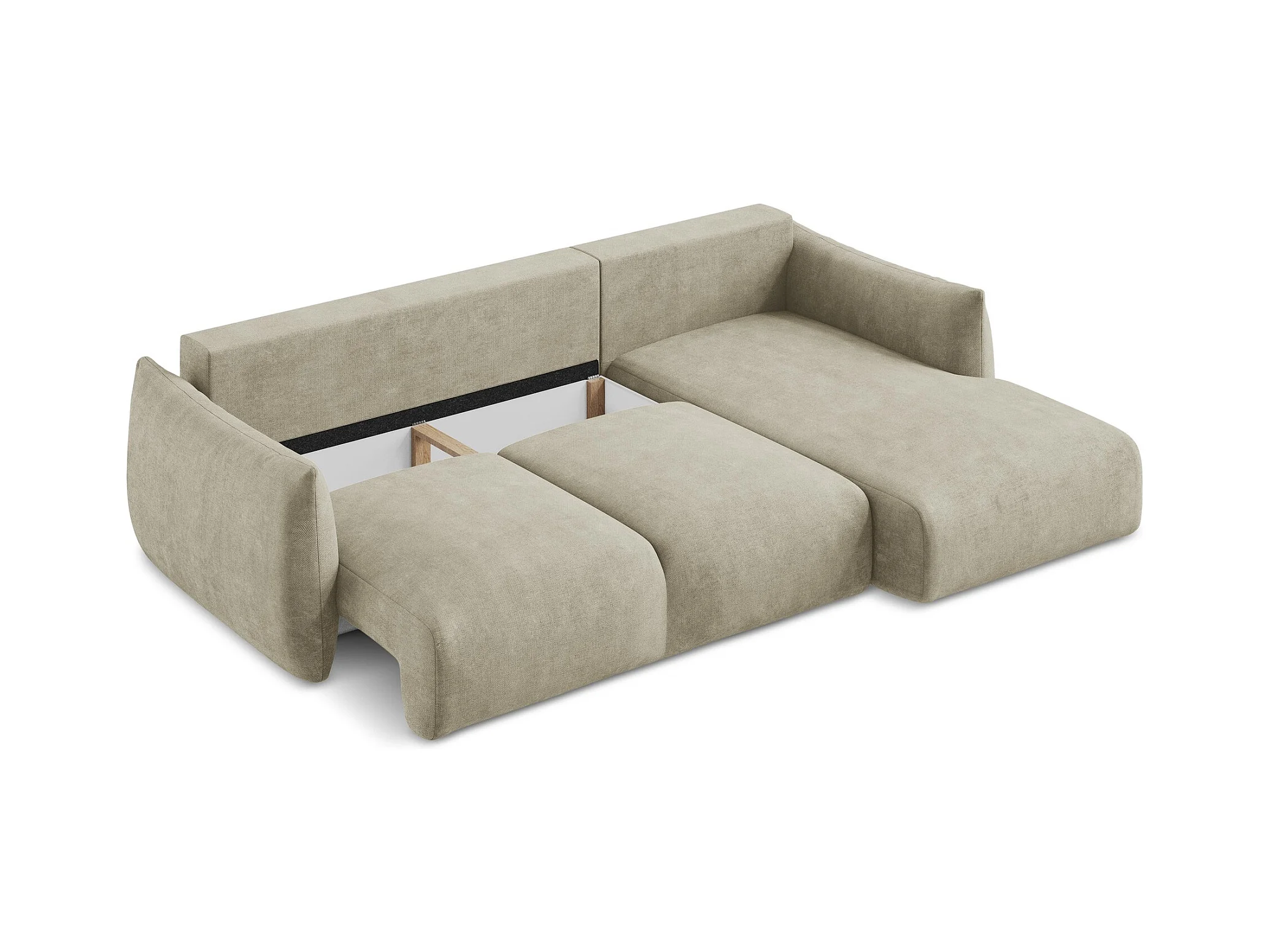 Canapé d'angle avec fonction couchage et coffre de lit Modena Rond tissu Salvador Beige clair Droite