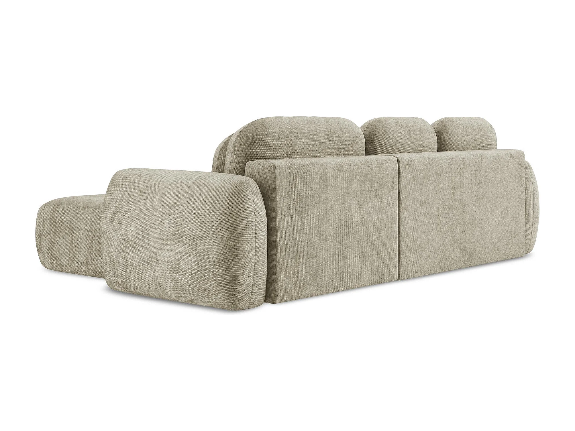 Canapé d'angle avec fonction couchage et coffre de lit Modena Rond tissu Salvador Beige clair Droite