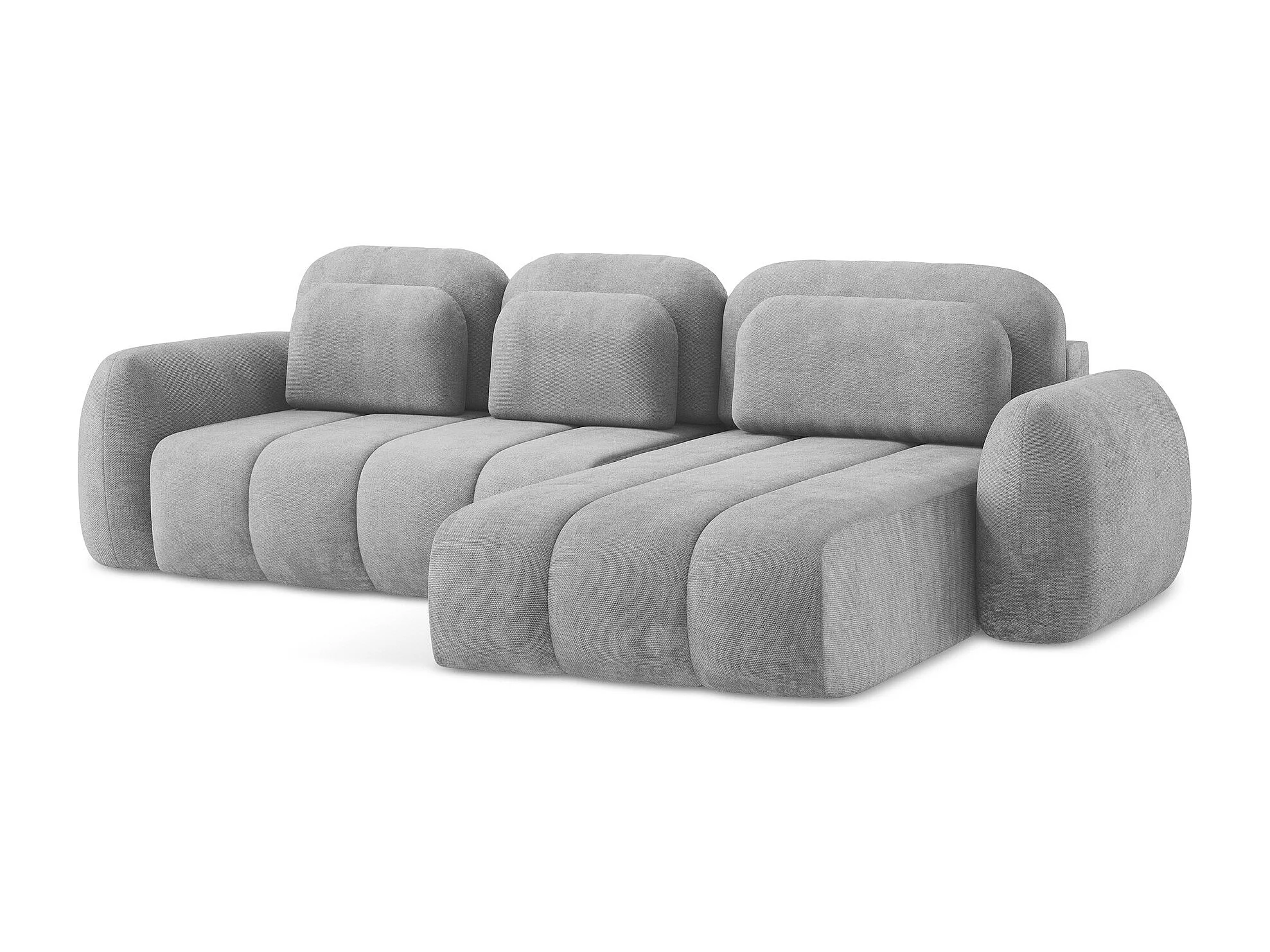 Canapé d'angle droit convertible en tissu chenille - gris clair - LOHI