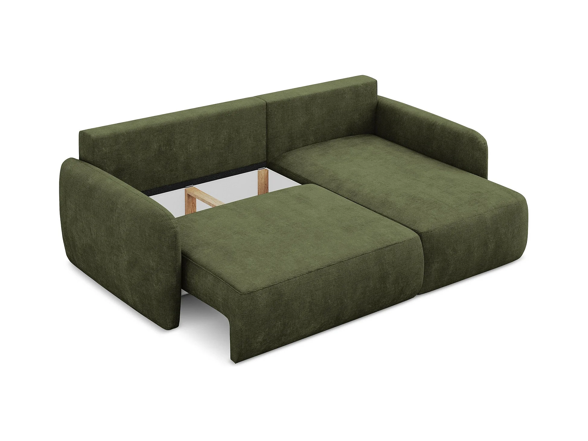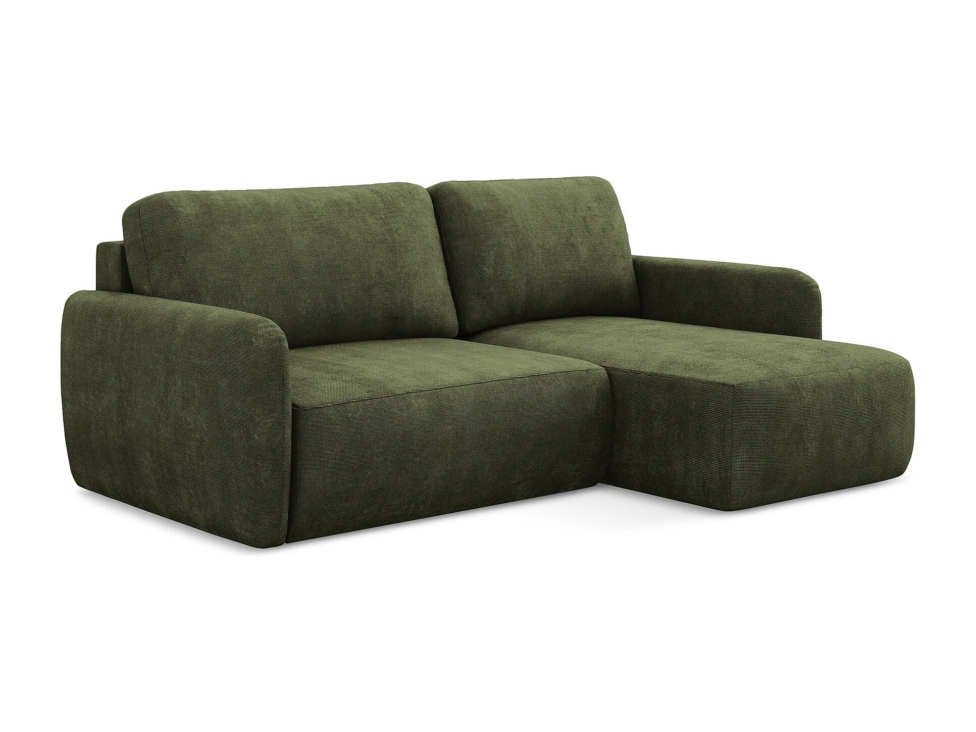 Canapé d'angle droit convertible en tissu chenille - olive - LILO