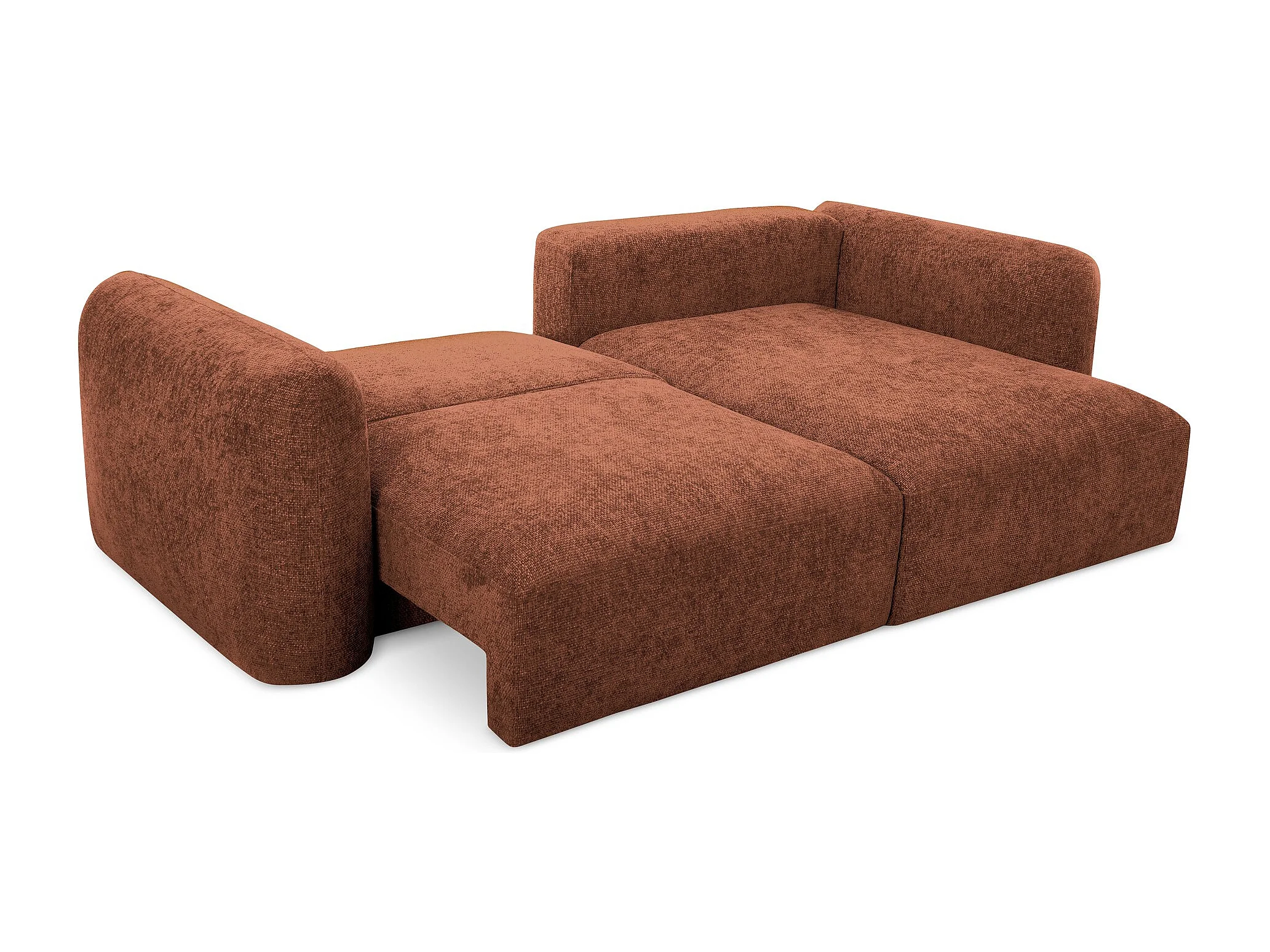 Canapé d'angle droit convertible en tissu chenille - terre cuite - MELE