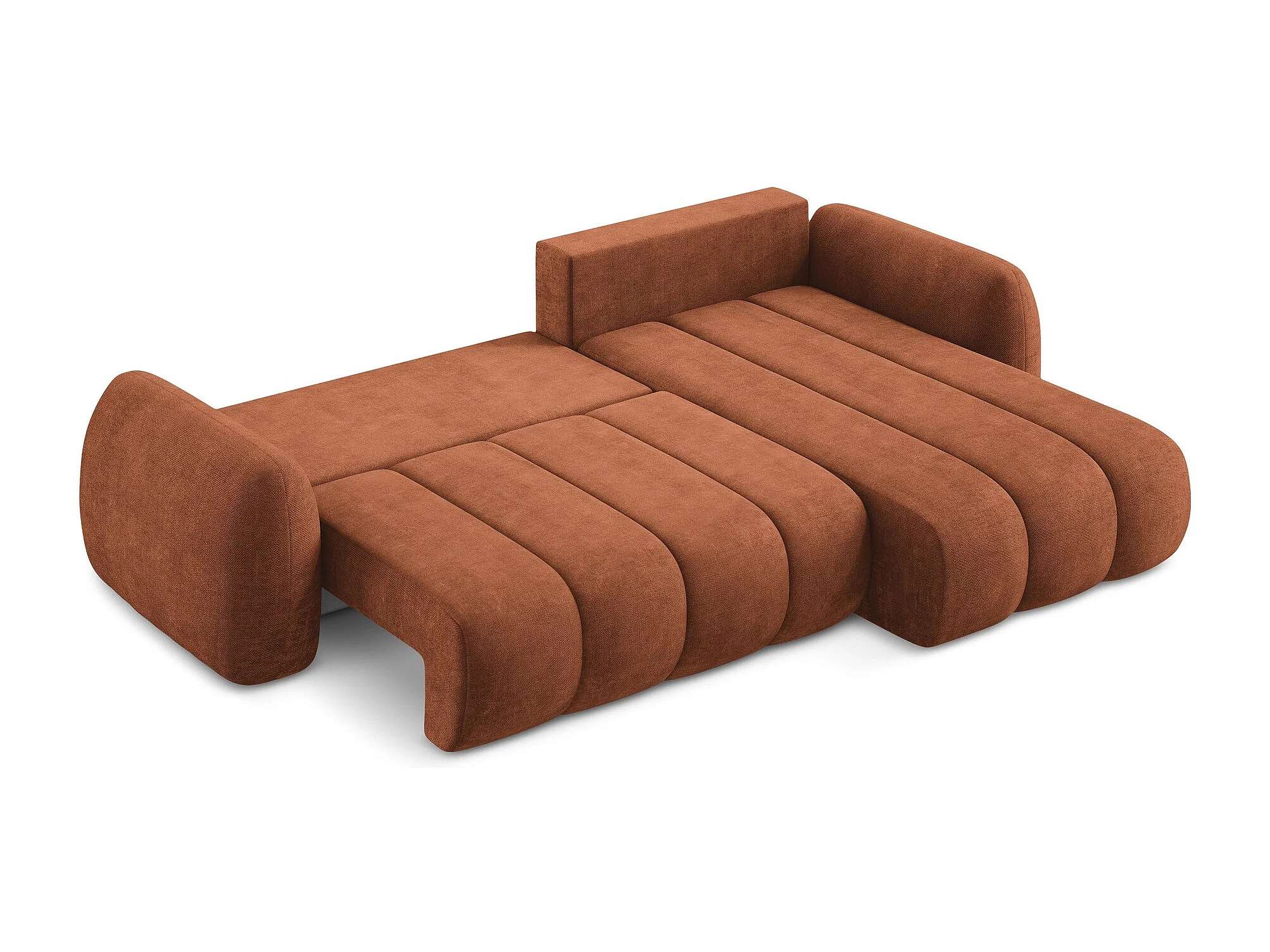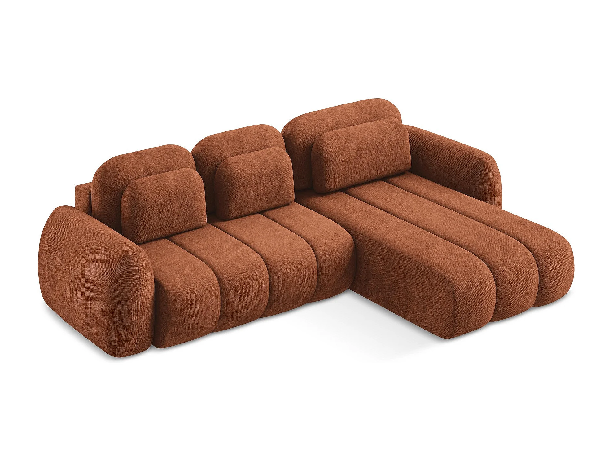Canapé d'angle droit convertible en tissu chenille - terre cuite - LOHI