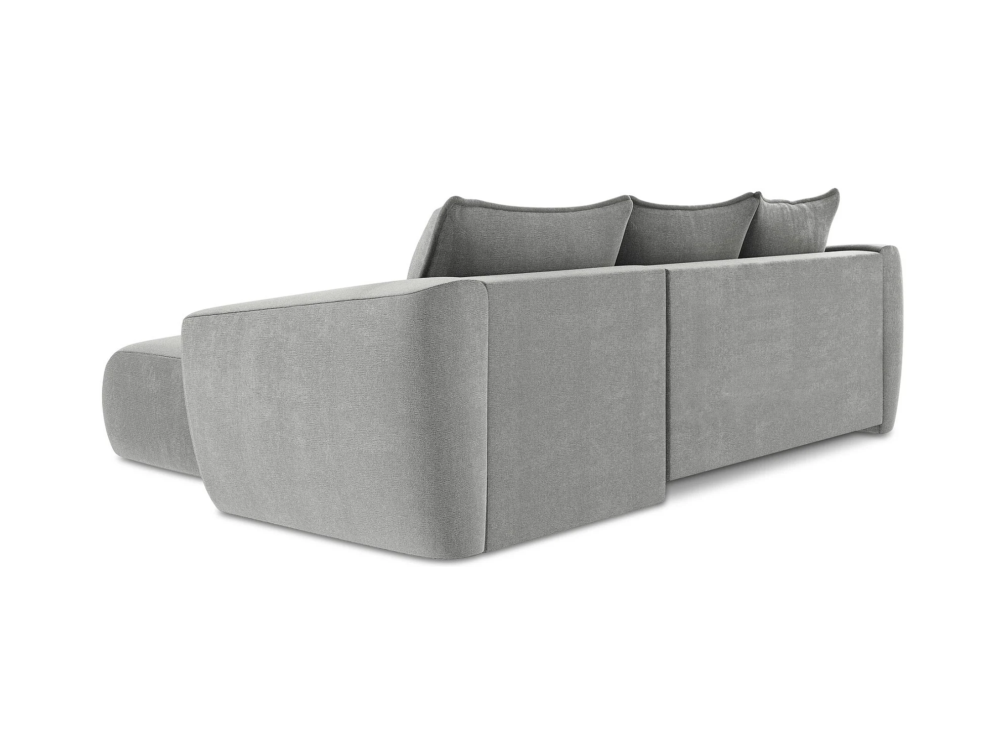Canapé d'angle avec fonction couchage et coffre de lit Modena Round tissu Poso Silver Left