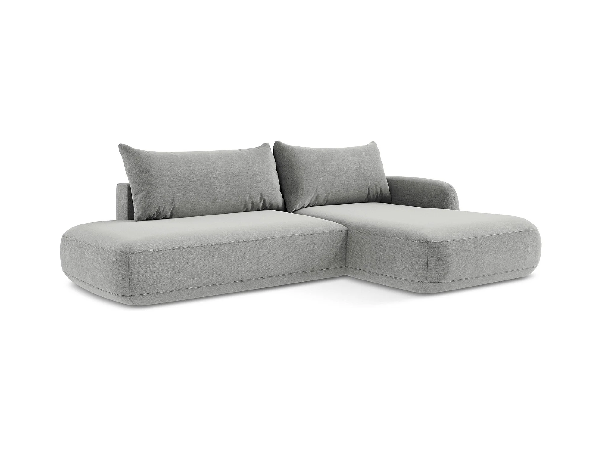 Canapé d'angle droit convertible en tissu chenille - gris clair - LOHI