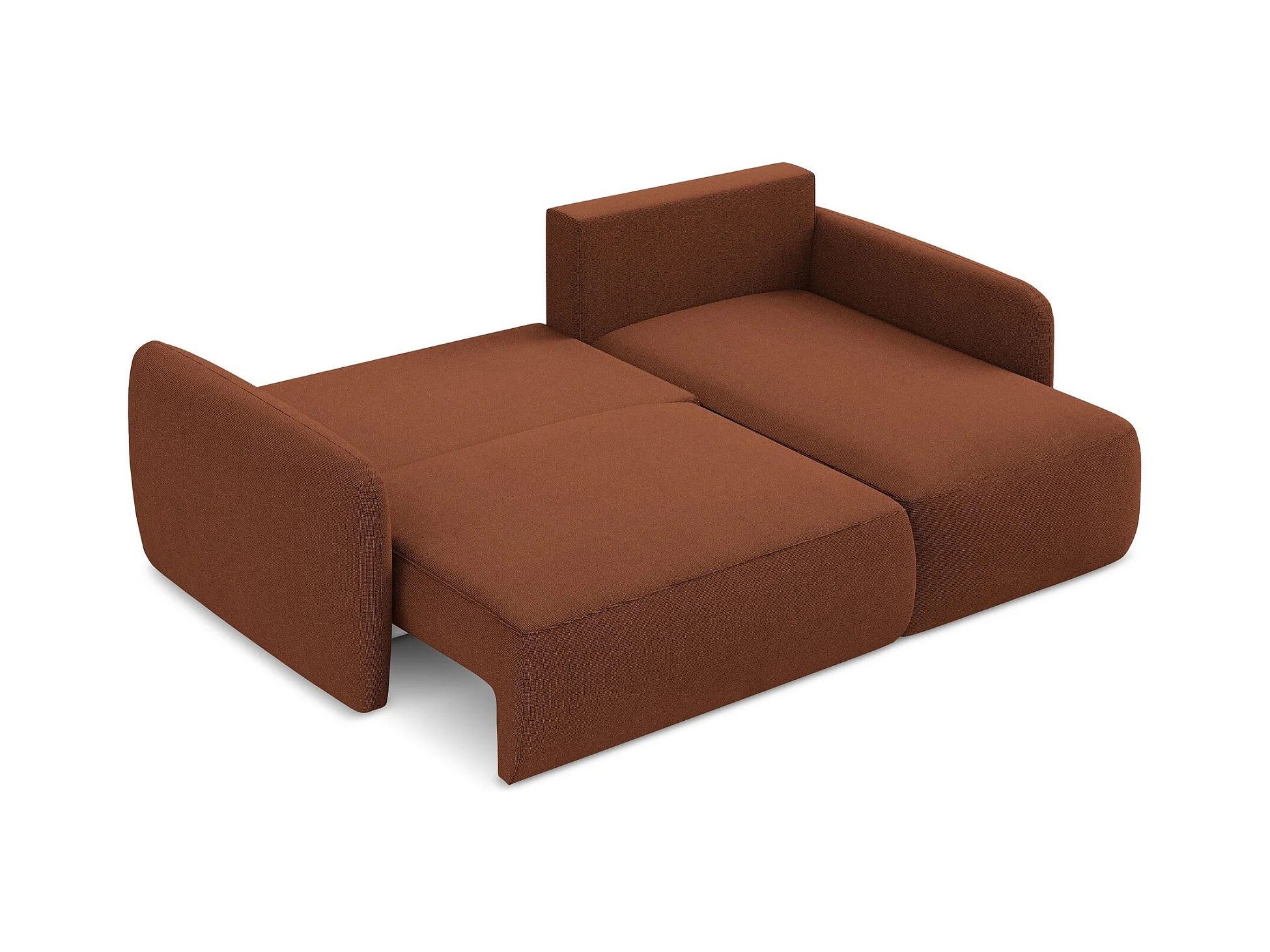 Canapé d'angle droit convertible en tissu texturé - terre cuite - LILO