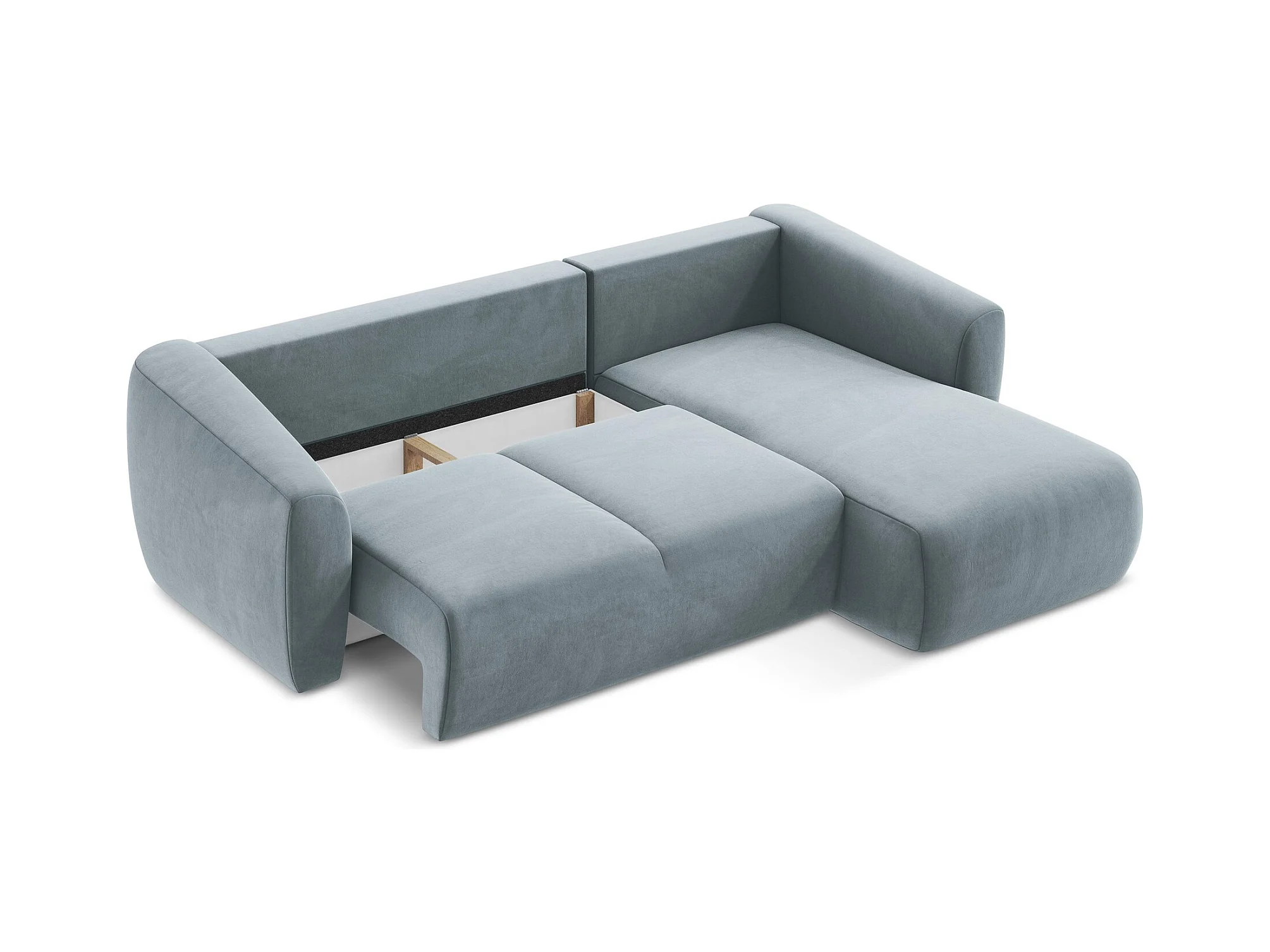 Canapé d'angle droit convertible en velours - bleu clair - GUAVA