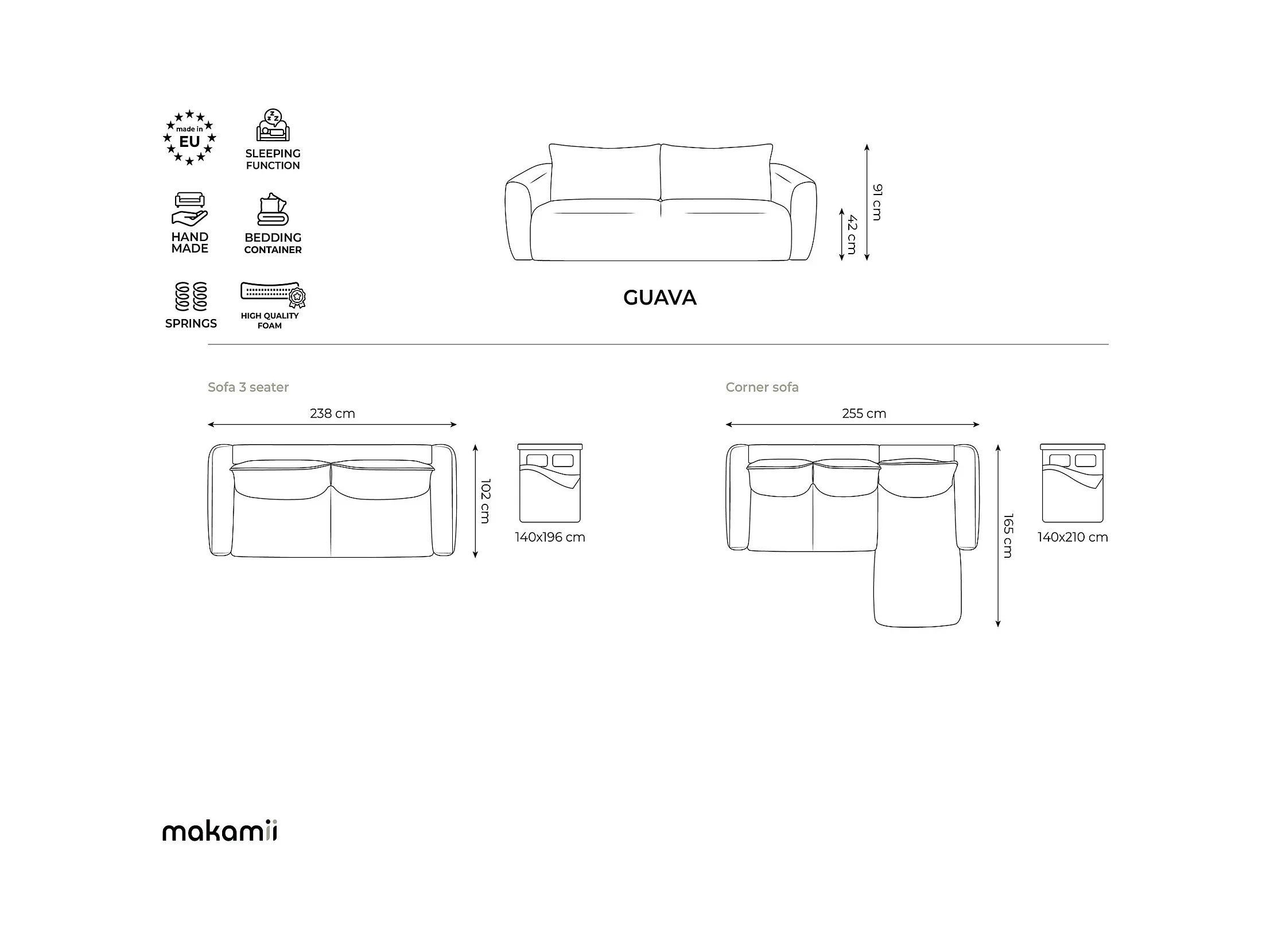 Canapé d'angle droit convertible en tissu texturé - jeans - GUAVA