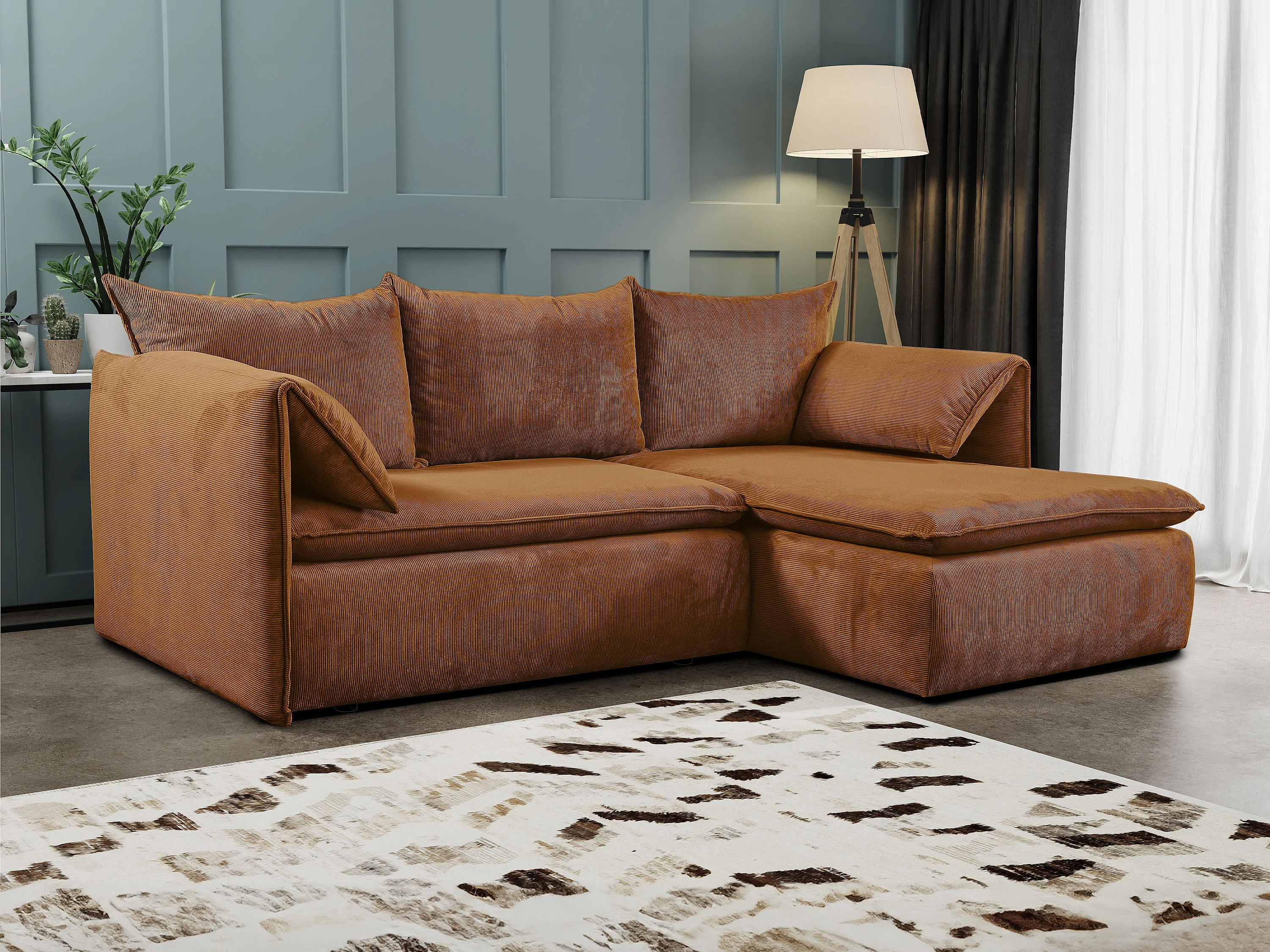 Canapé d'angle droit convertible en velours côtelé fines côtes terracotta TEODORA