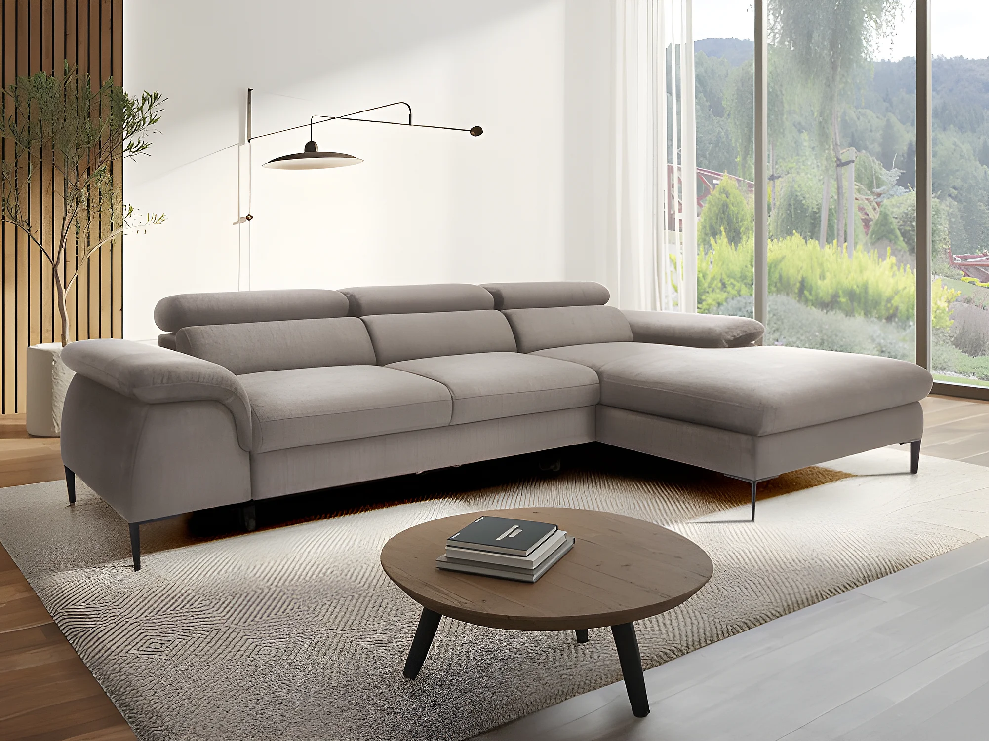 Canapé d'angle droit convertible en velours taupe SEPINA de Pascal Morabito