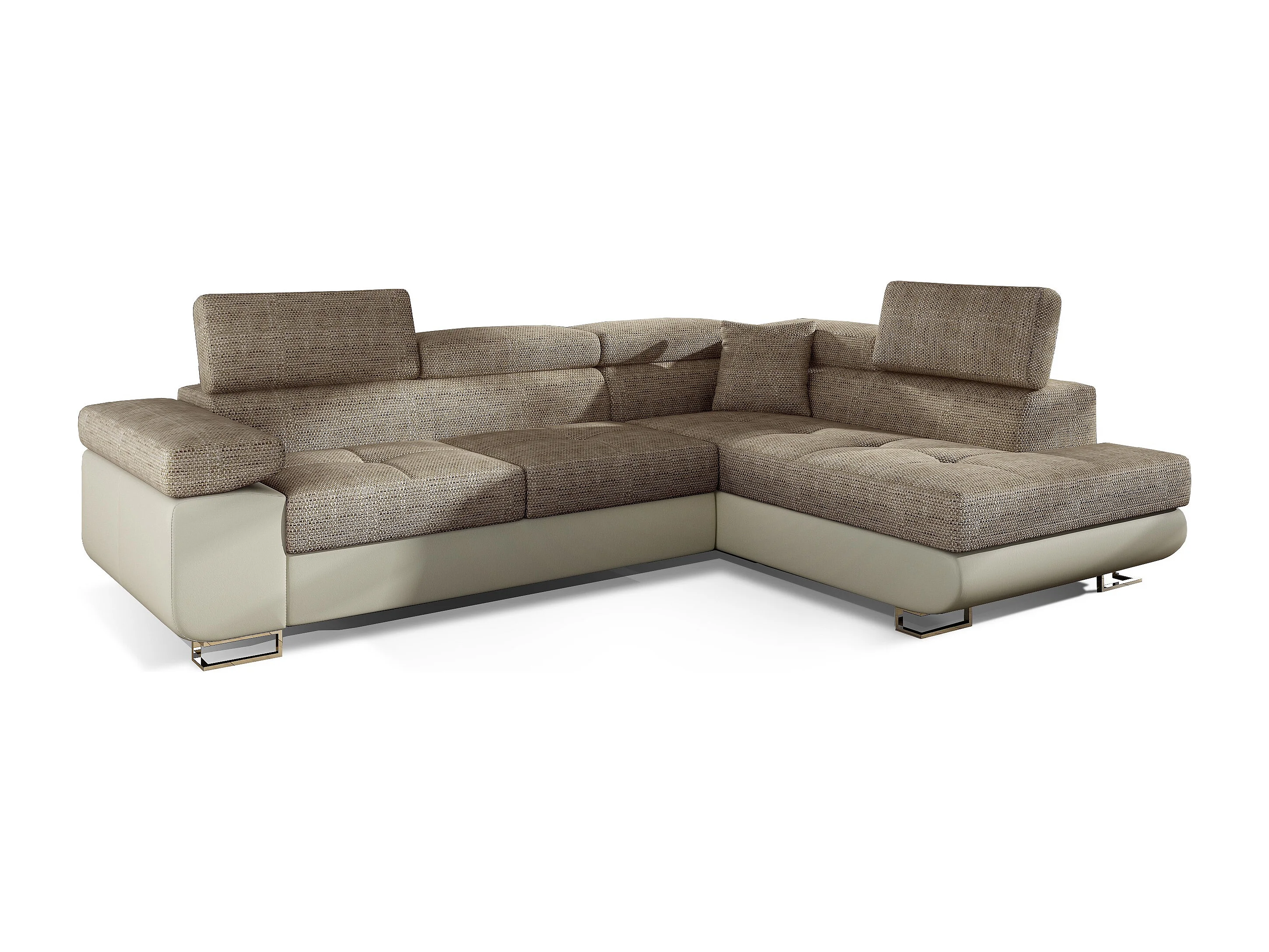Canapé d'angle droit convertible tissu beige clair chiné et simili cuir beige Marka 275cm