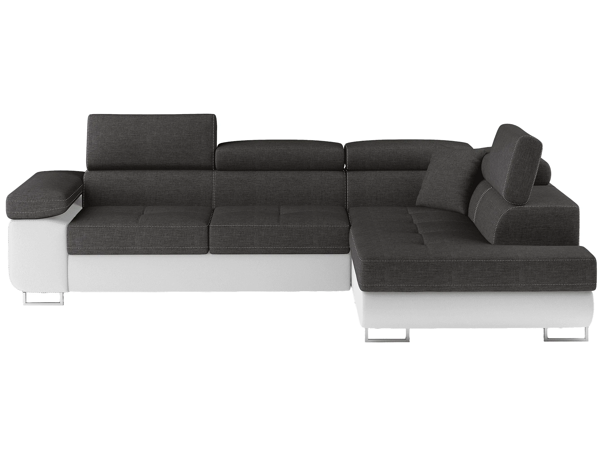 Canapé d'angle convertible simili cuir et tissu MARKA - Coffre et appuis-tête réglables-Blanc/Gris foncé-angle droit