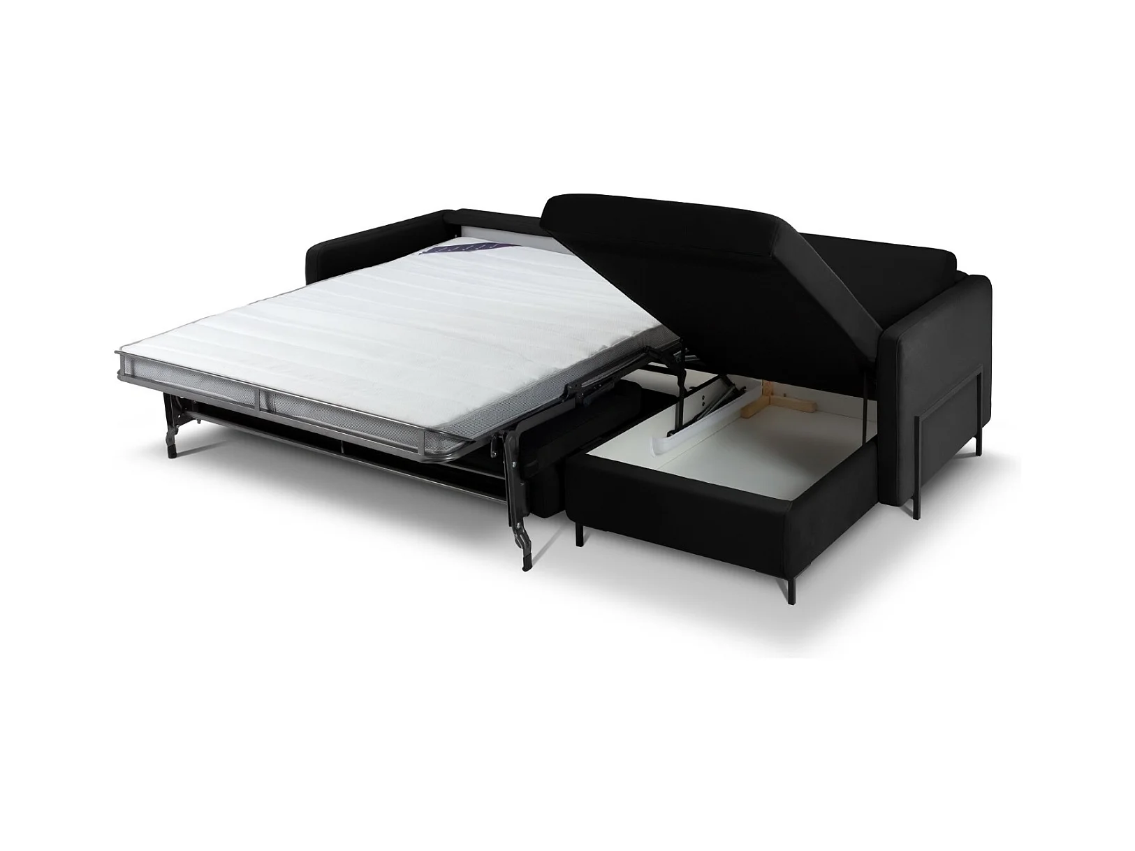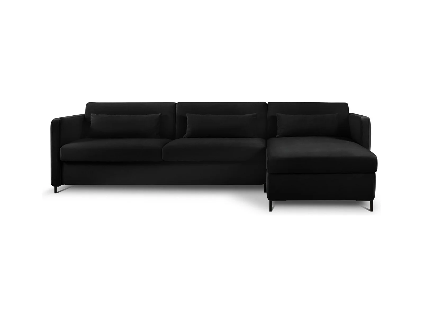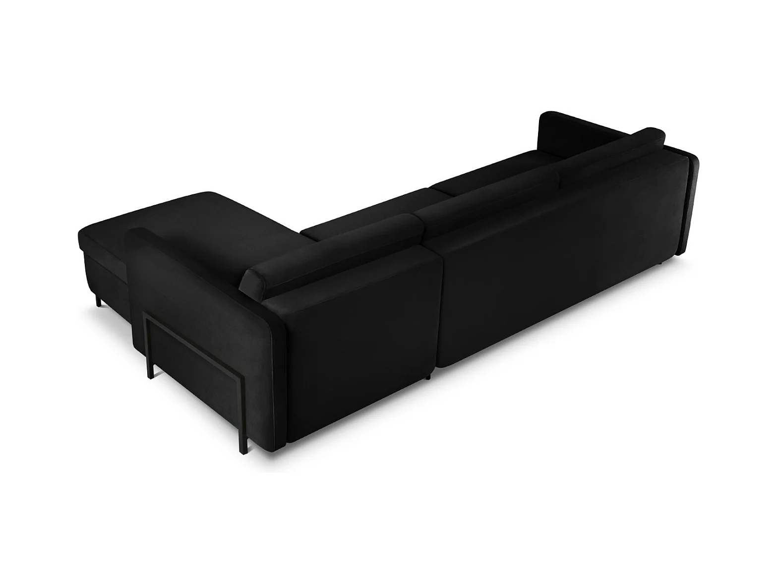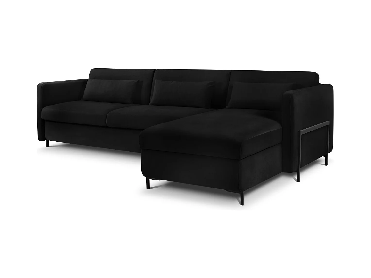 Canapé convertible angle droit velours noir et chromé Pika 260cm