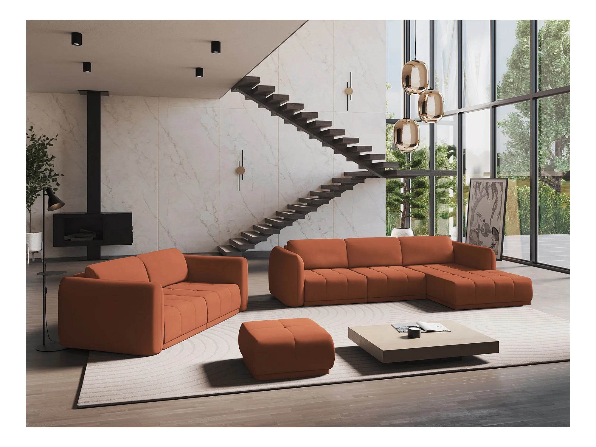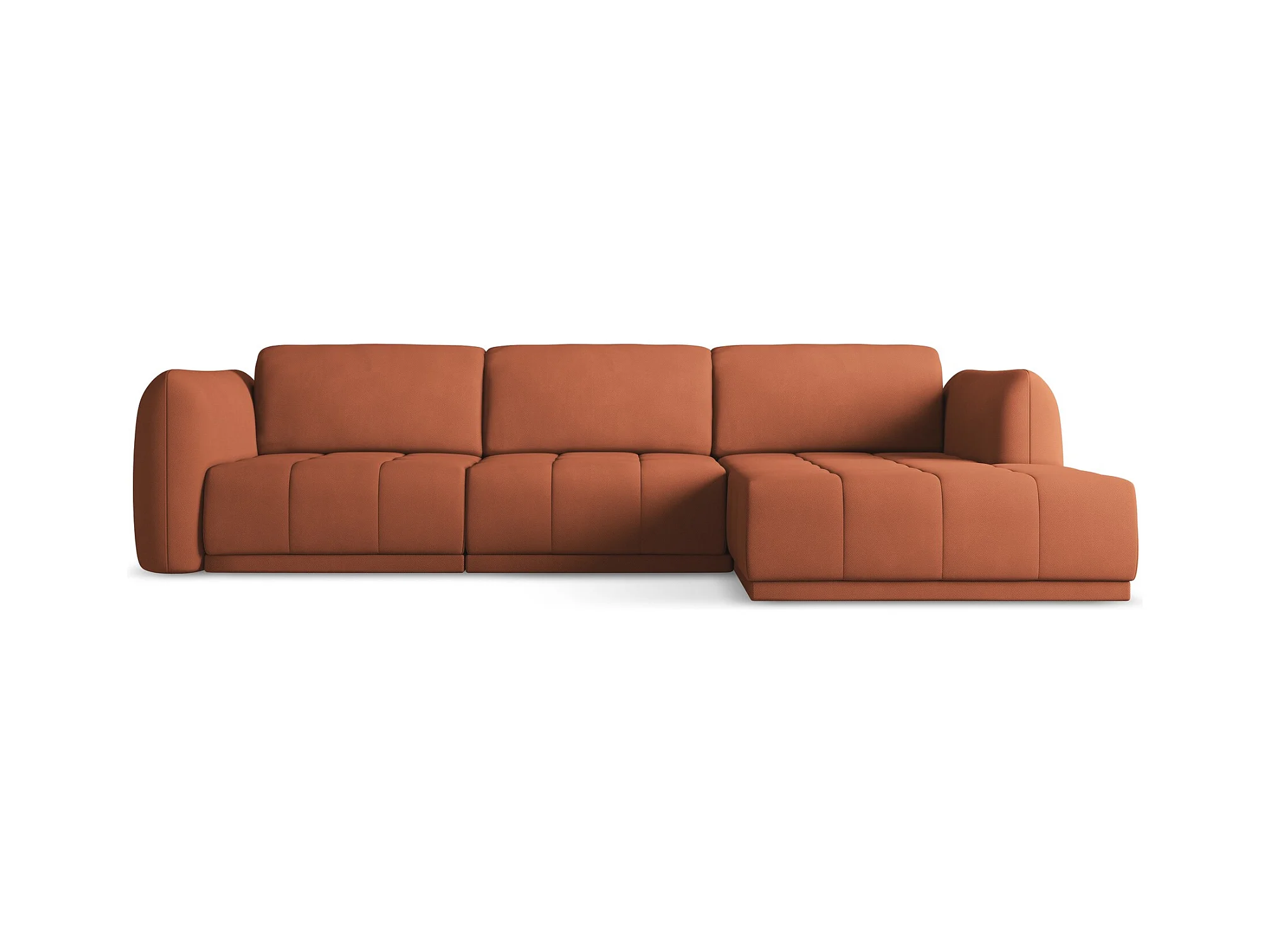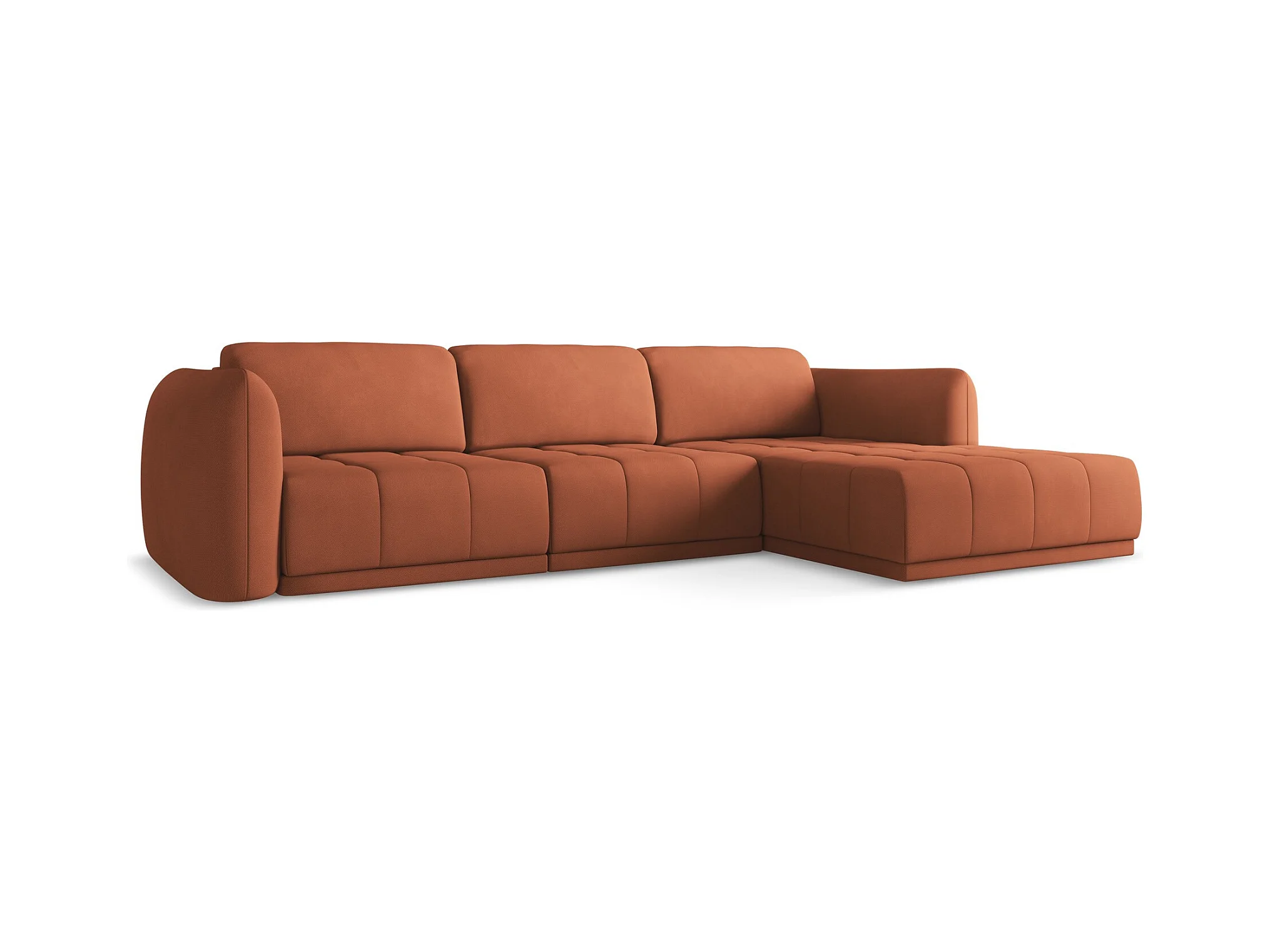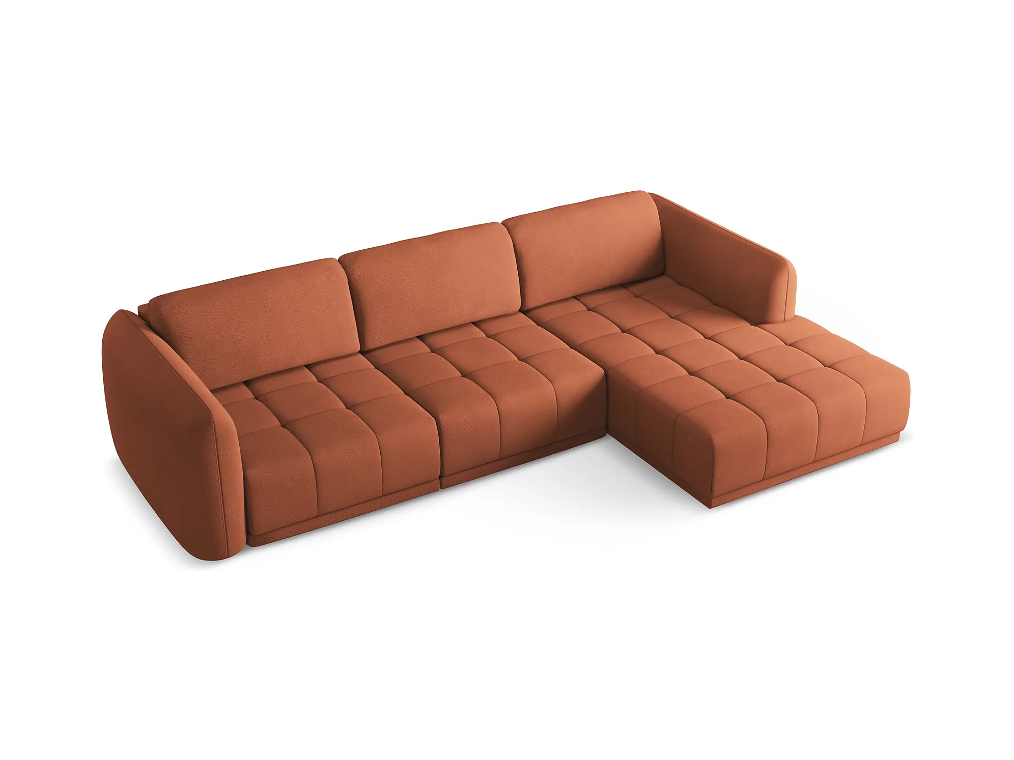 Canapé d'angle 3 places modulaire droit en velours - terre cuite - KELI