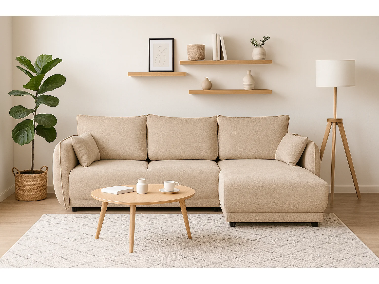 Canapé d'angle convertible avec rangement TOKYO, tissu WIND, beige, gauche
