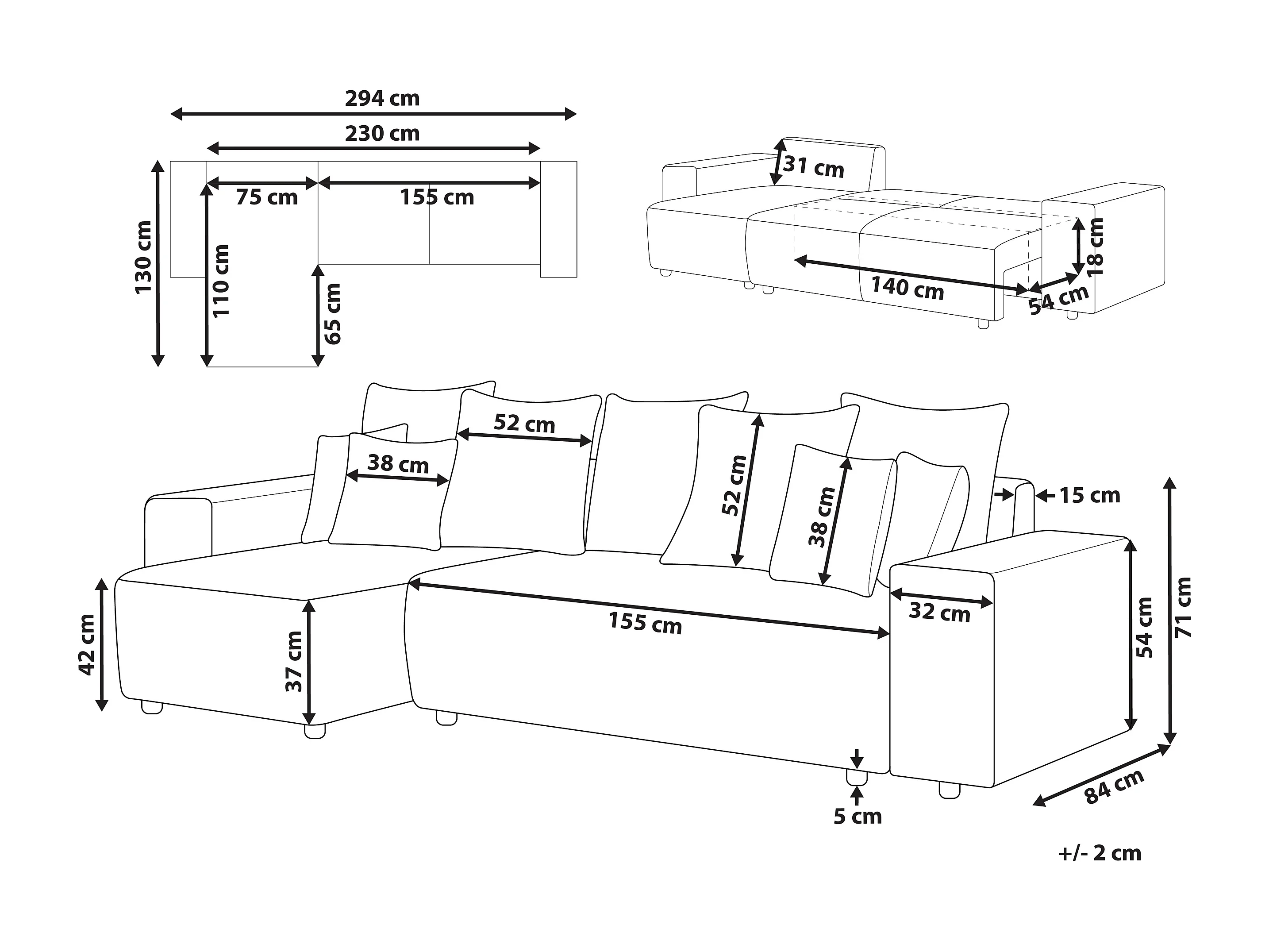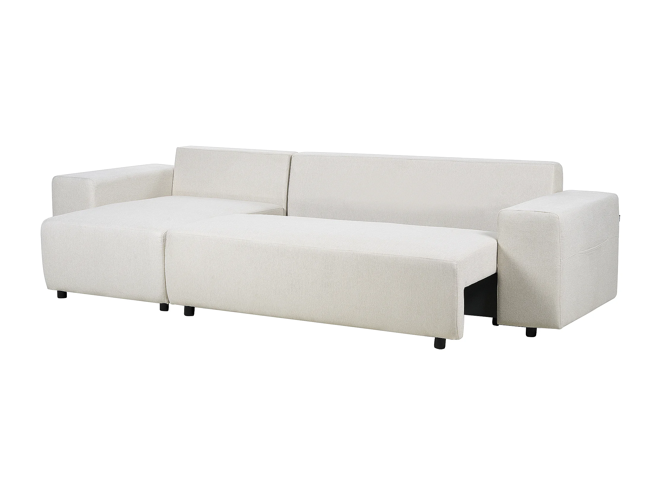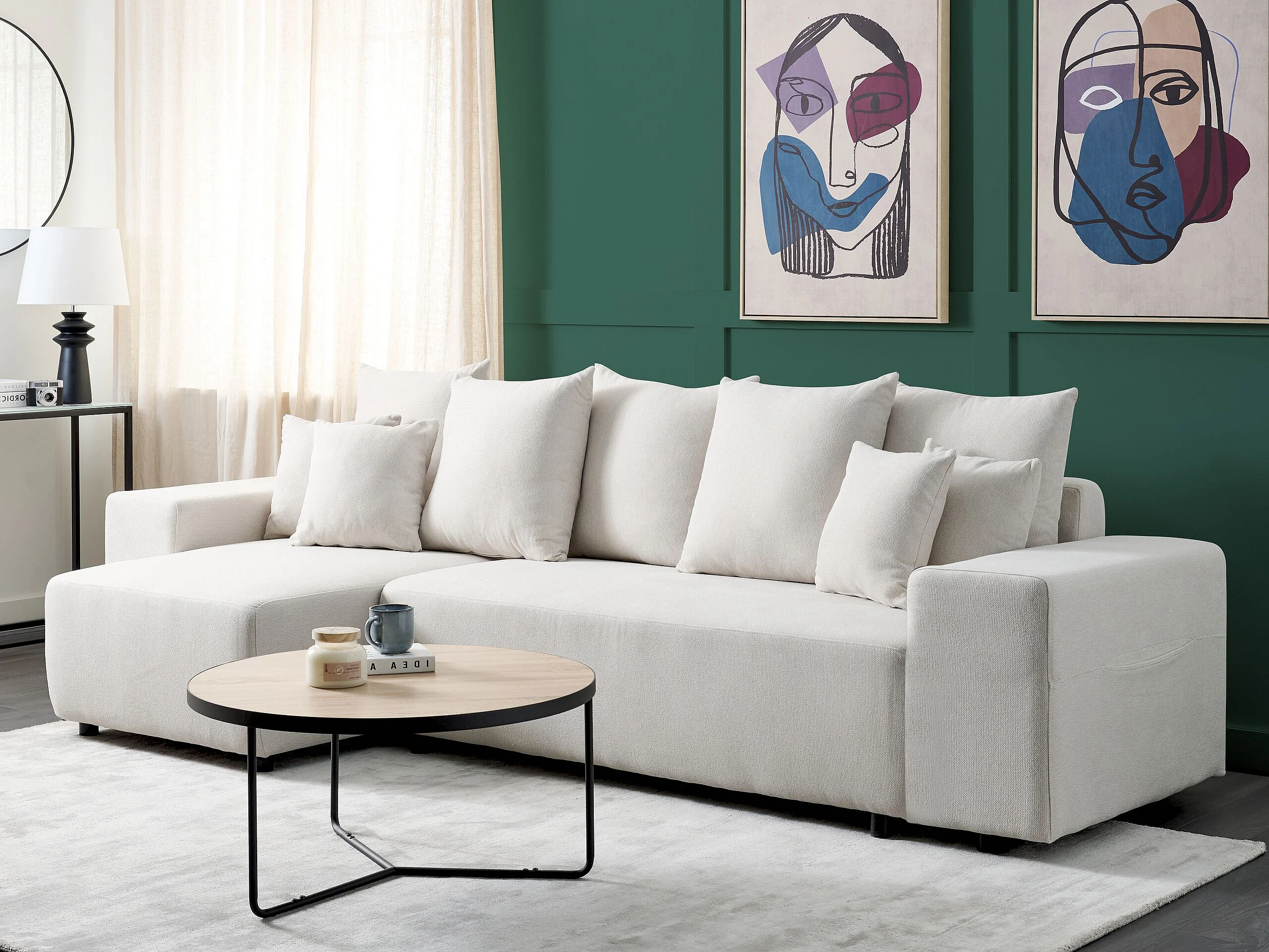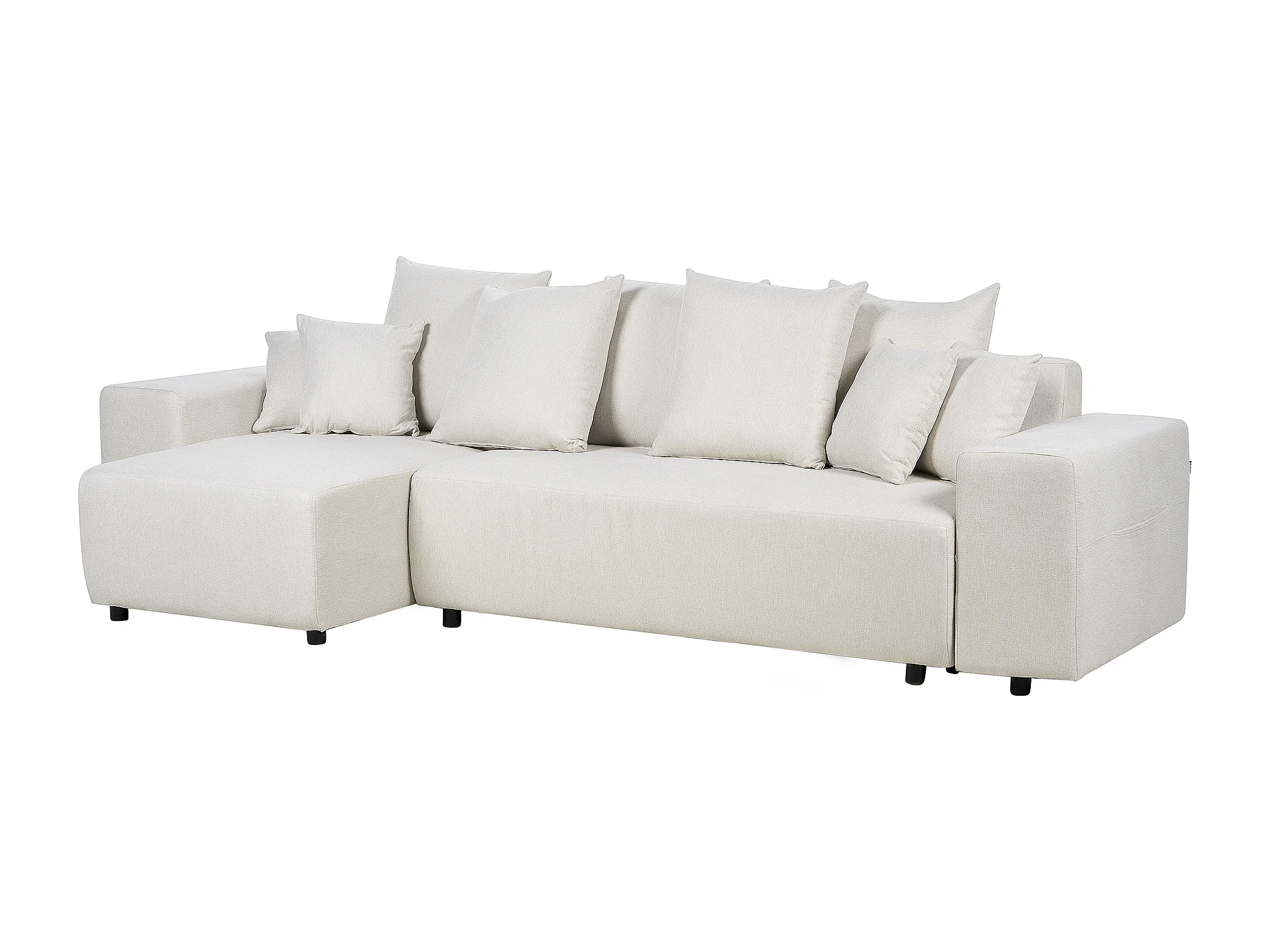 Canapé d'Angle Droit Moderne avec Coussins et Rangement en Tissu Beige Clair Luspa