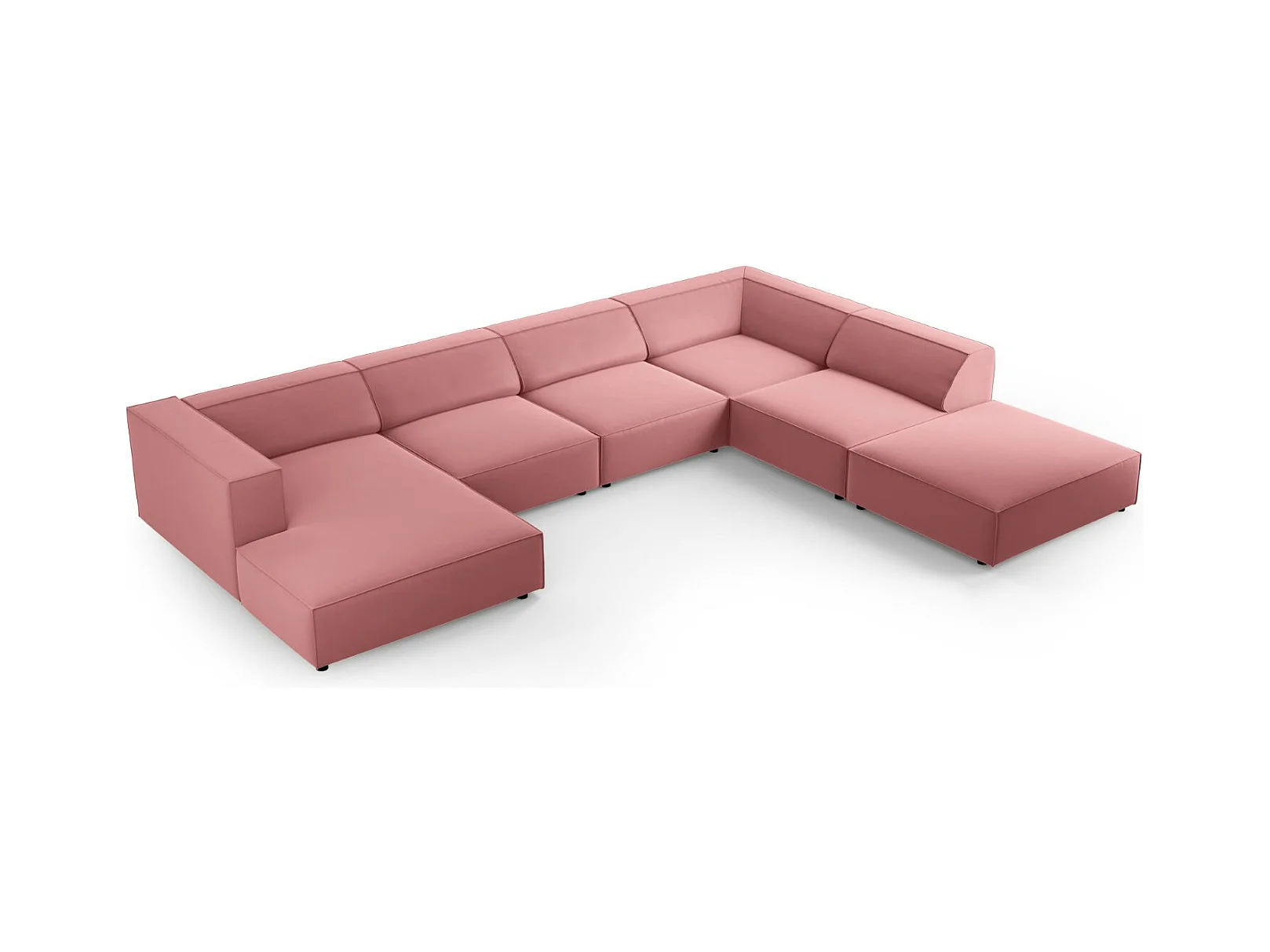 Cosmopolitan Design - Canapé d'angle symétrique modulable "Rome" 7 places en velours rose - 320x320x75cm