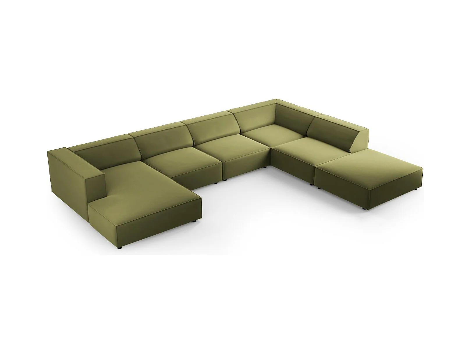 Cosmopolitan Design - Canapé d'angle gauche panoramique "Arendal" 7 places en velours vert clair - 364x262x70cm