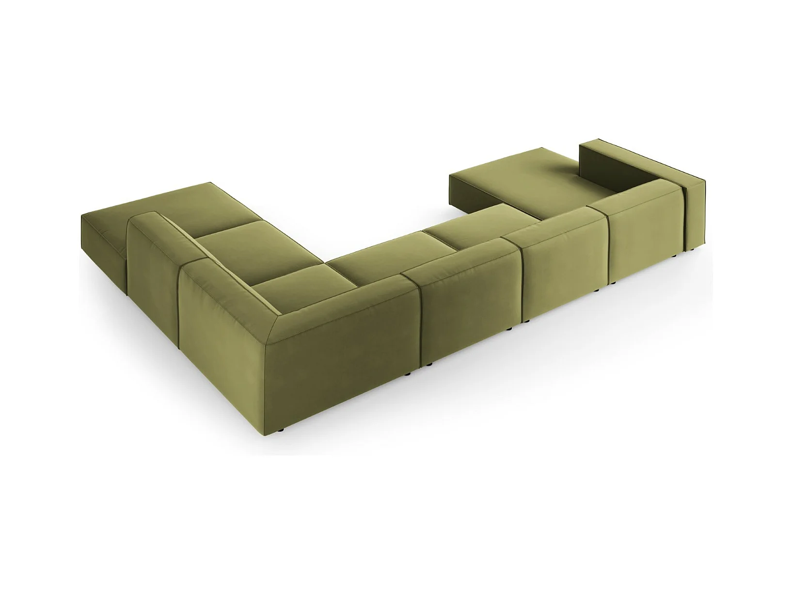 Cosmopolitan Design - Canapé d'angle droit panoramique "Arendal" 7 places en velours vert clair - 364x262x70cm